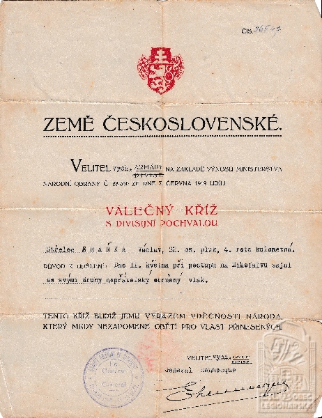 dokumenty spojené s osobou legionáře