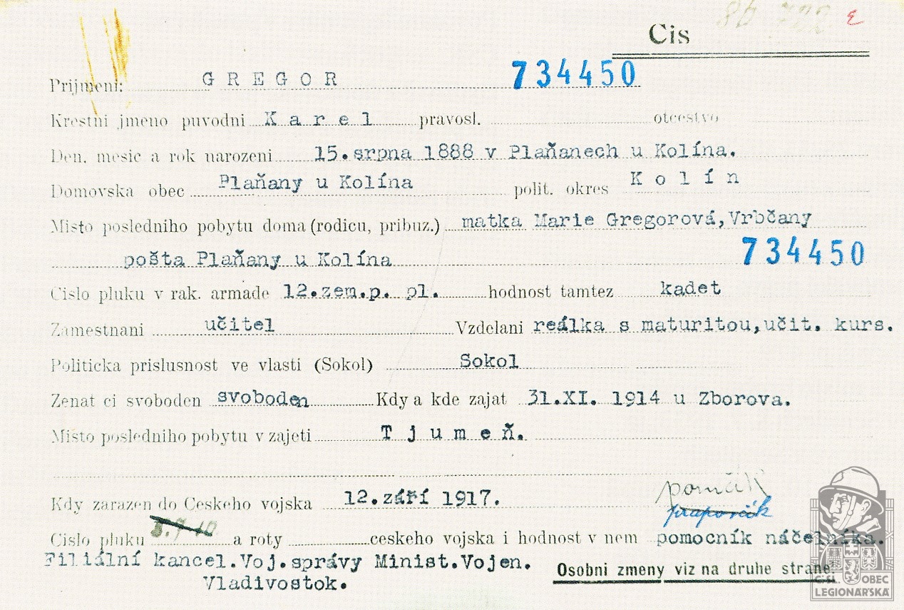 Datum podání přihlášky do legií:5.7.1917