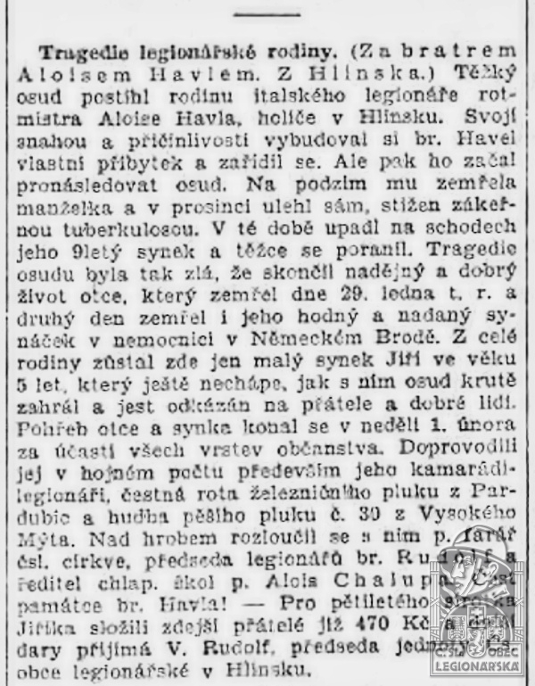 Jednotka v době zařazení:35.p.pl. ( Čs. legie v Itálii )