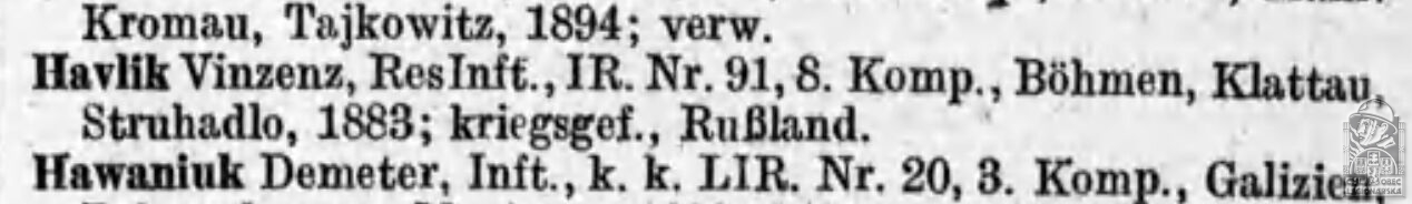 Rakousko-uherský útvar v době zajetí:91.p.pl.