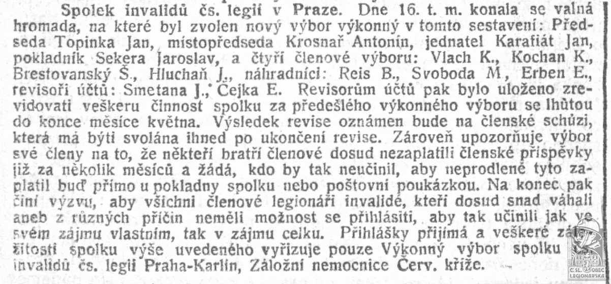 Legionářska organizace:Družina československých legionářů, Spolek invalidů čs. legií v Praze, ČsOL - Krč, Kruh francouzských legionářů - Velká Praha