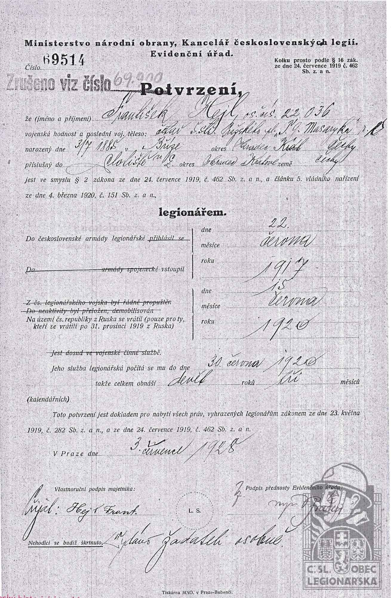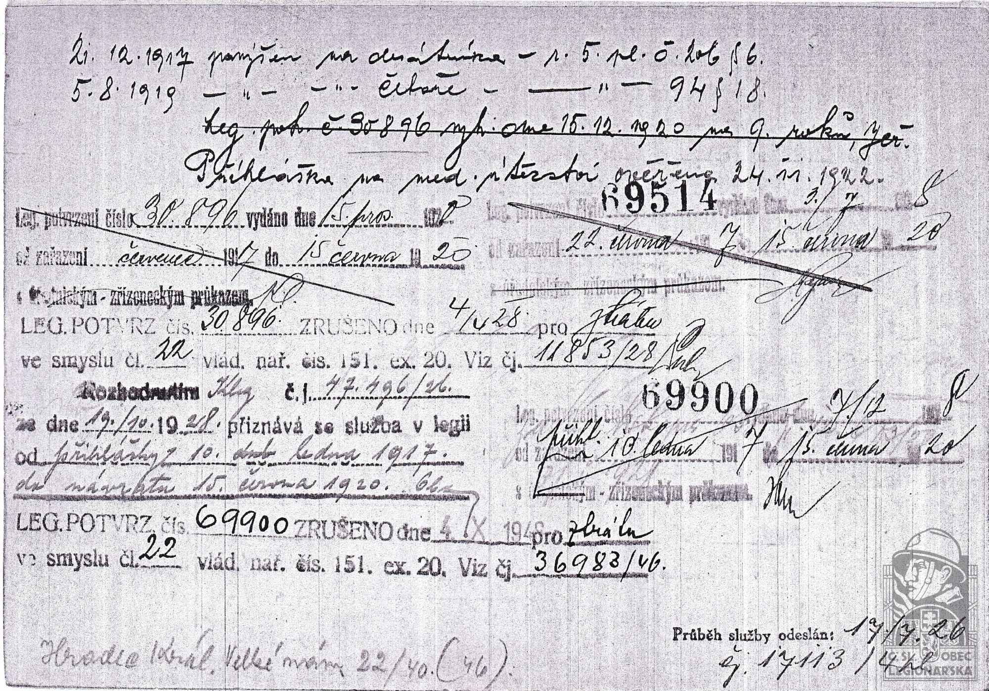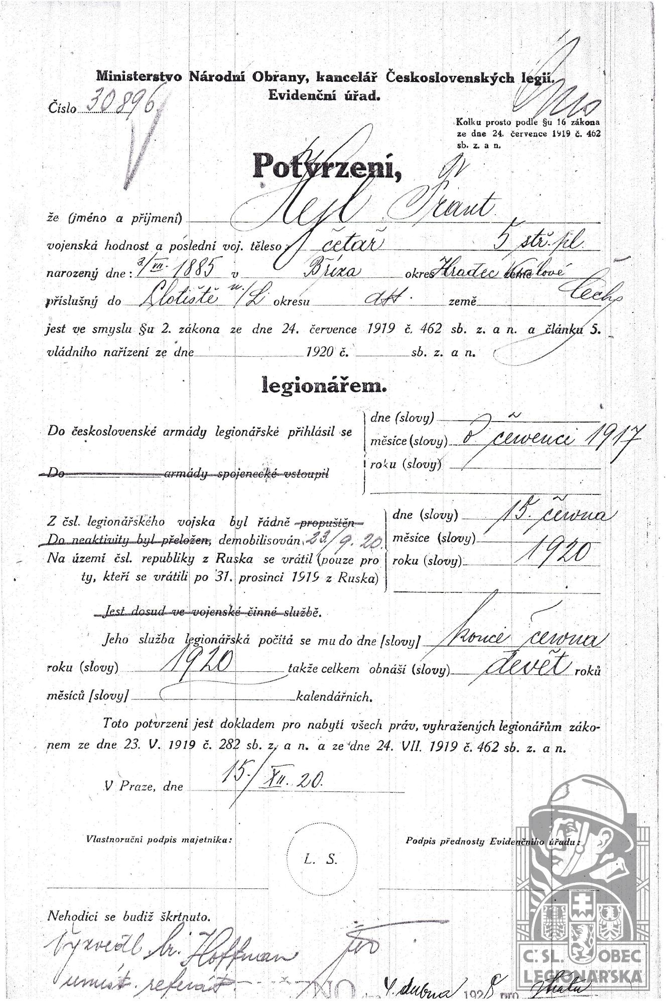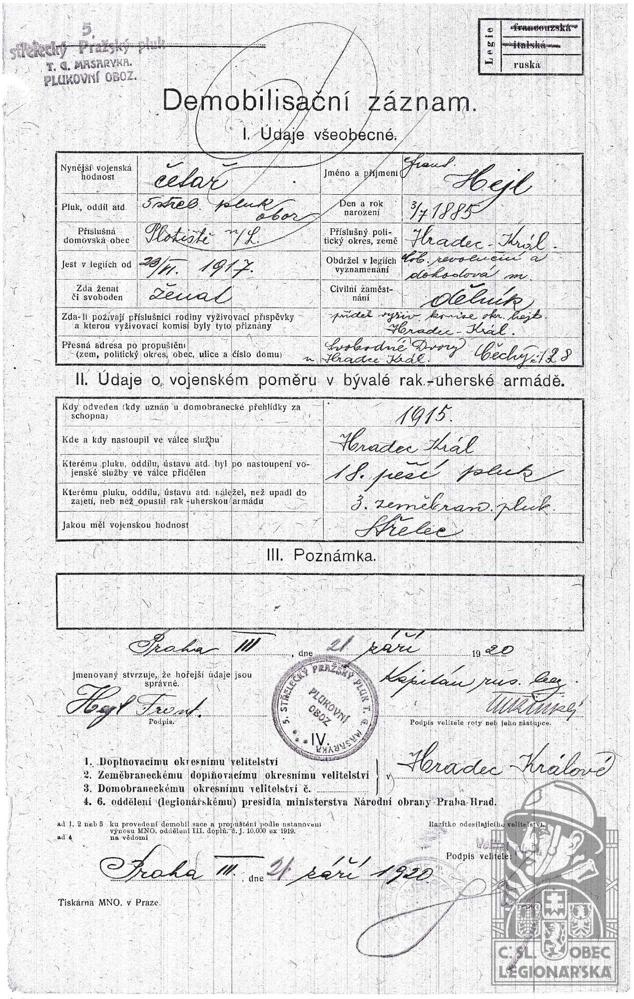 Konec v legiích:23.9.1920 ( Demobilizován )