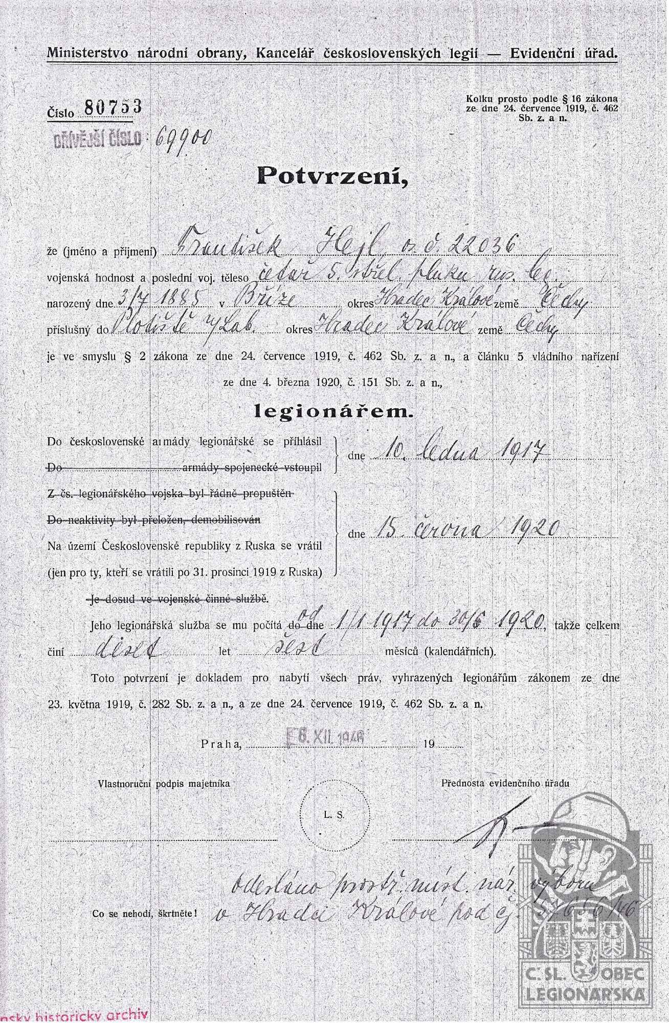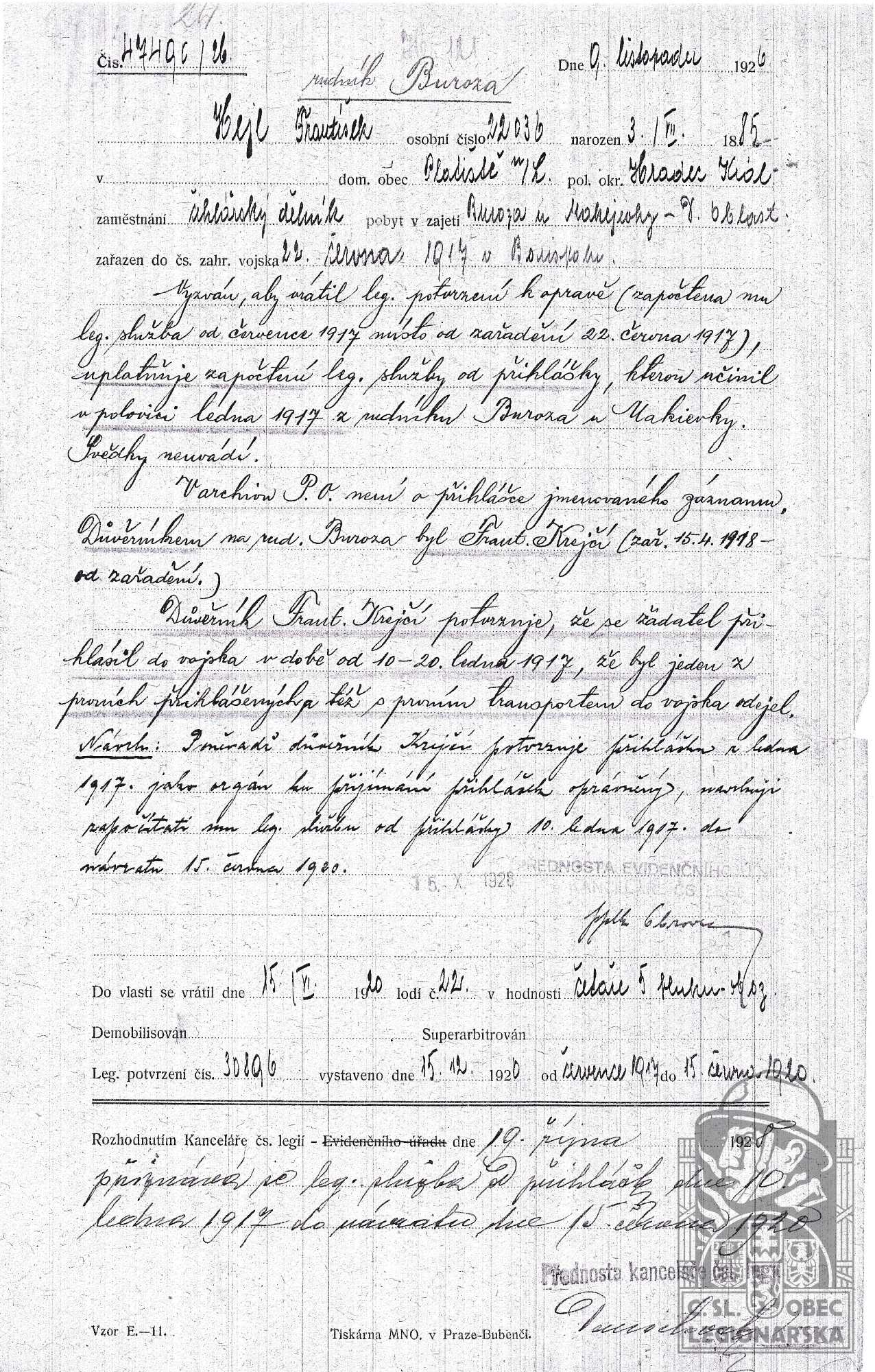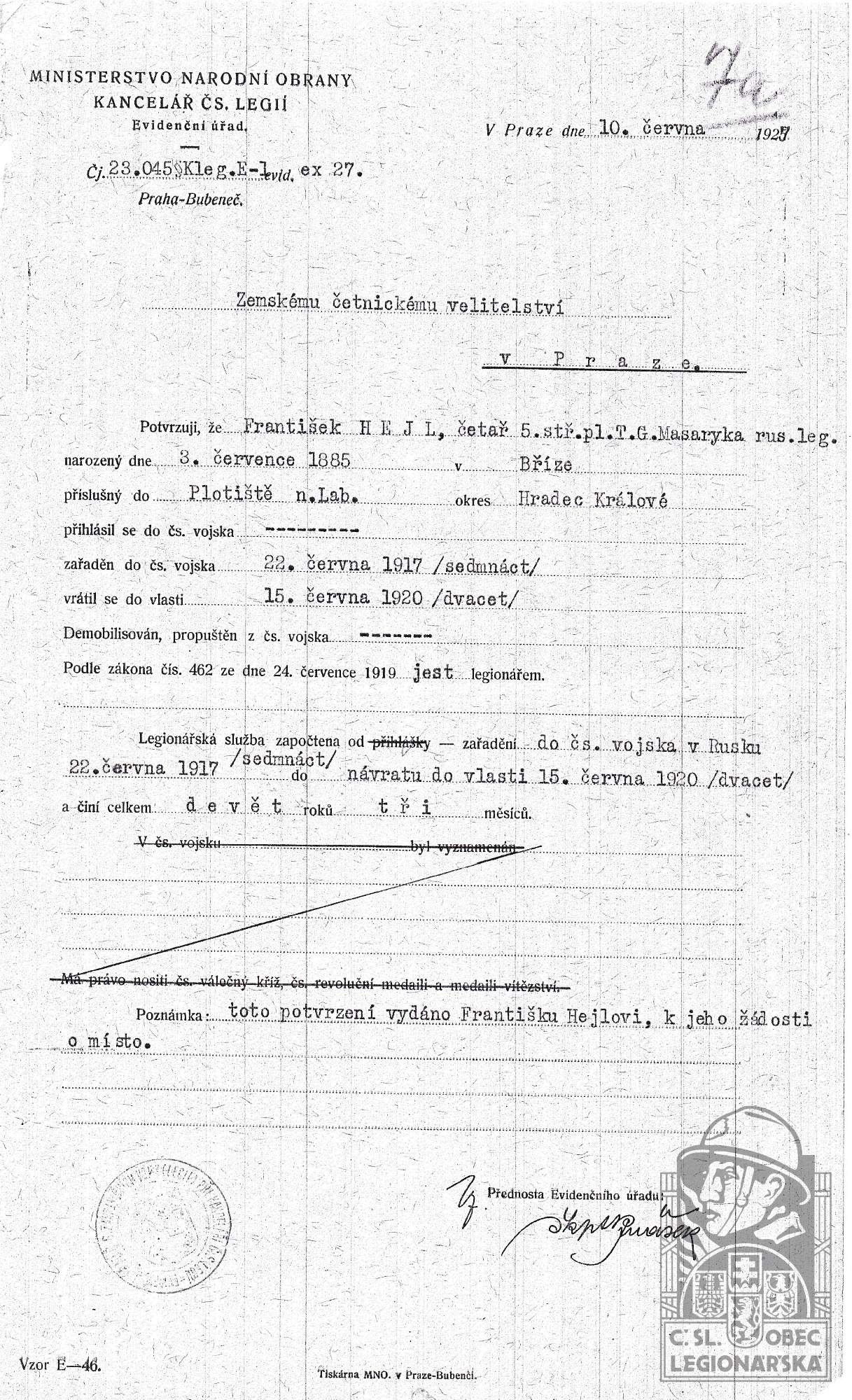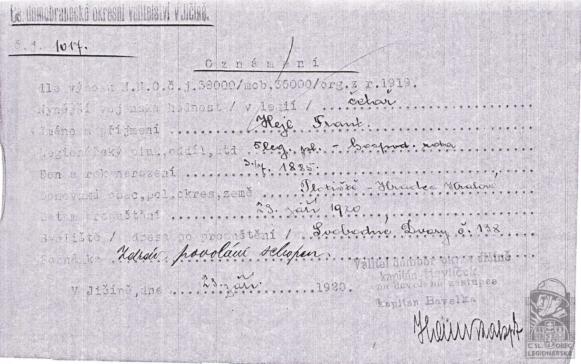Konec v legiích:23.9.1920 ( Demobilizován )