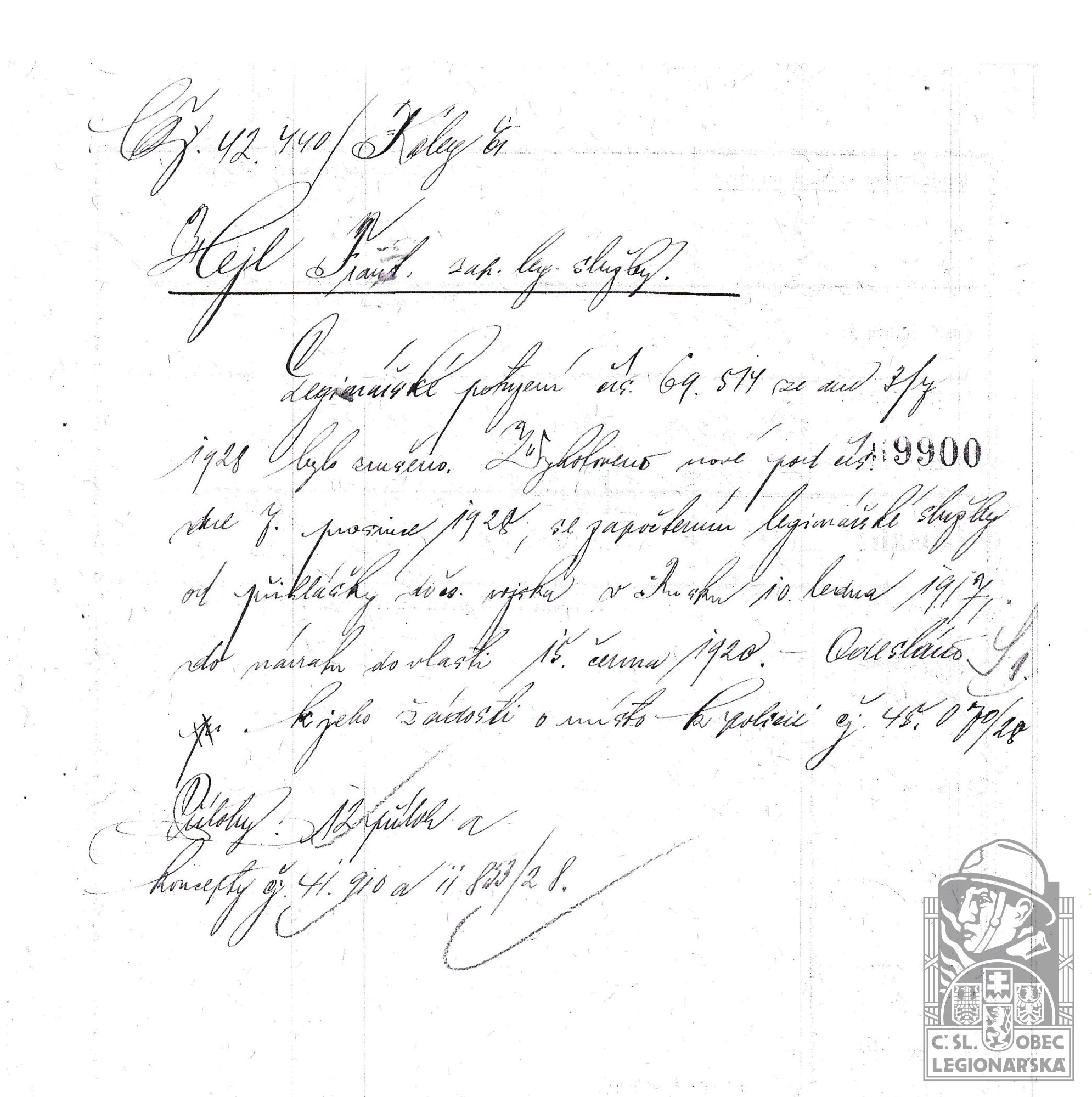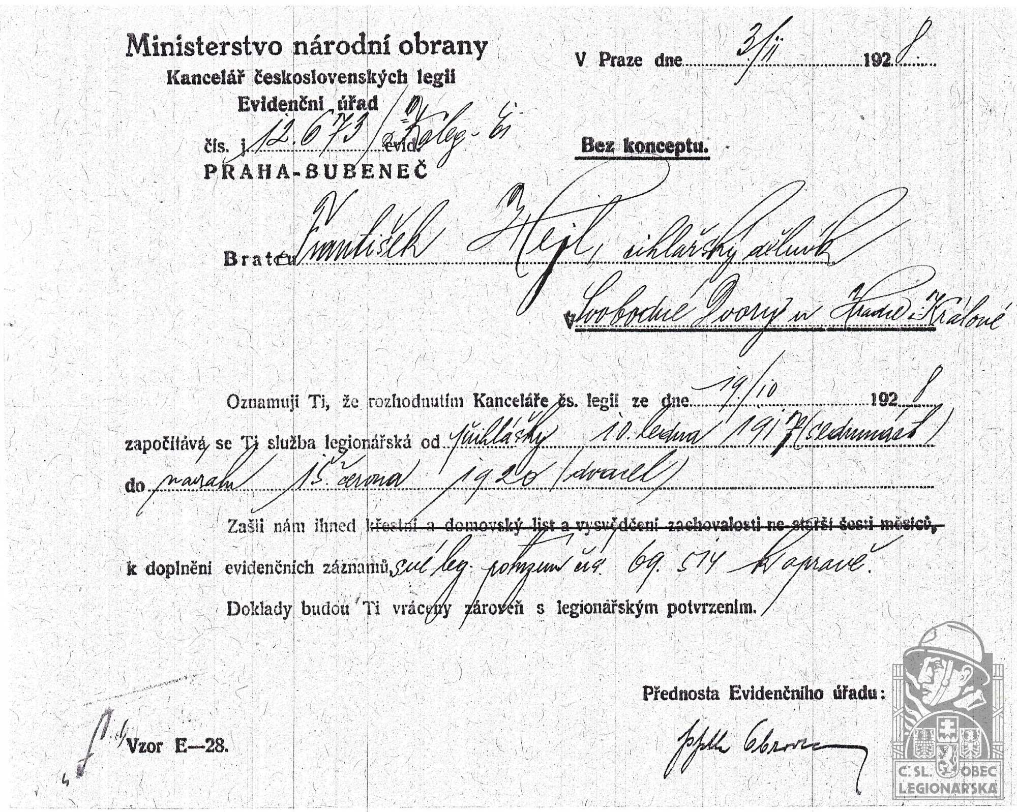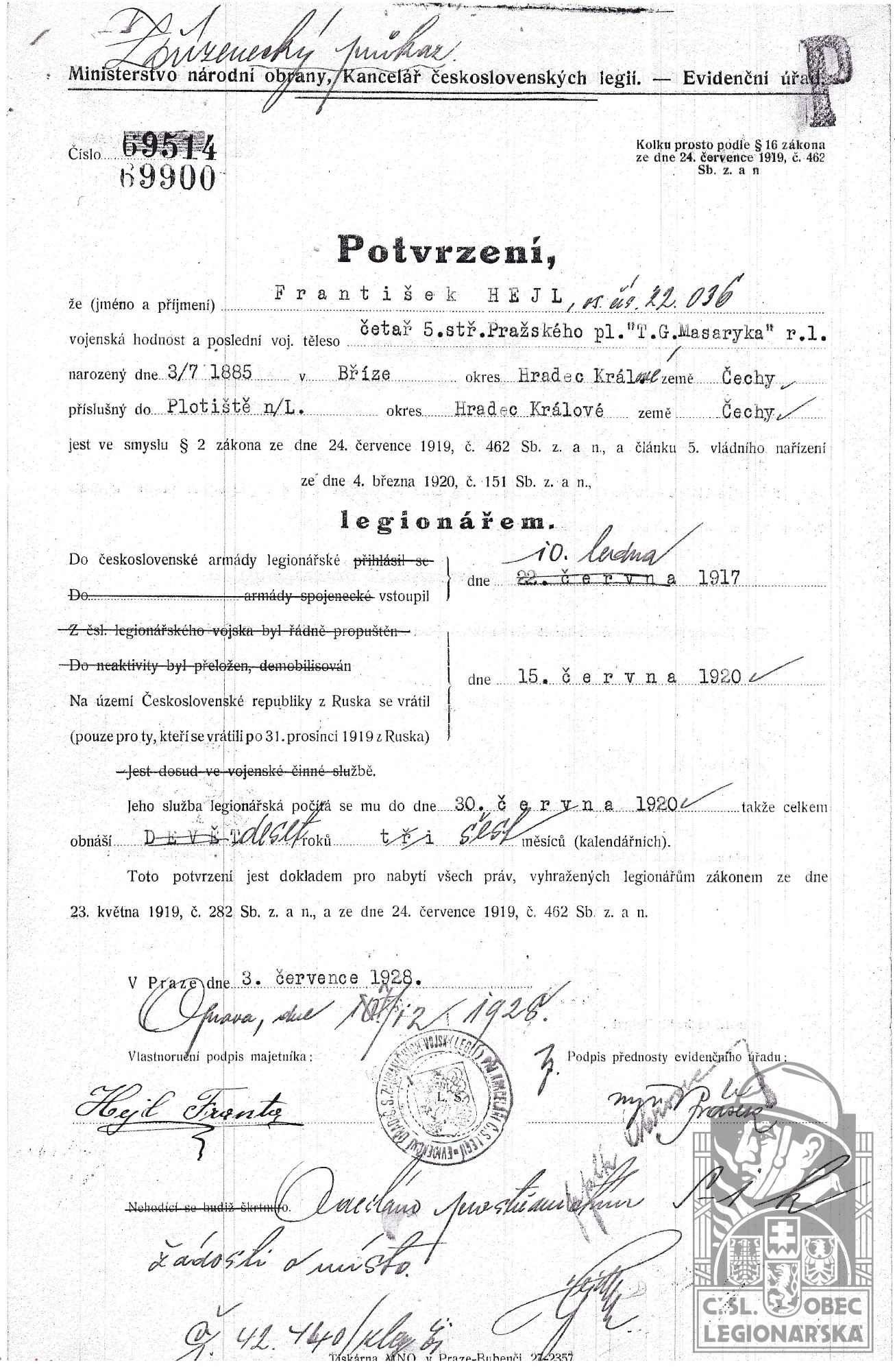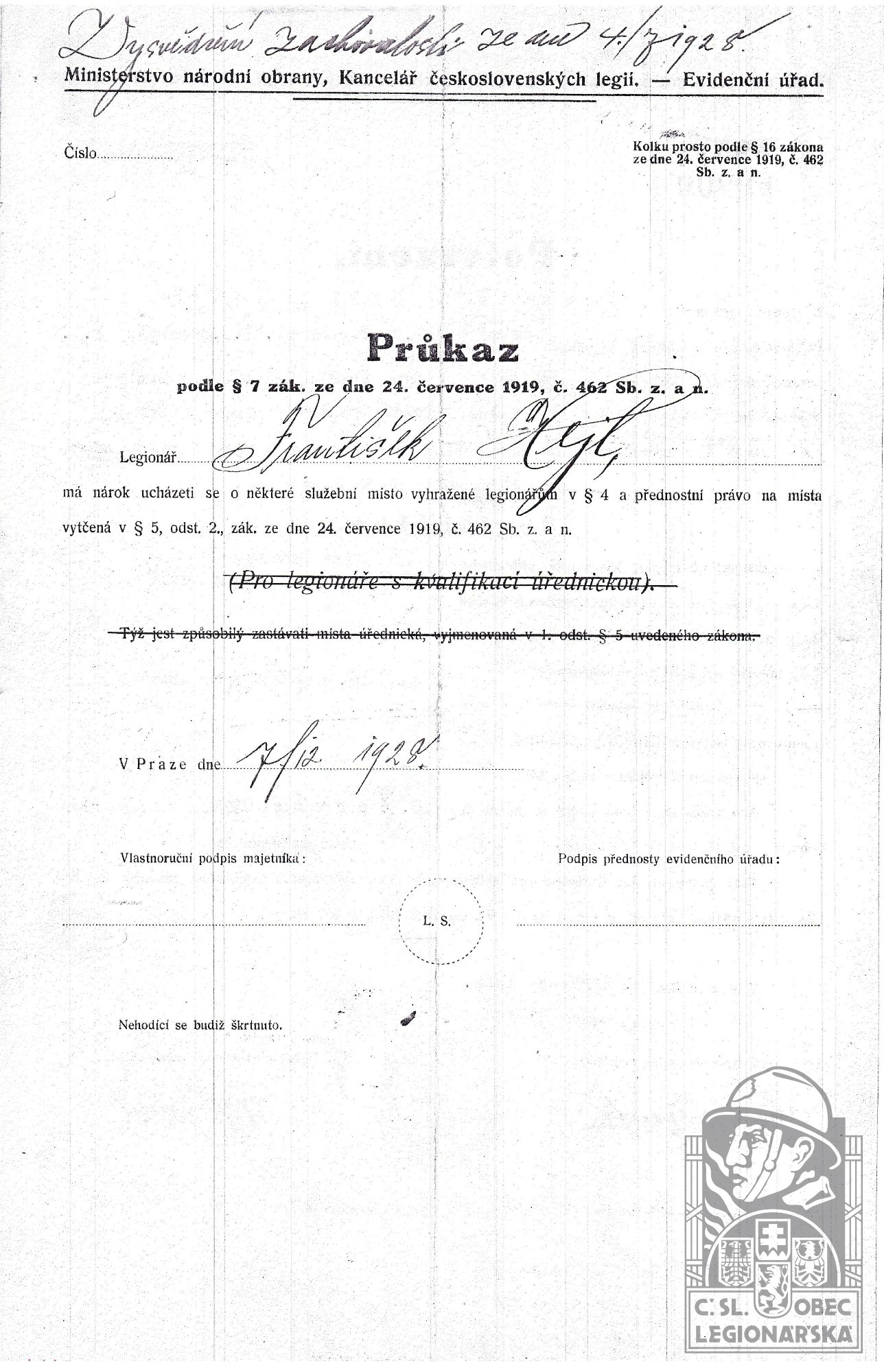 Konec v legiích:23.9.1920 ( Demobilizován )