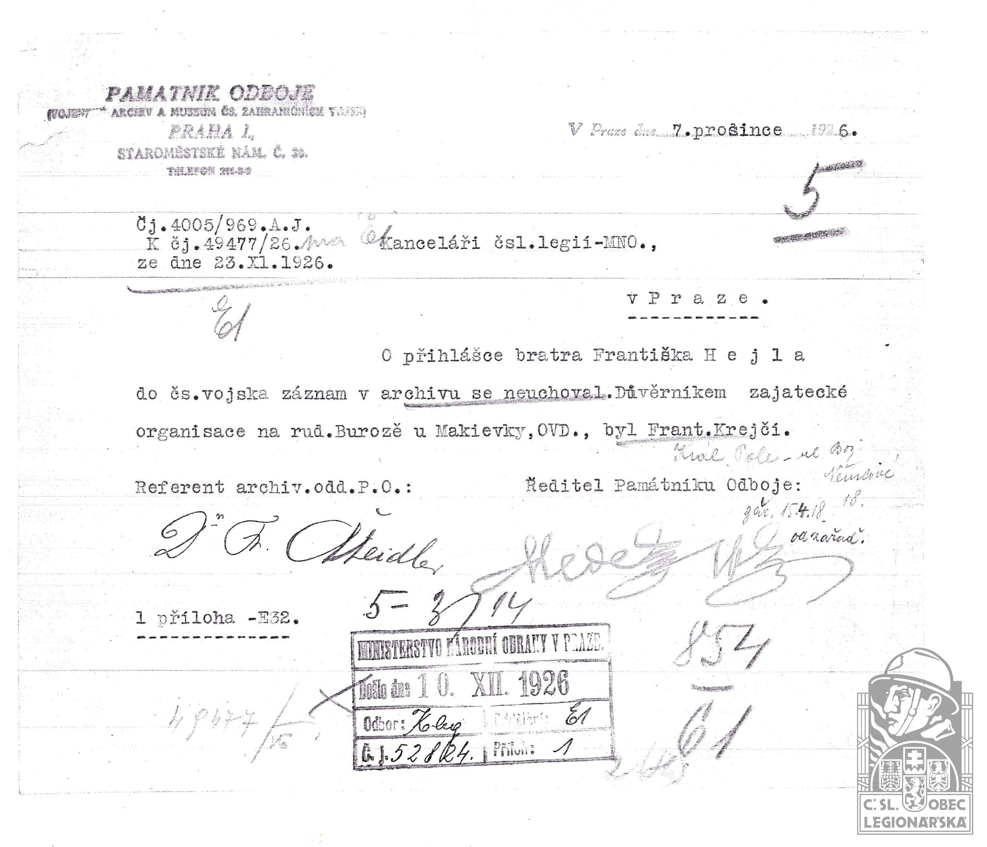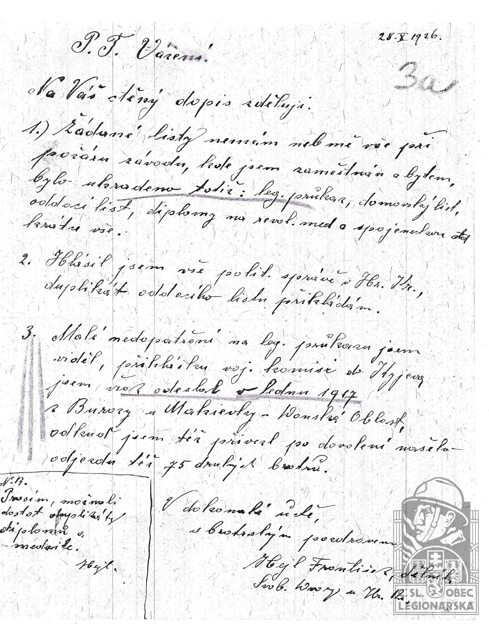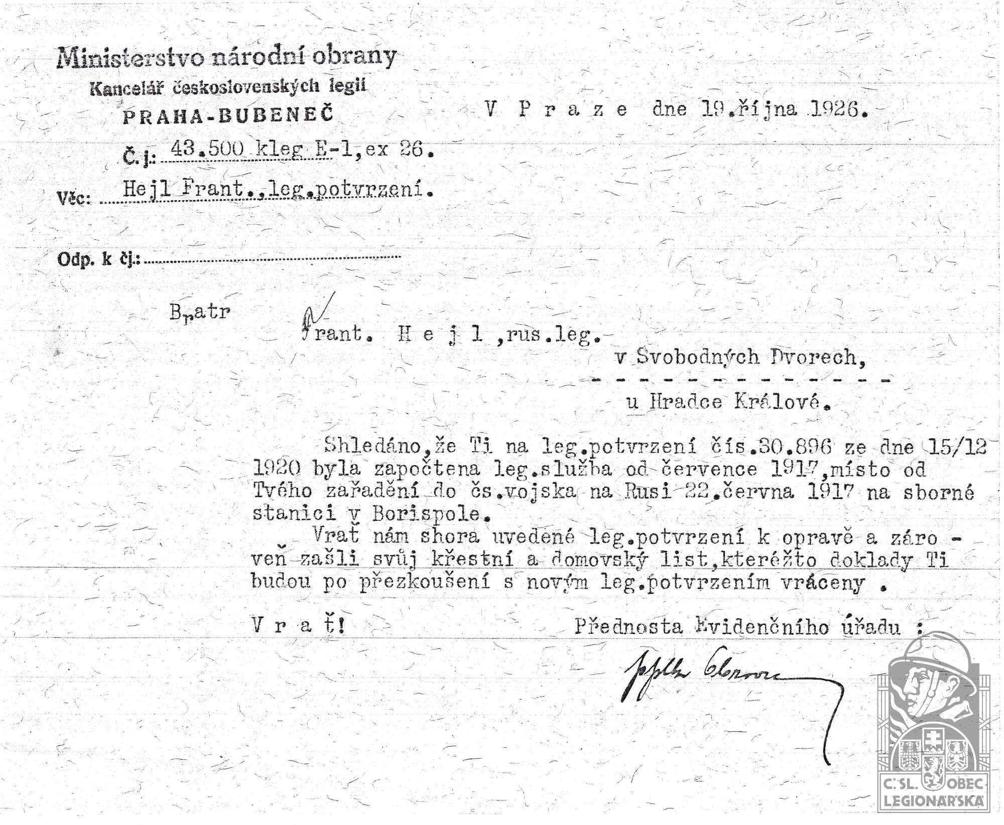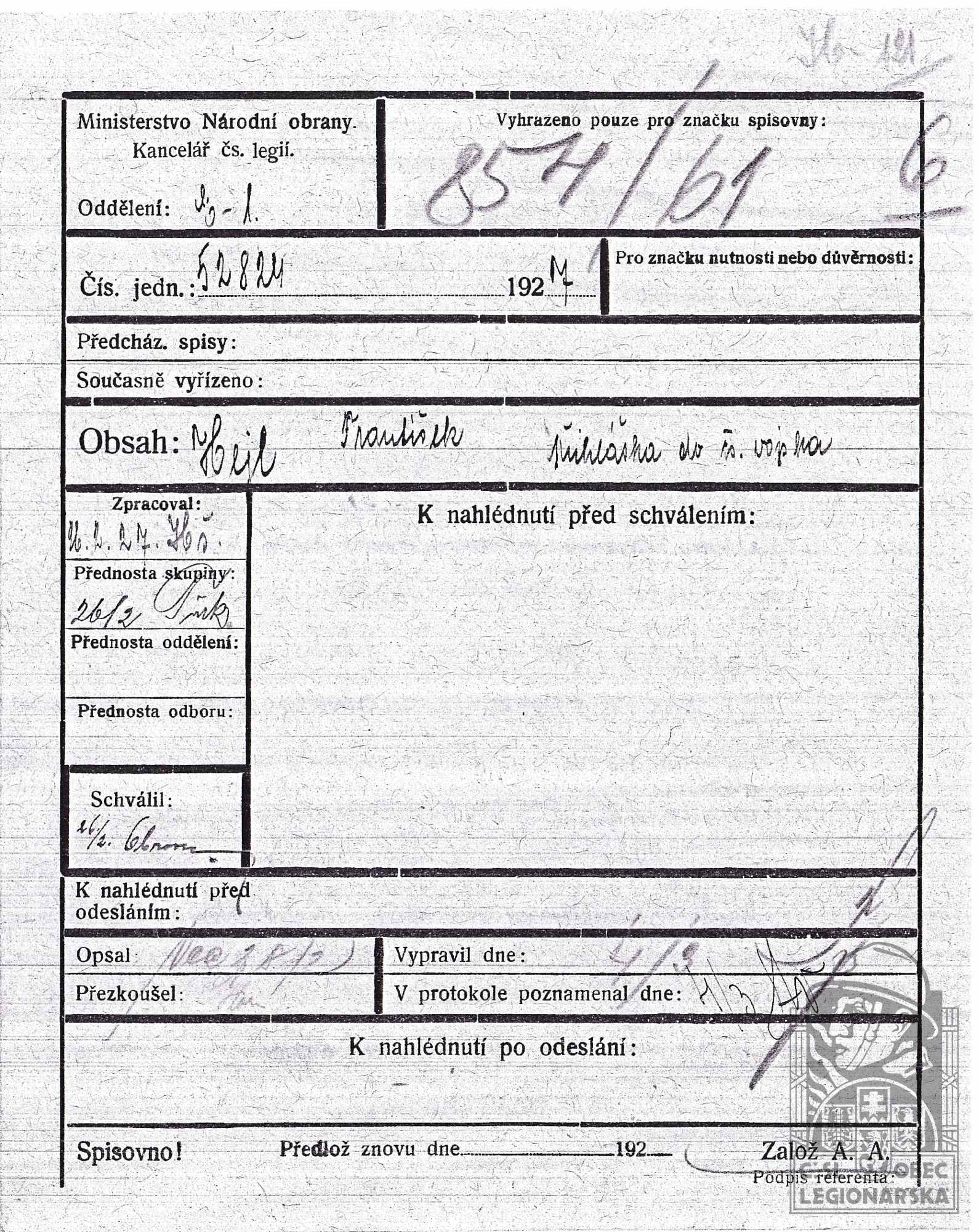 Konec v legiích:23.9.1920 ( Demobilizován )