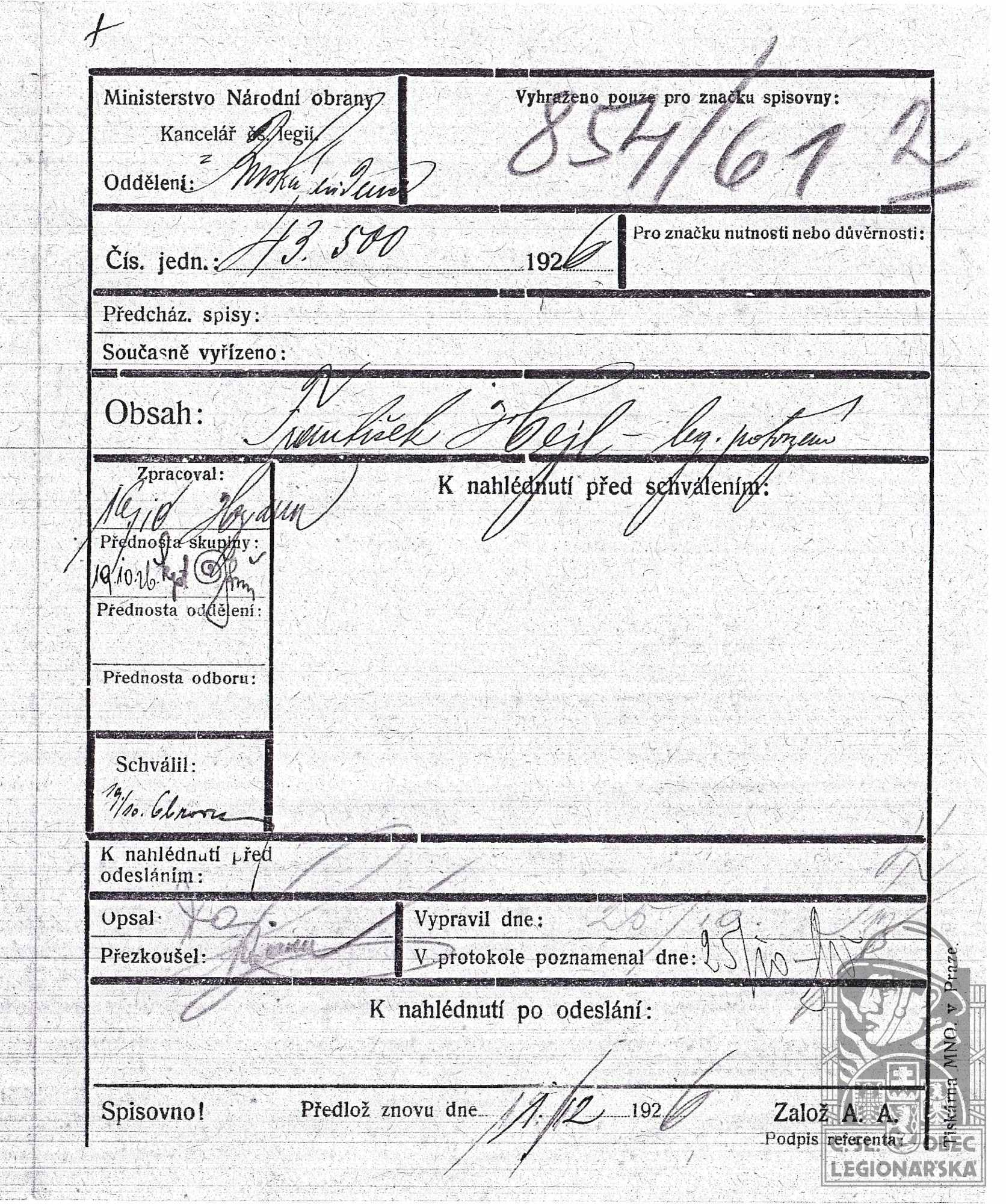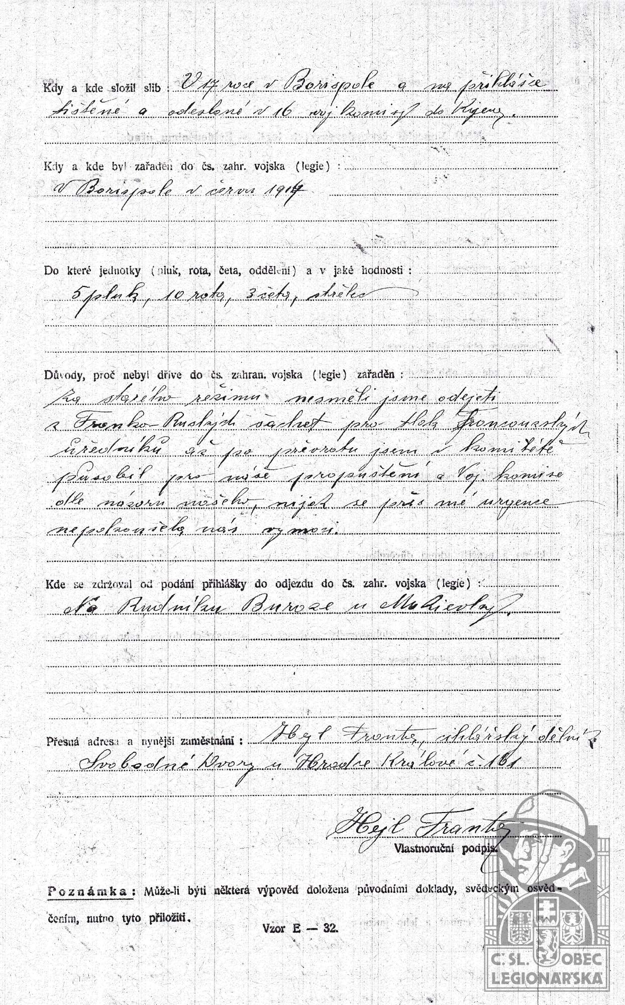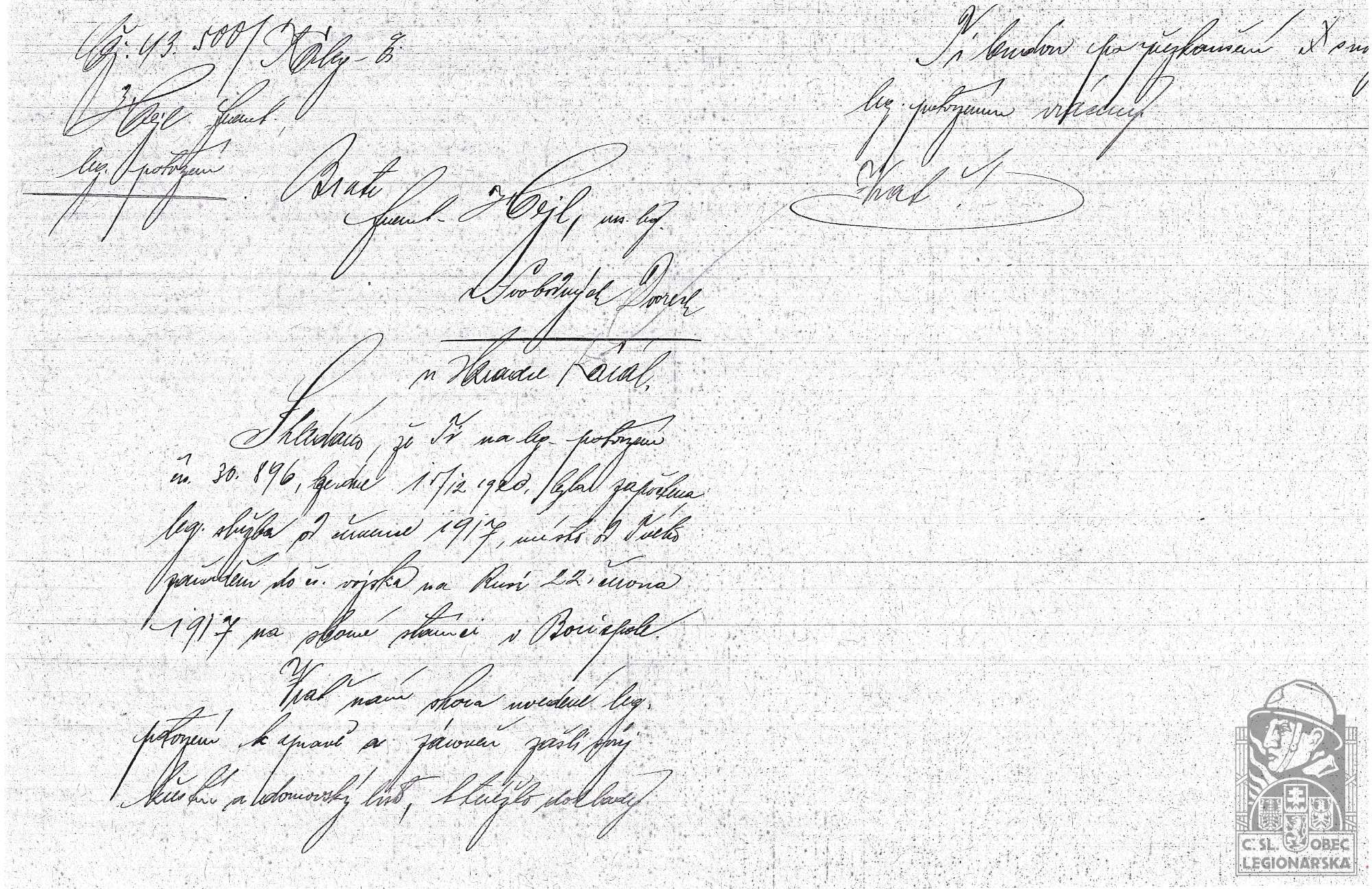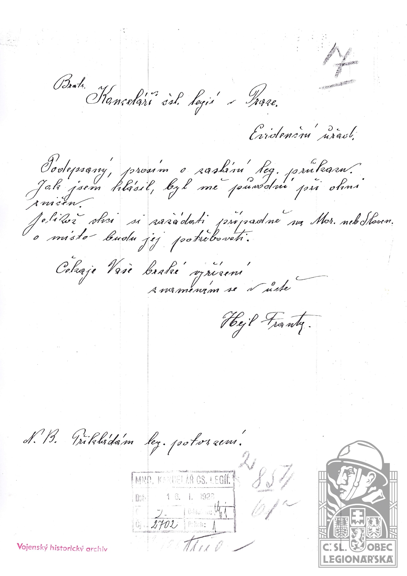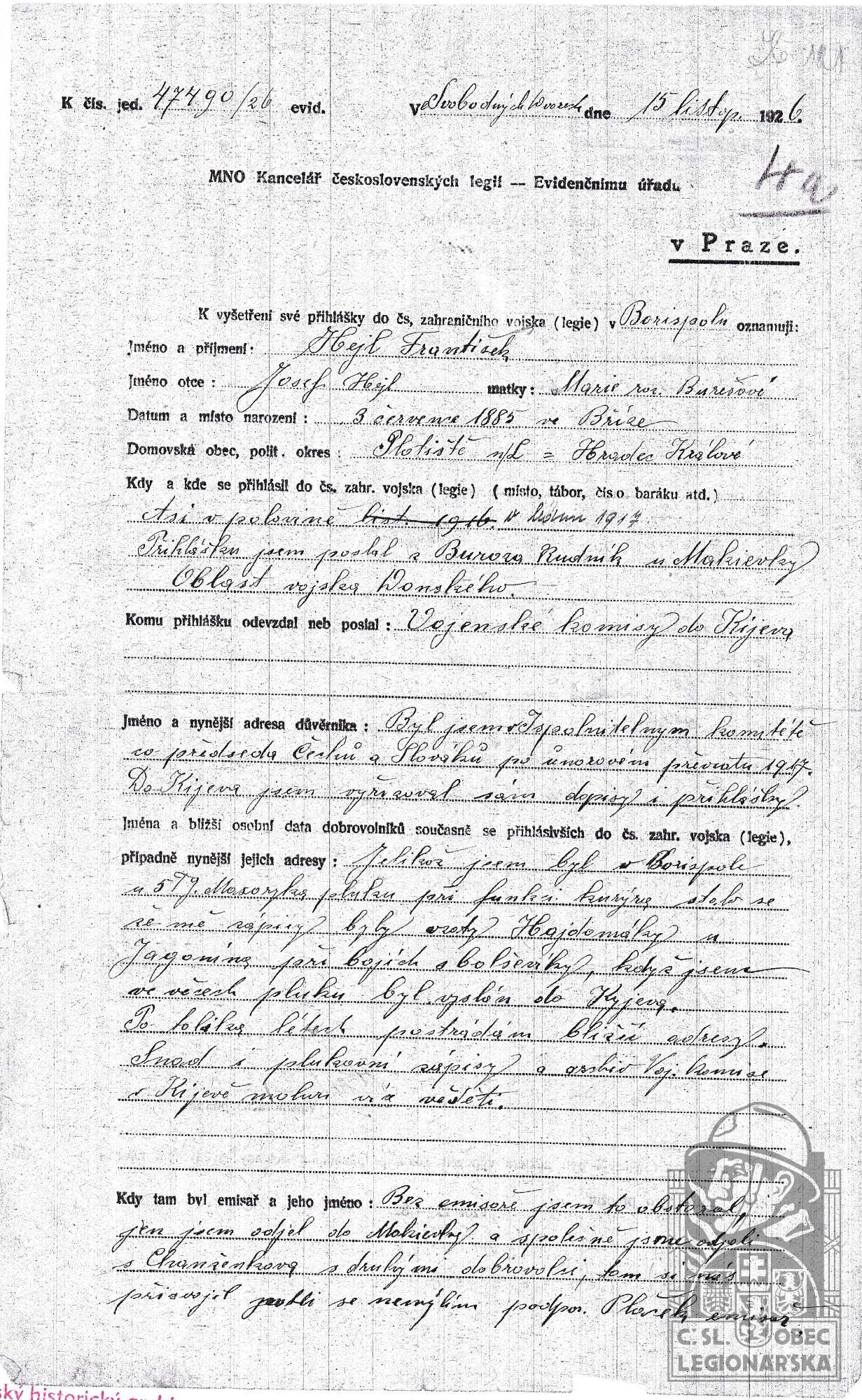 Zdroj informací: legionářský poslužný spis osobní karta legionáře