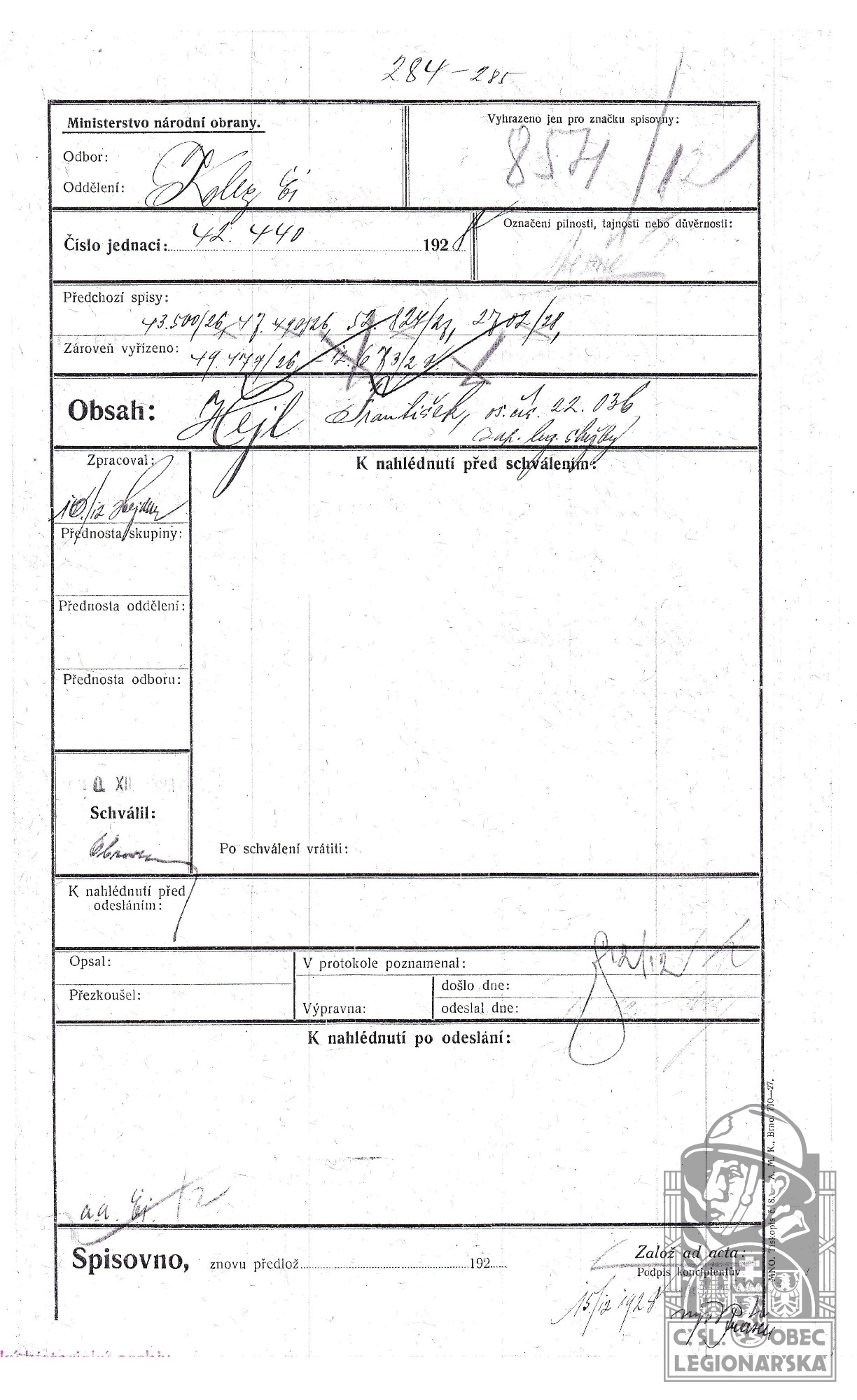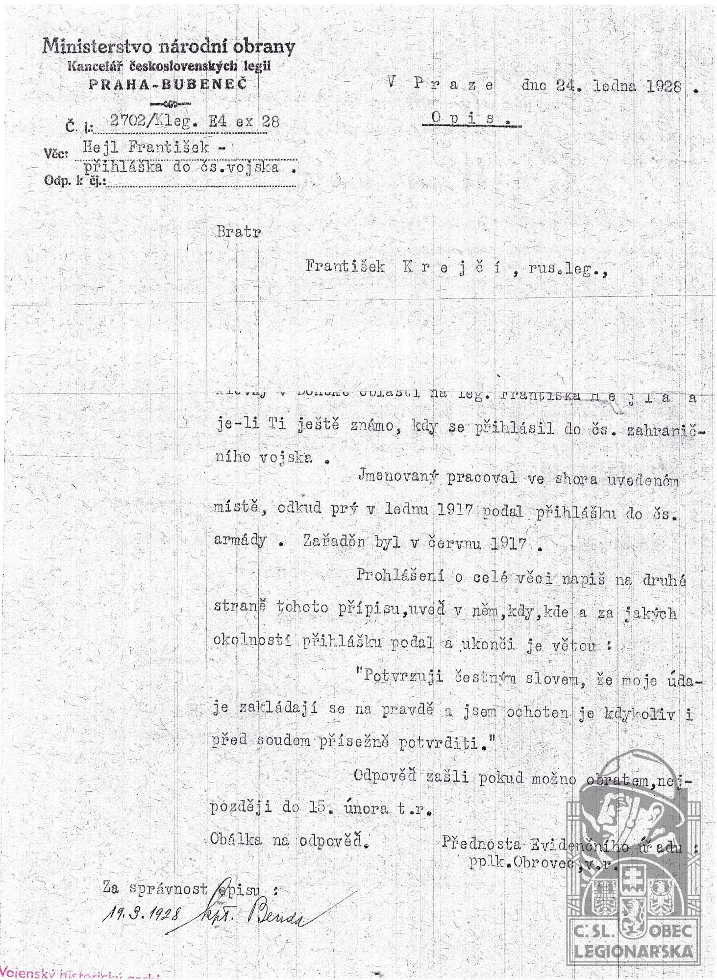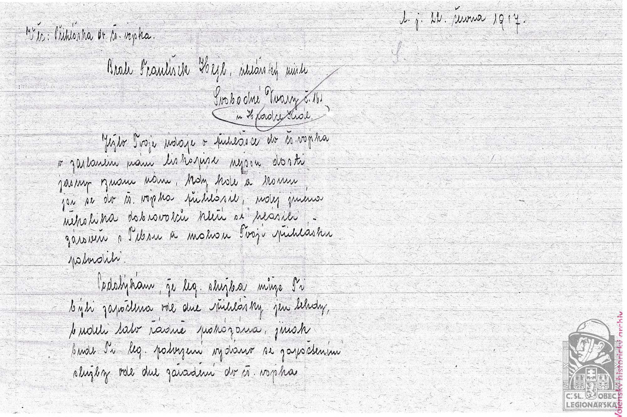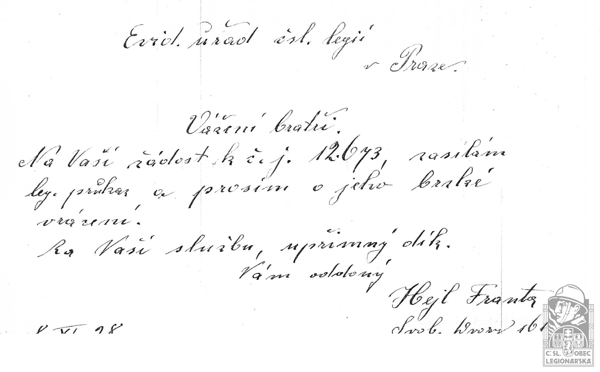 Zdroj informací: legionářský poslužný spis osobní karta legionáře