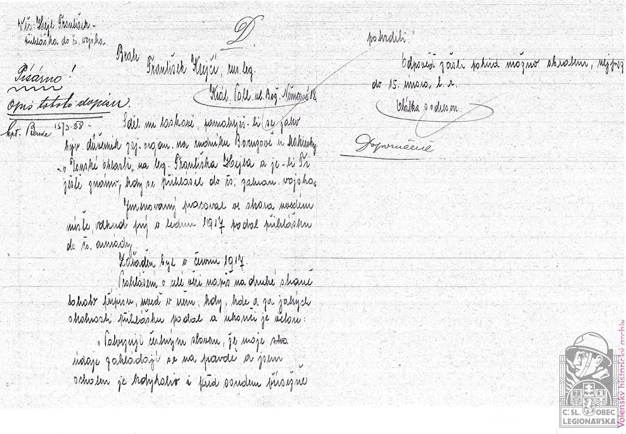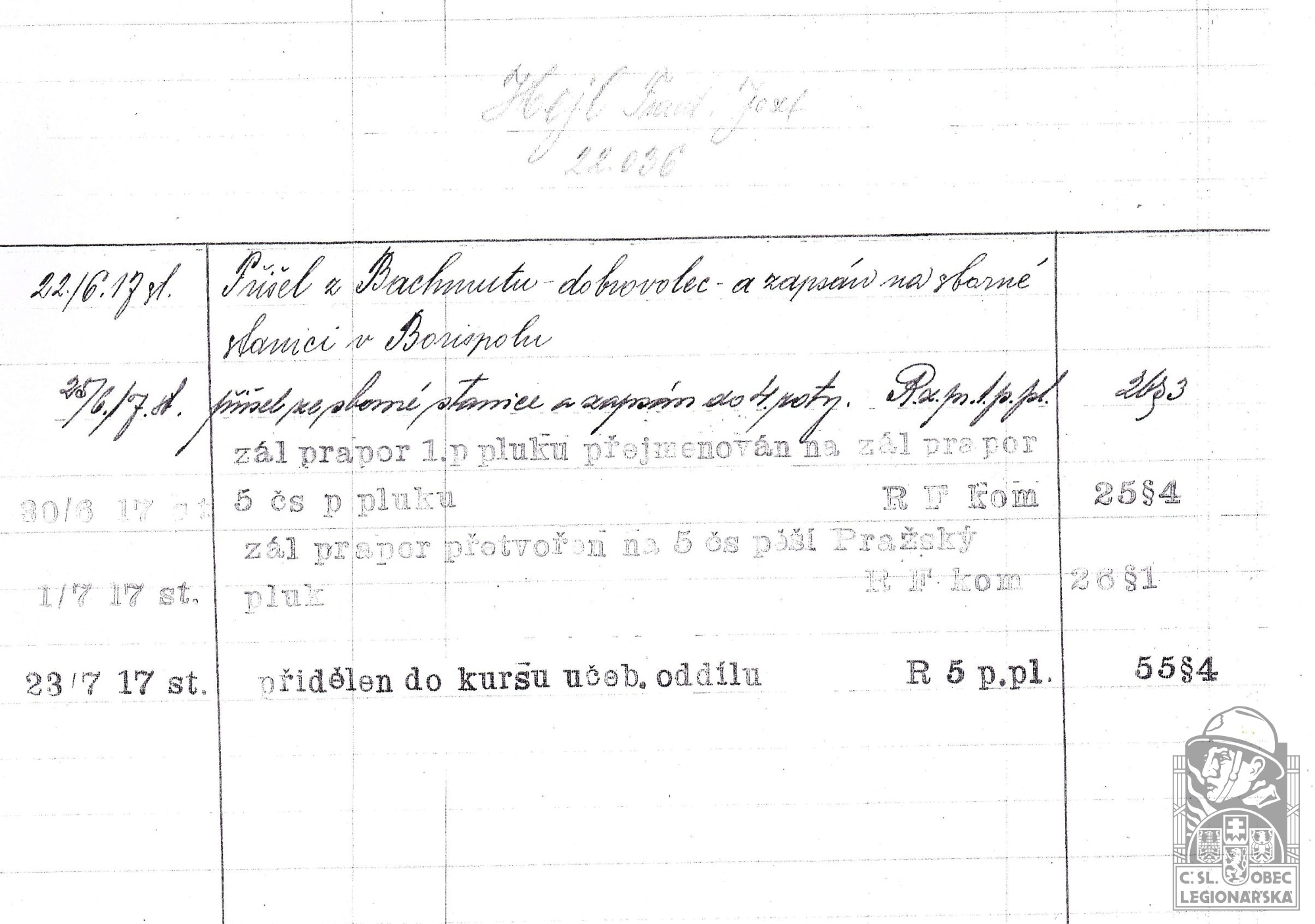 Jednotka v době zařazení:1.stř.pl. ( Čs. legie v Rusku )