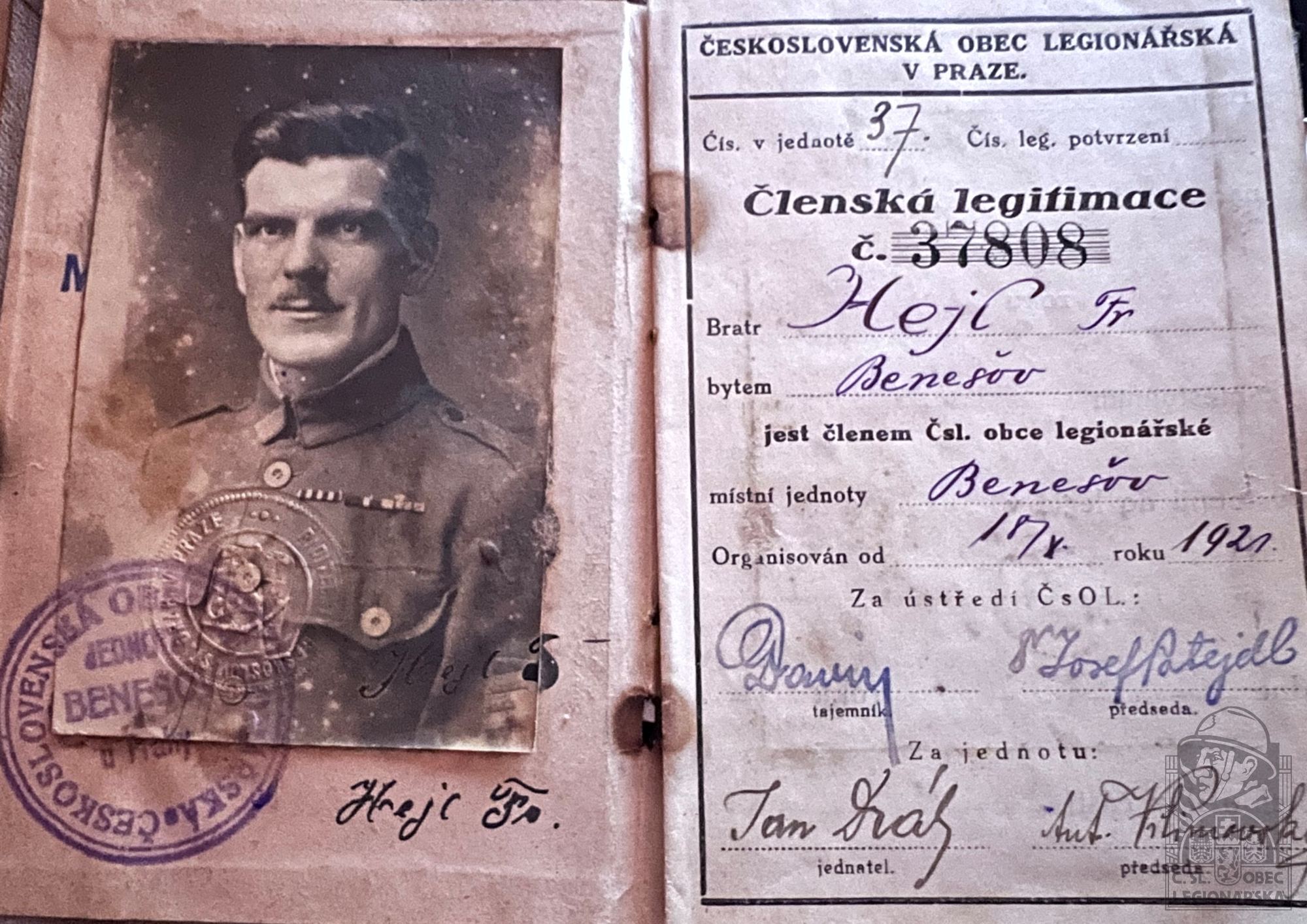 Zdroj informací: legionářský poslužný spis PROCHÁZKOVÁ, Eva. Českoslovenští legionáři z okresu Benešov. In: Sborník vlastivědných prací z Podblanicka 41. Benešov: Muzeum okresu Benešov, 2001.