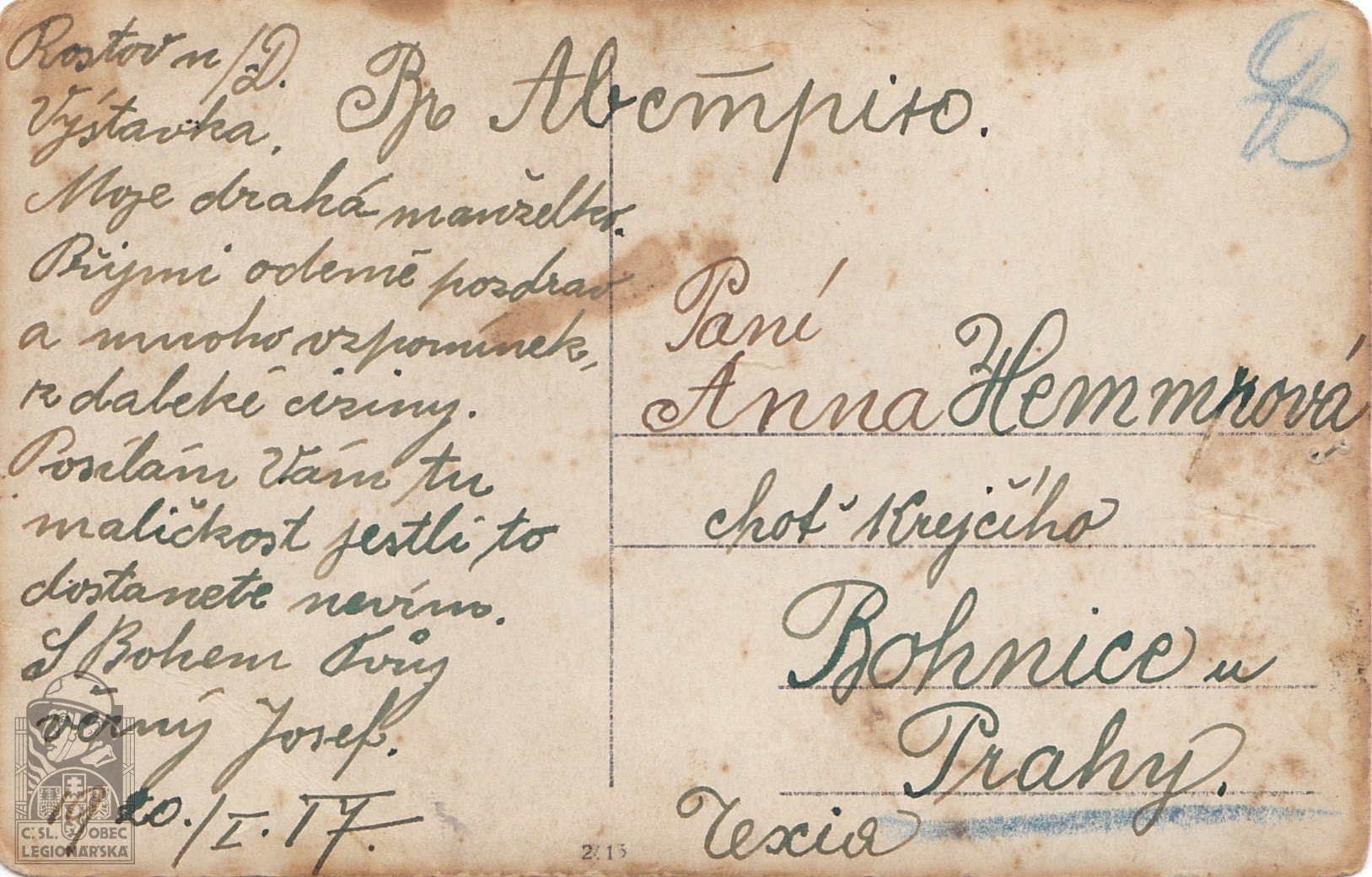 Zdroj informací: legionářský poslužný spis osobní karta legionáře