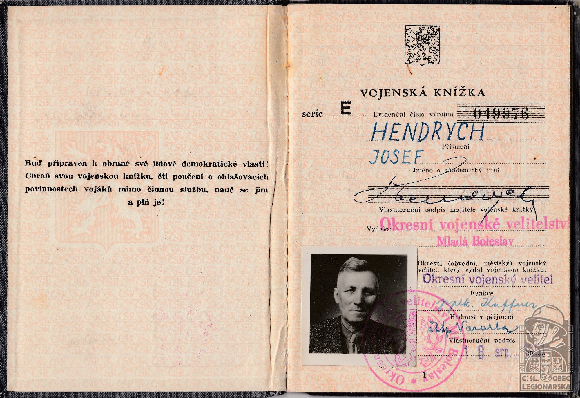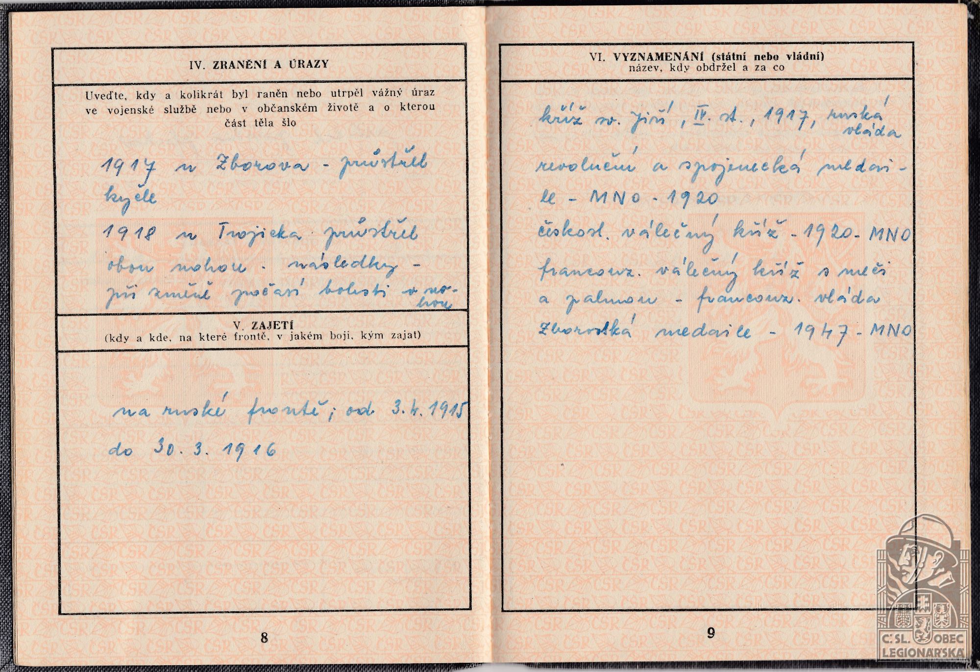 dokumenty spojené s osobou legionáře