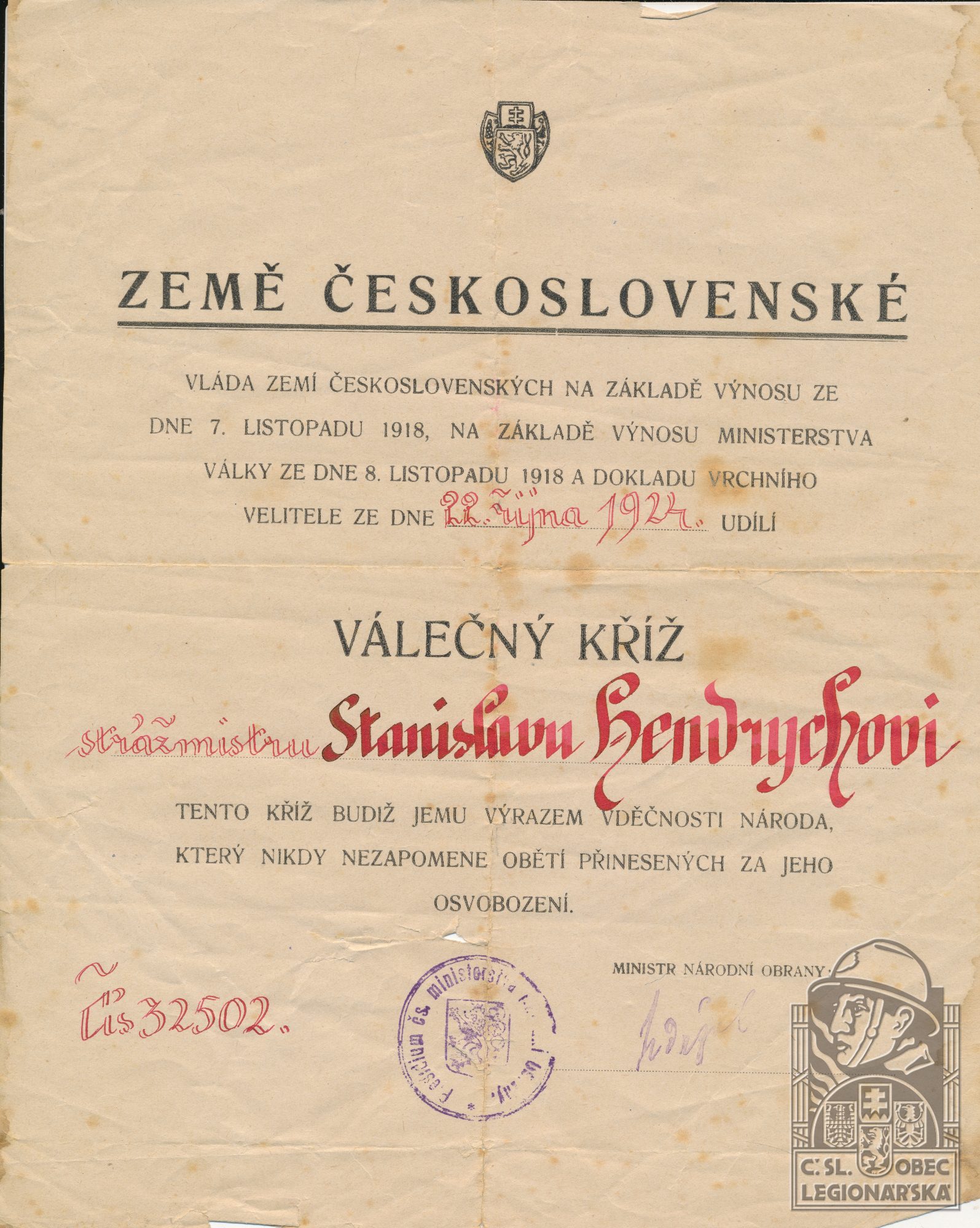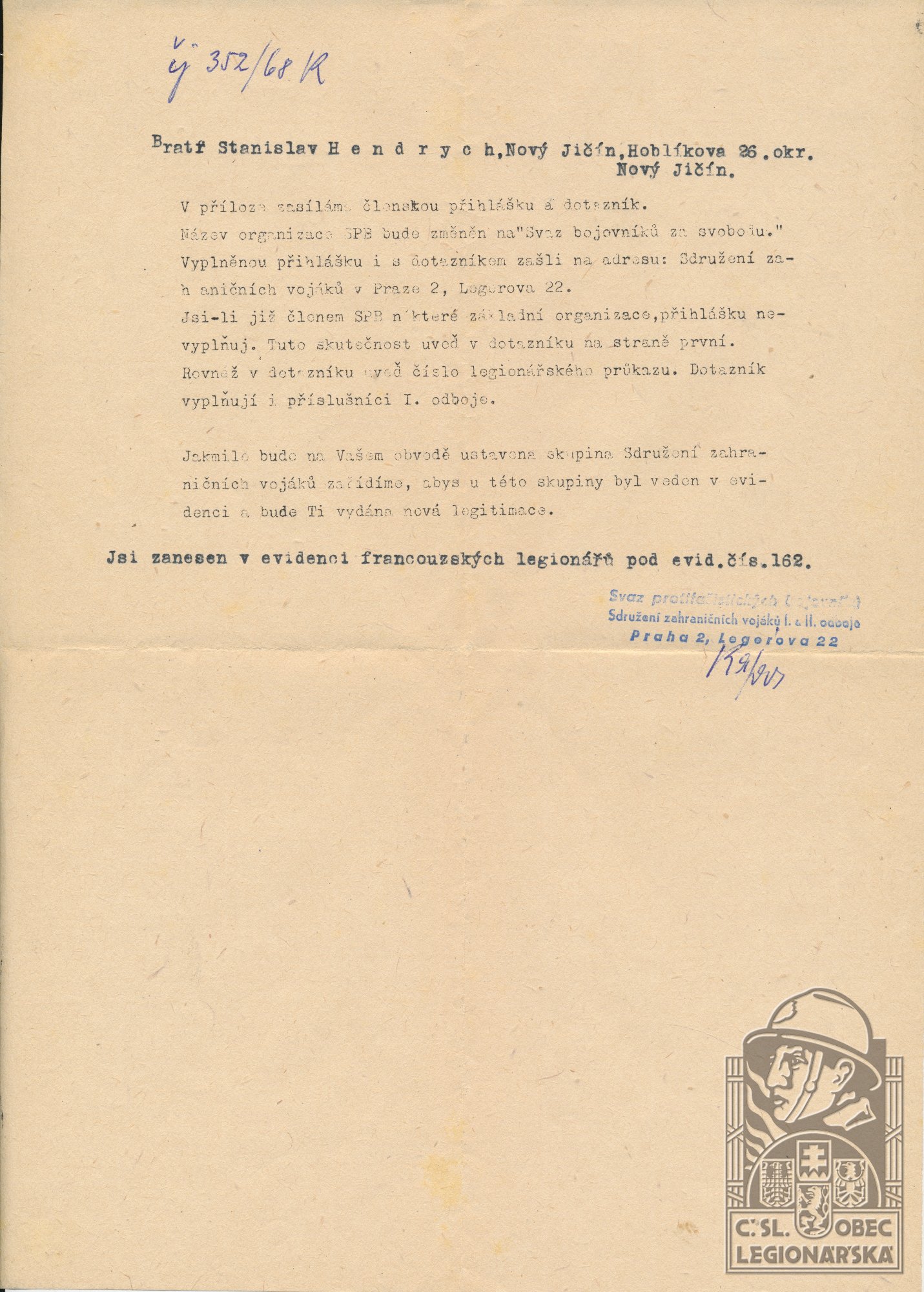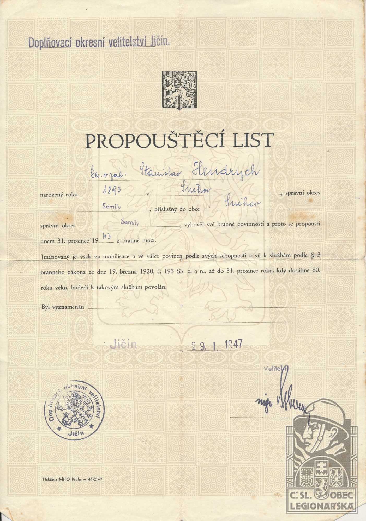 dokumenty spojené s osobou legionáře
