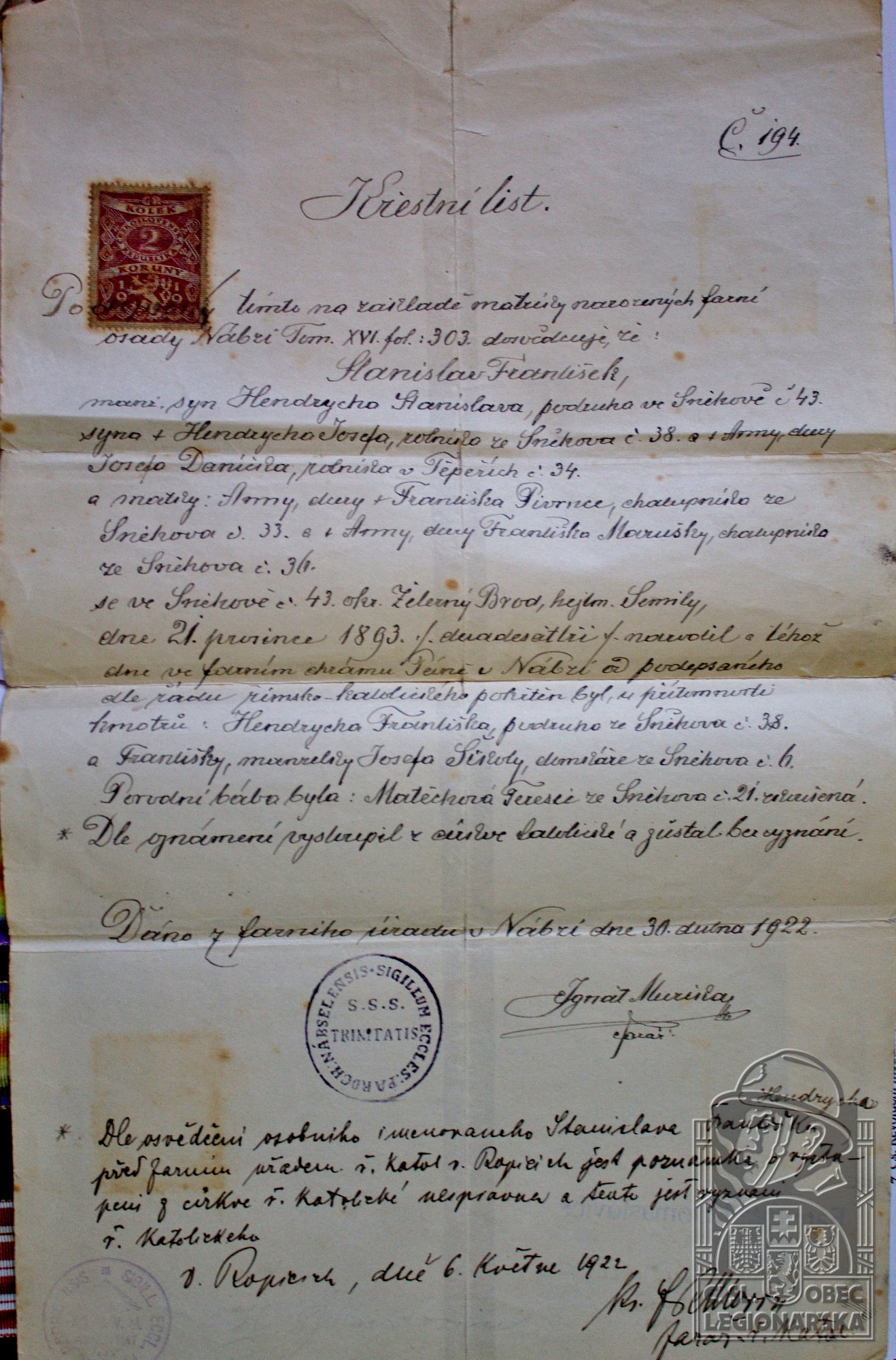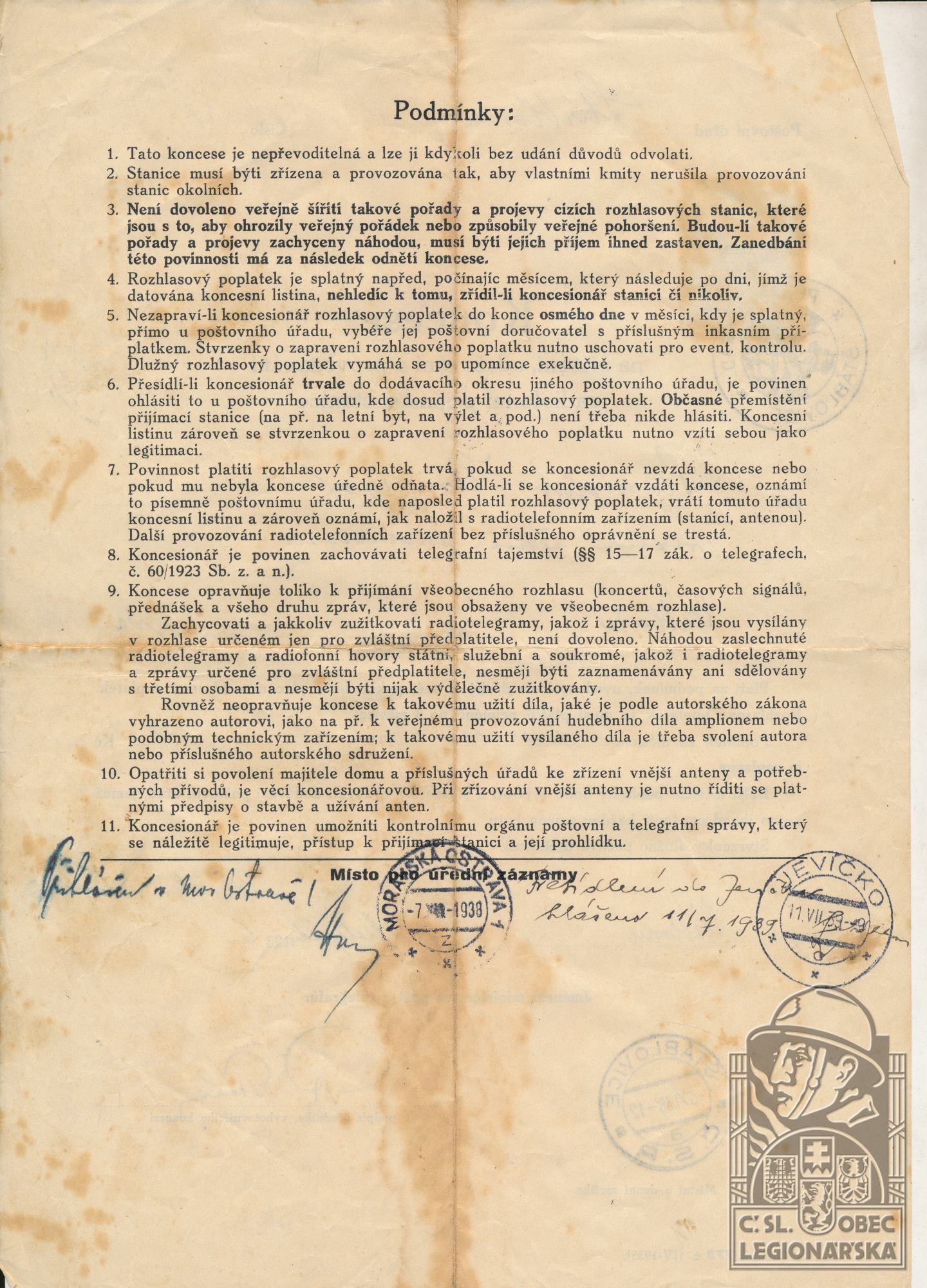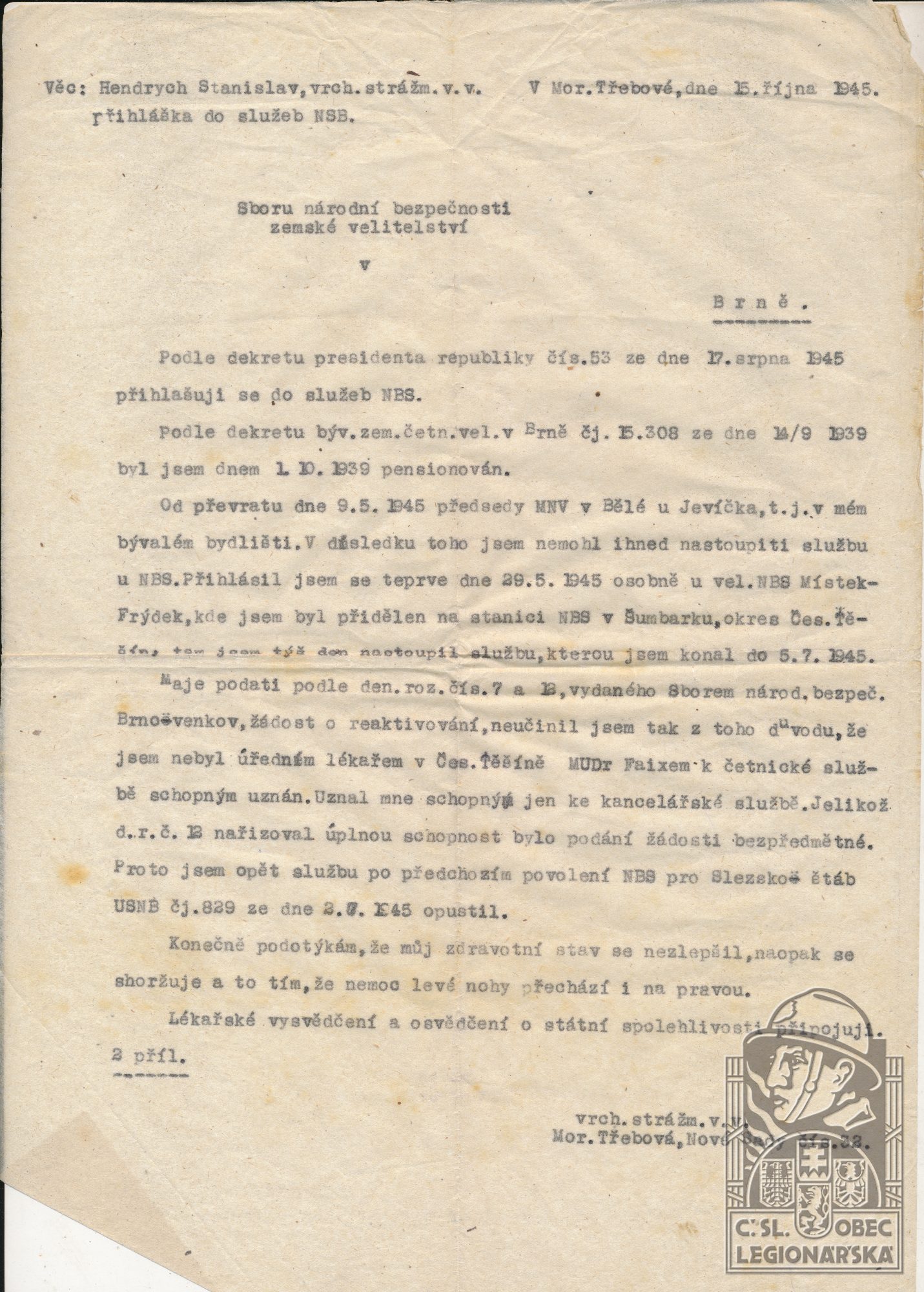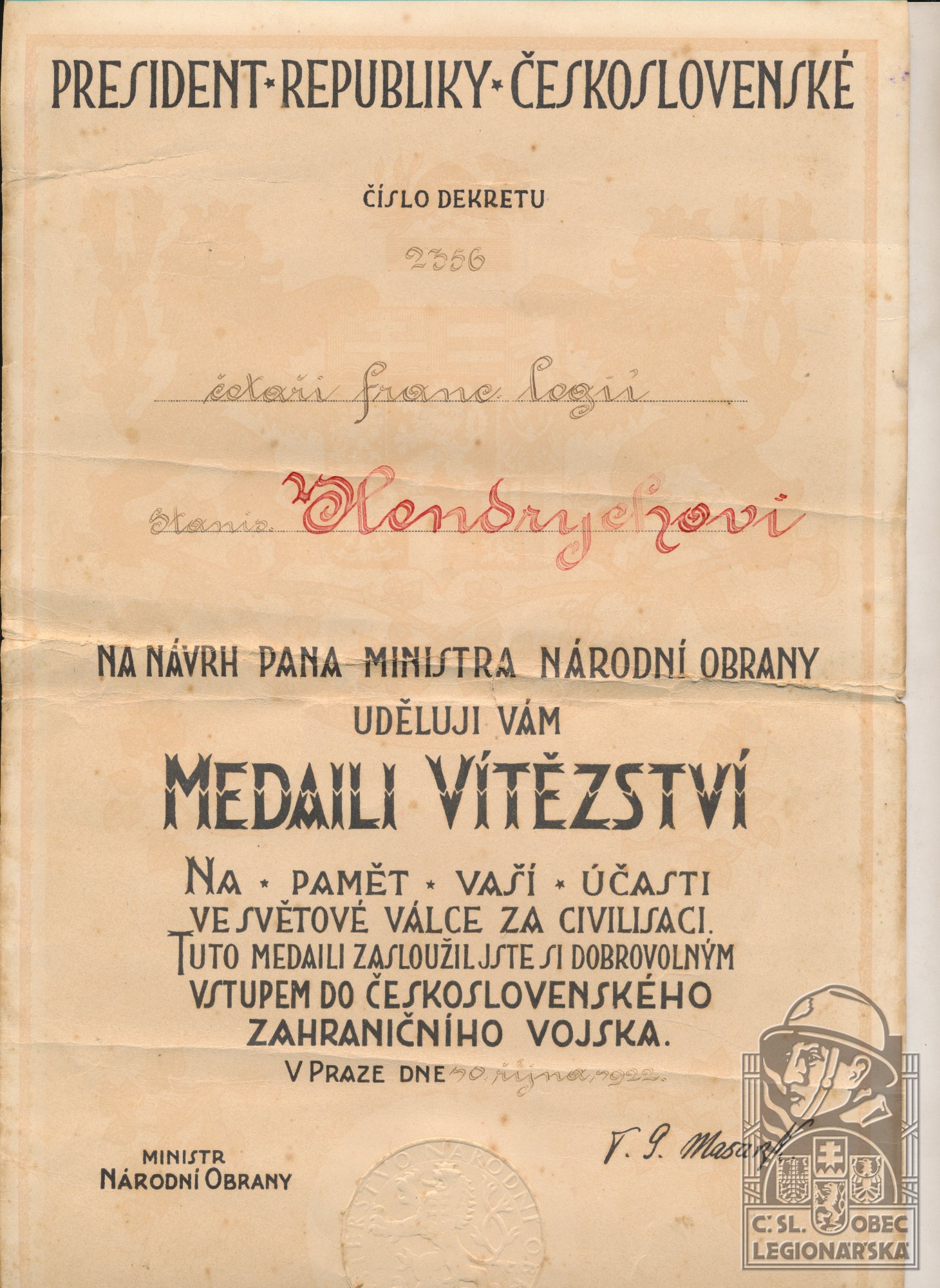 dokumenty spojené s osobou legionáře