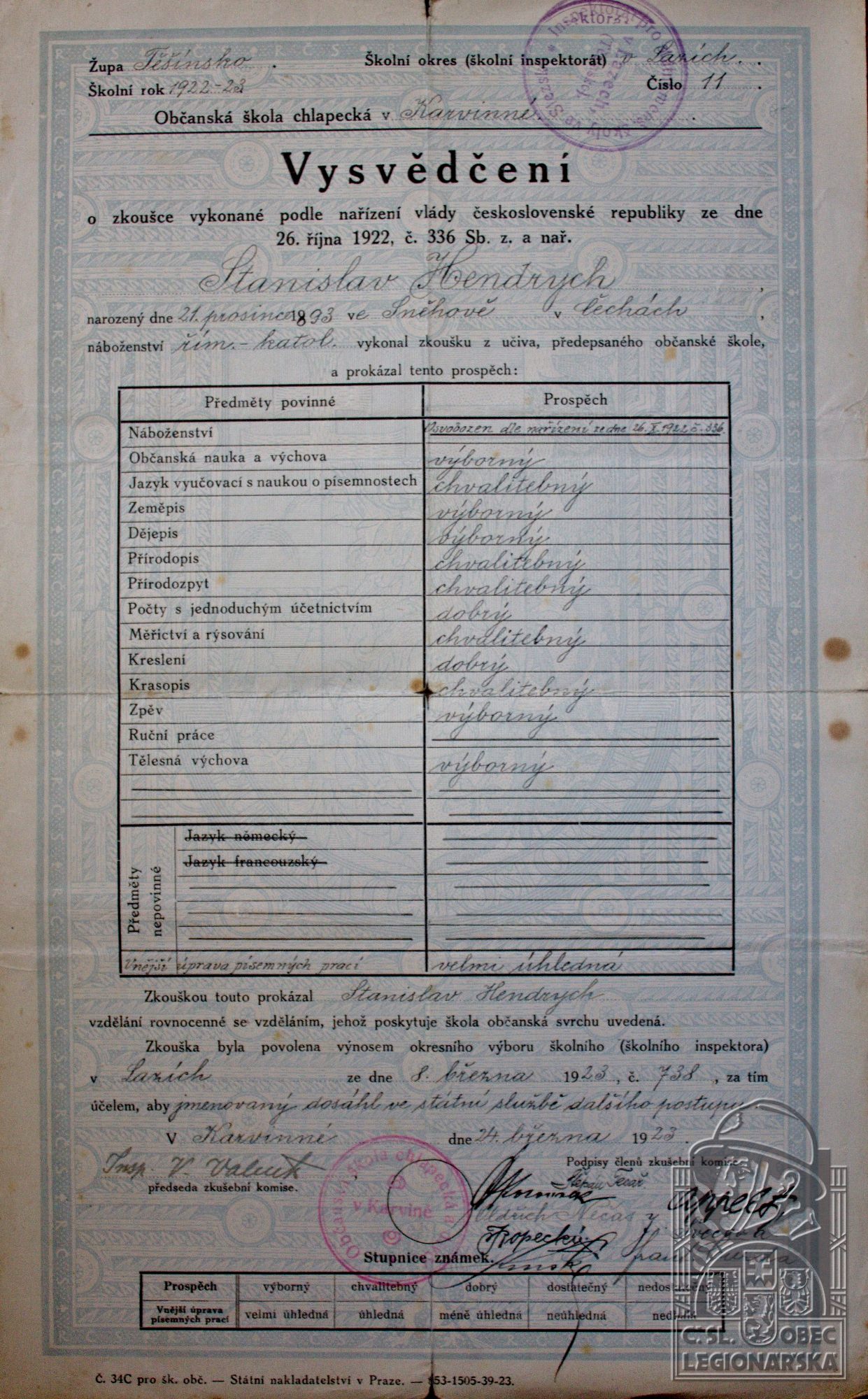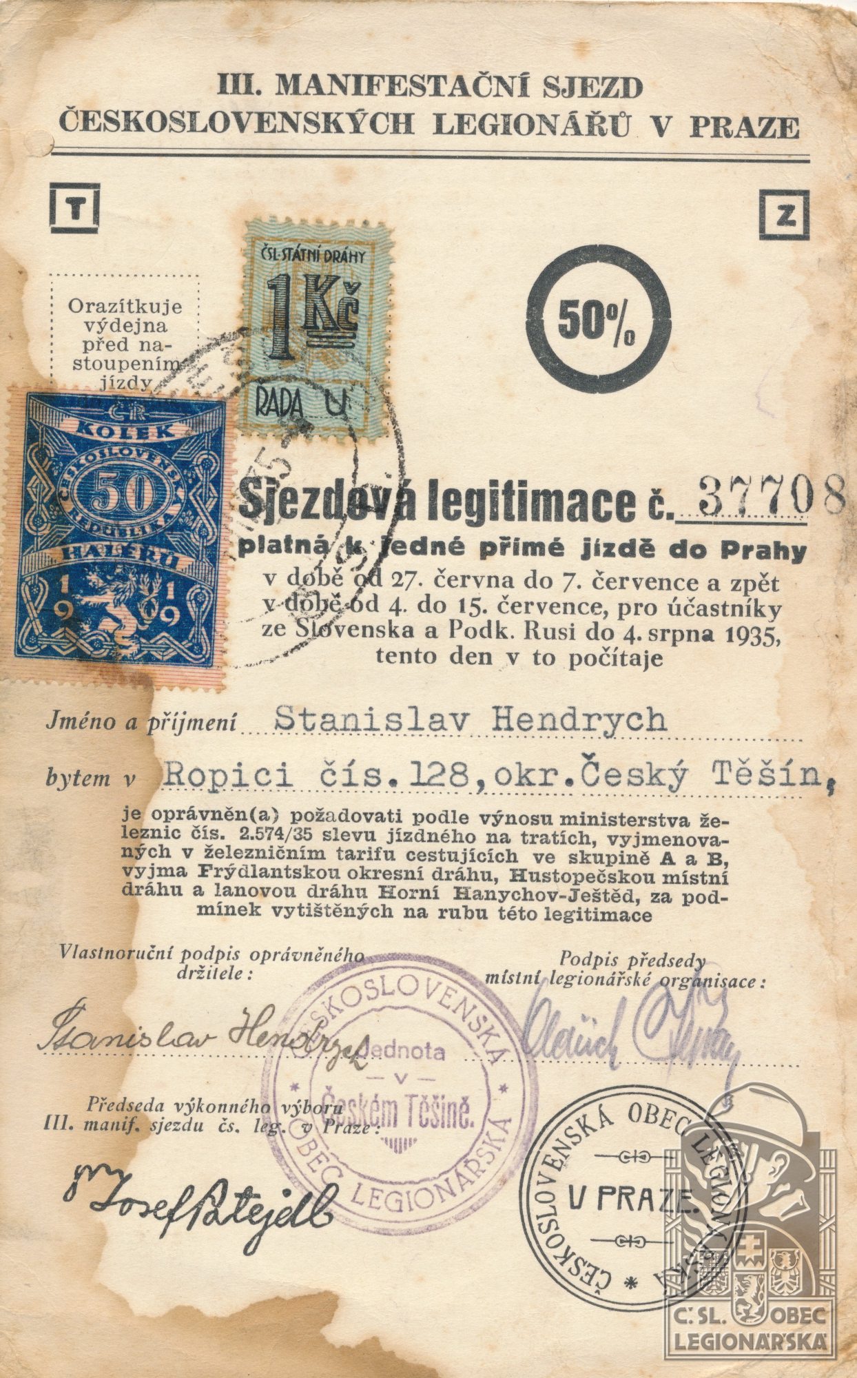 Legionářska organizace:ČsOL - Český Těšín