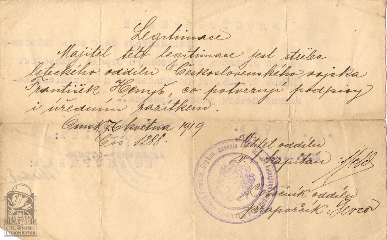 dokumenty spojené s osobou legionáře