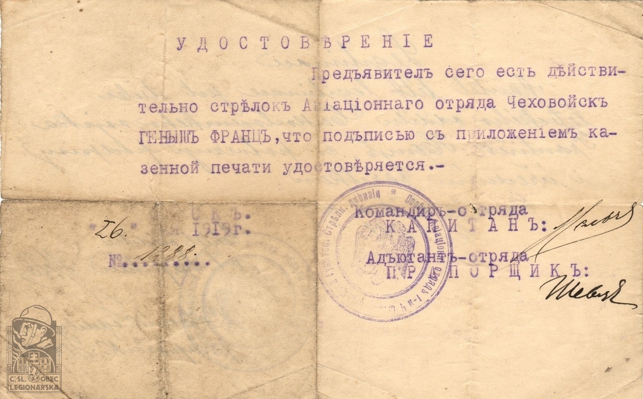 Jednotka v době zařazení:zál.pr. ( Čs. legie v Rusku )