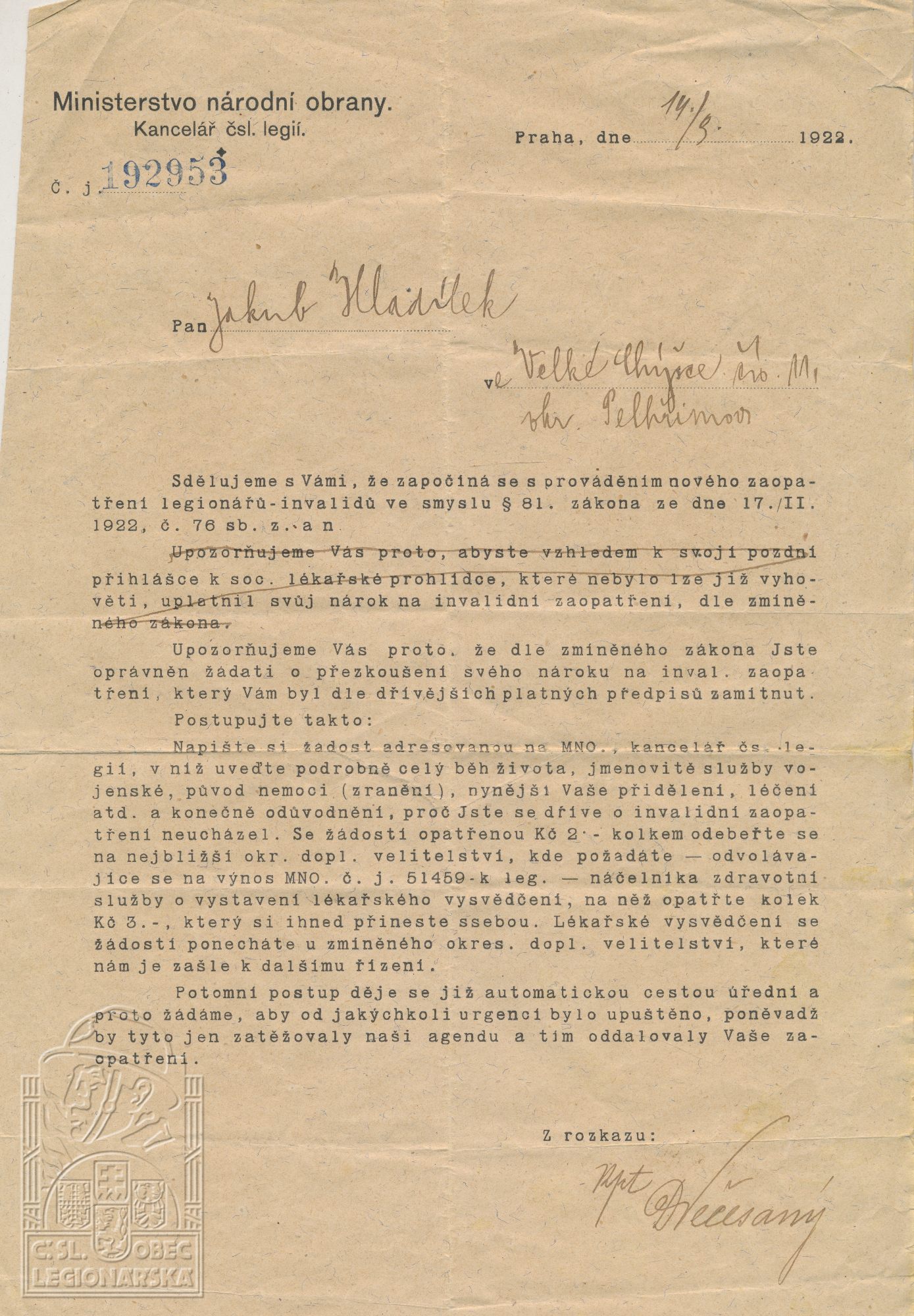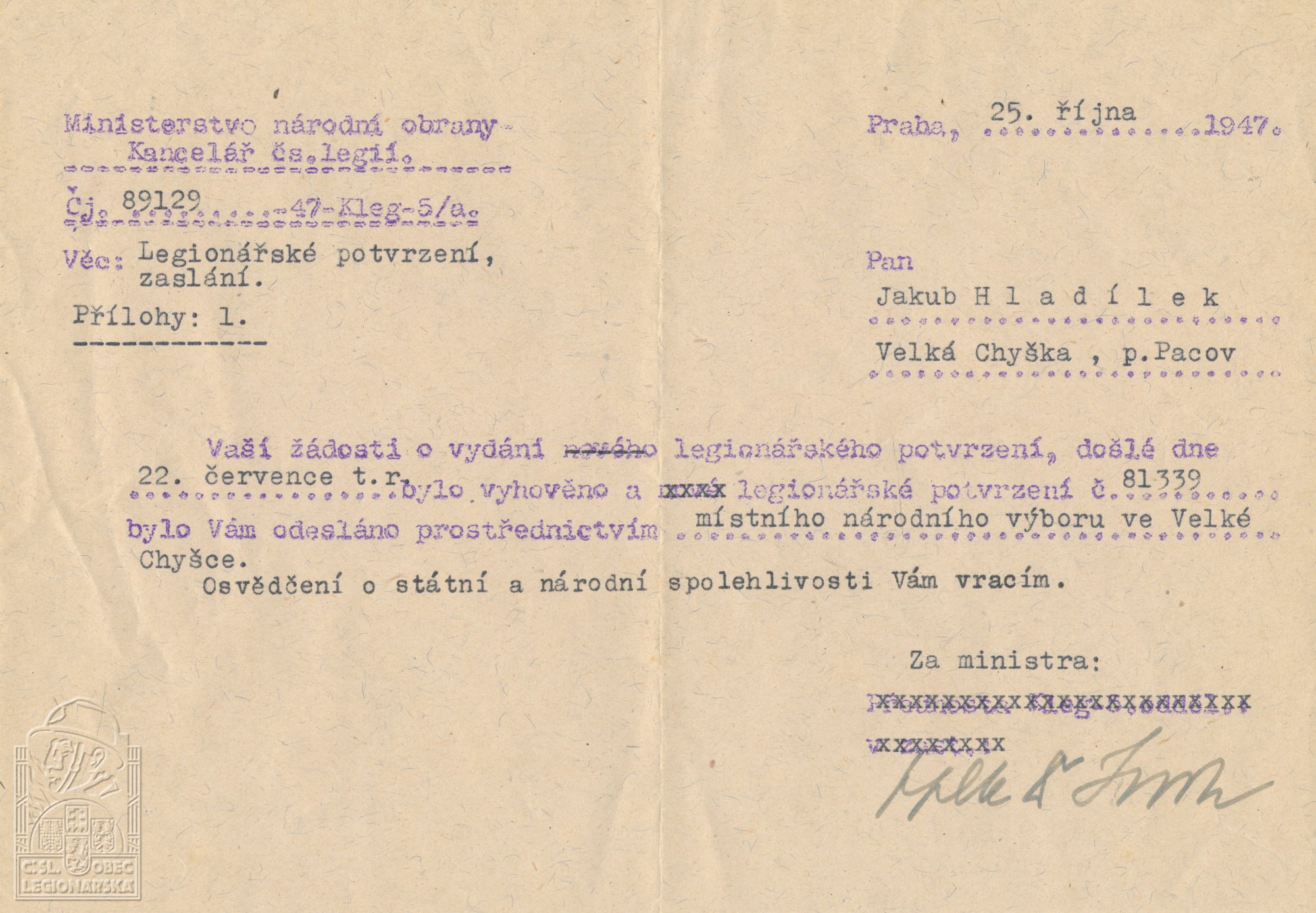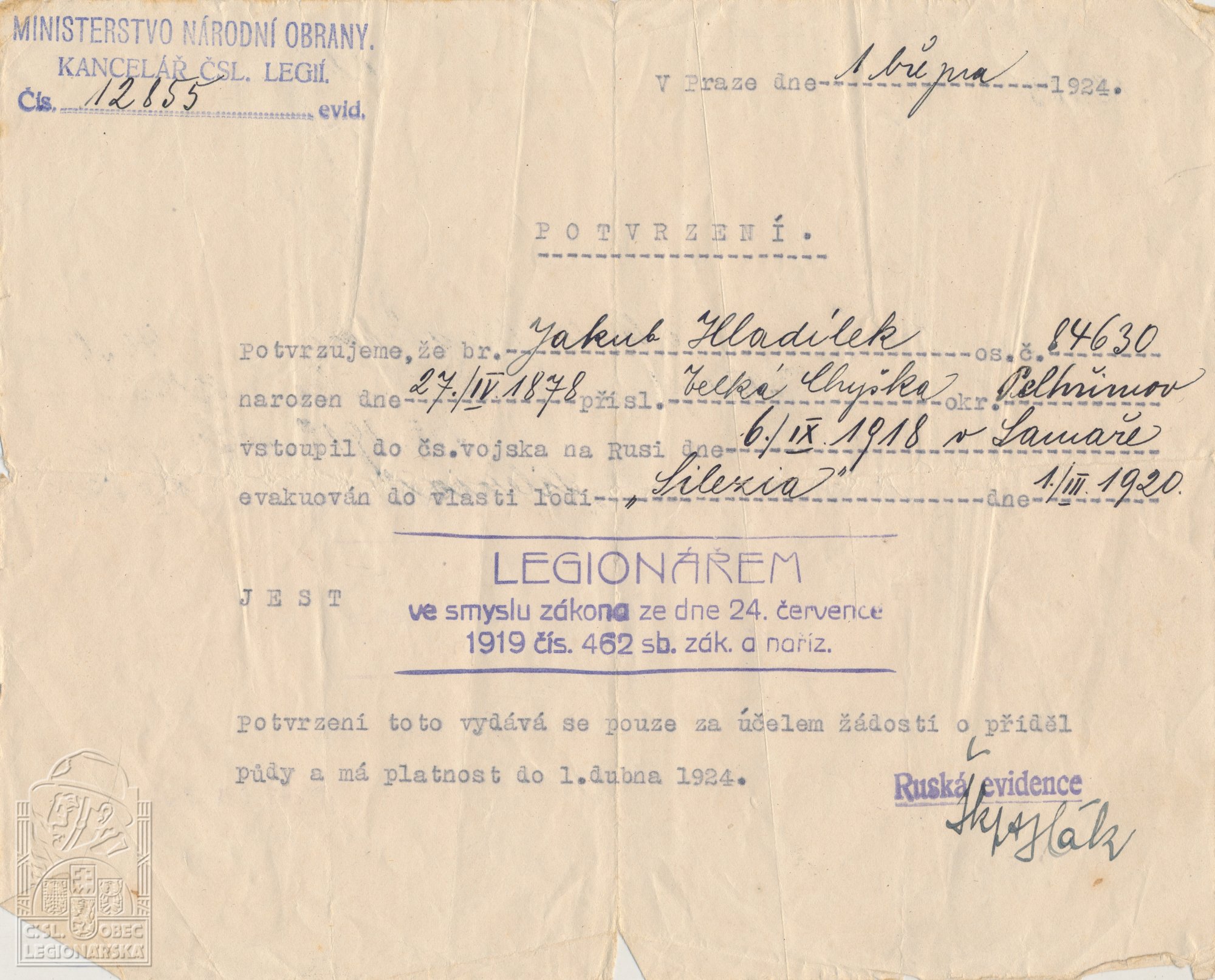 Konec v legiích:2.6.1920 ( Demobilizován )