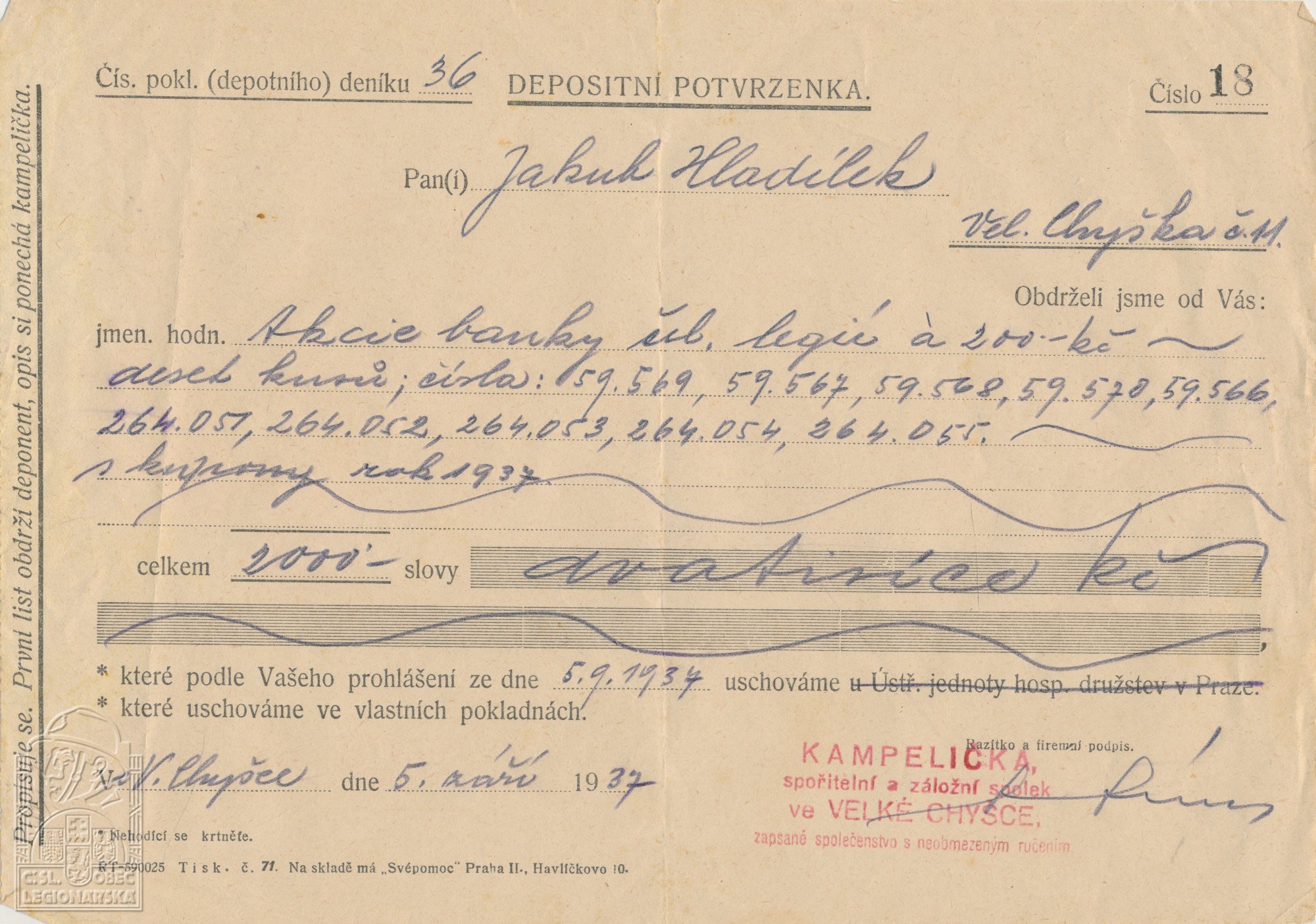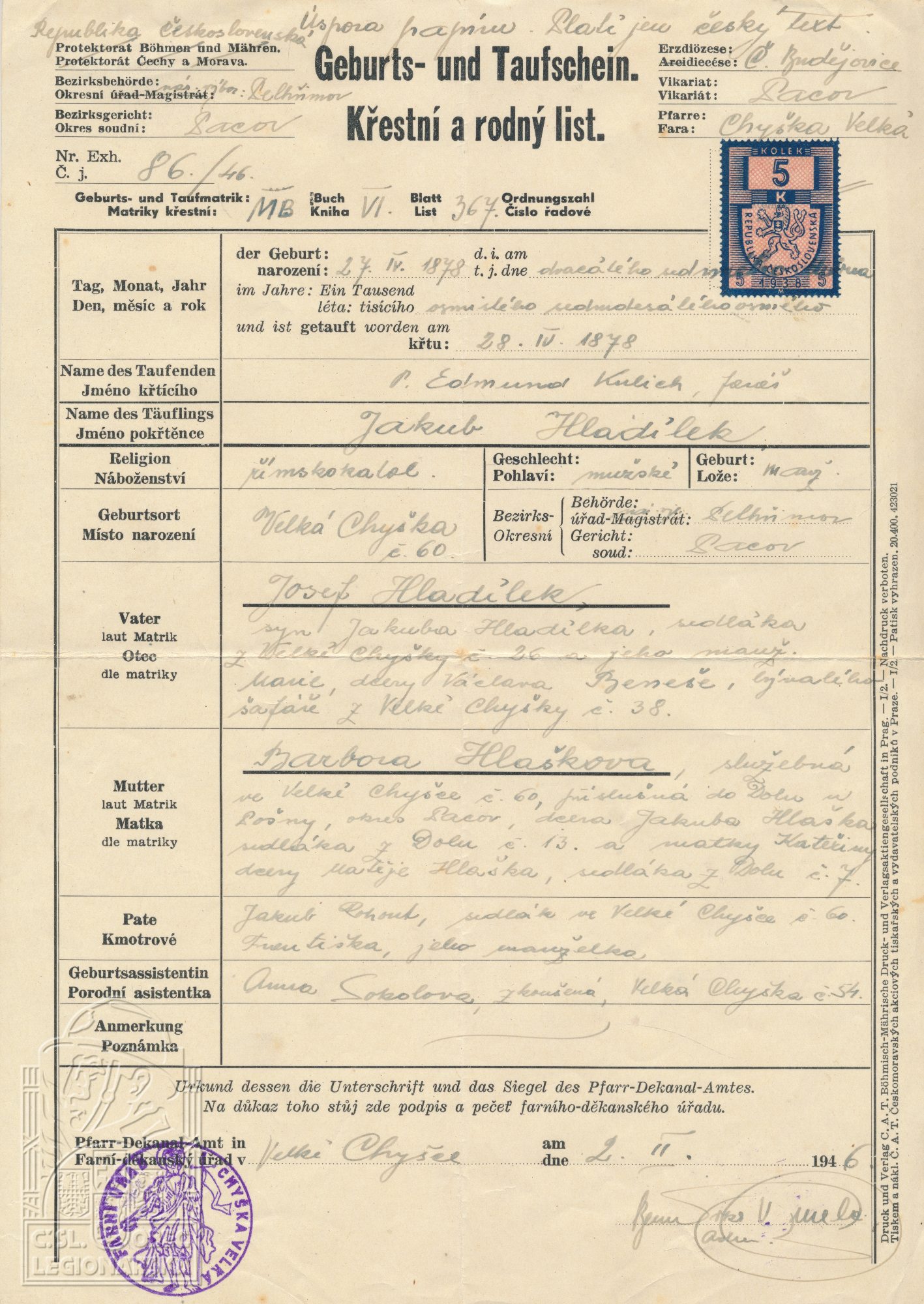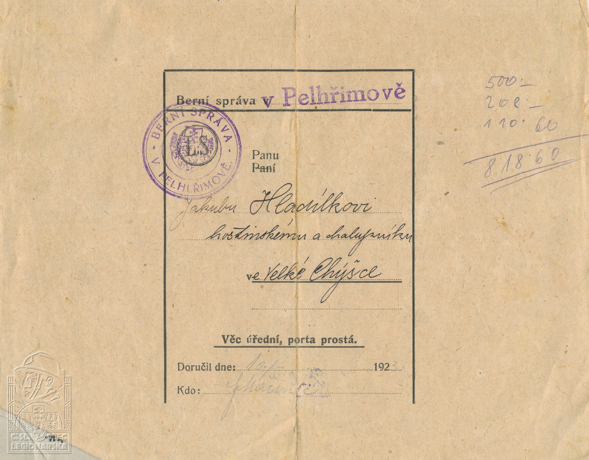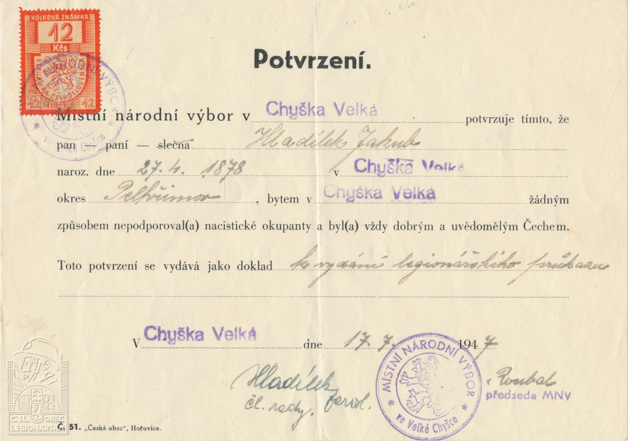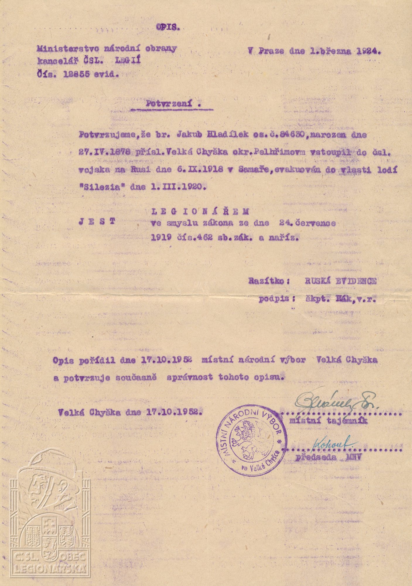 Zdroj informací: legionářský poslužný spis osobní karta legionáře