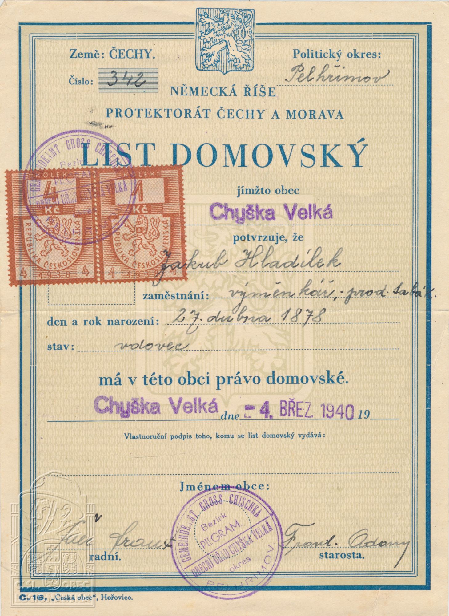 Povolání v letech 1918 - 1938:hostinský, truhlář