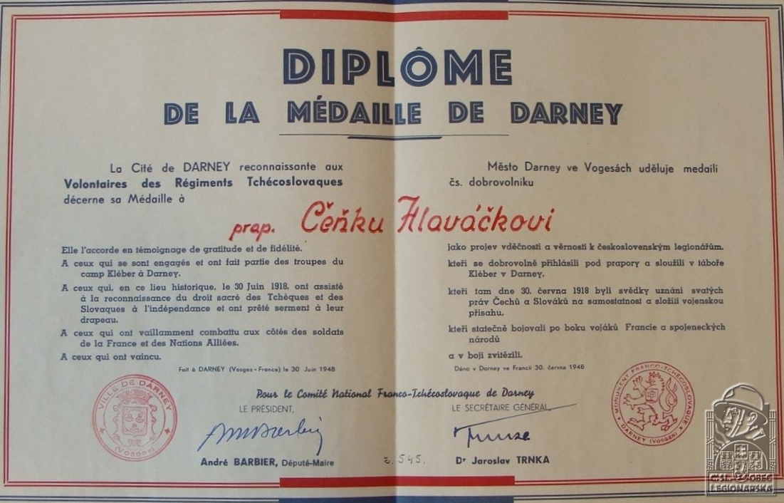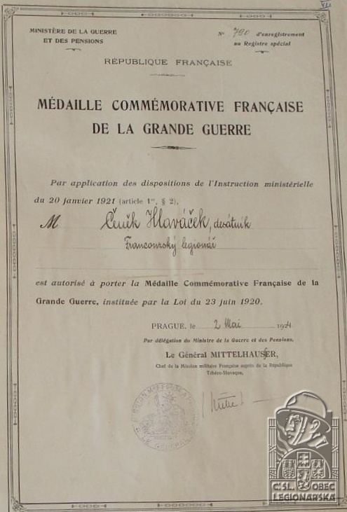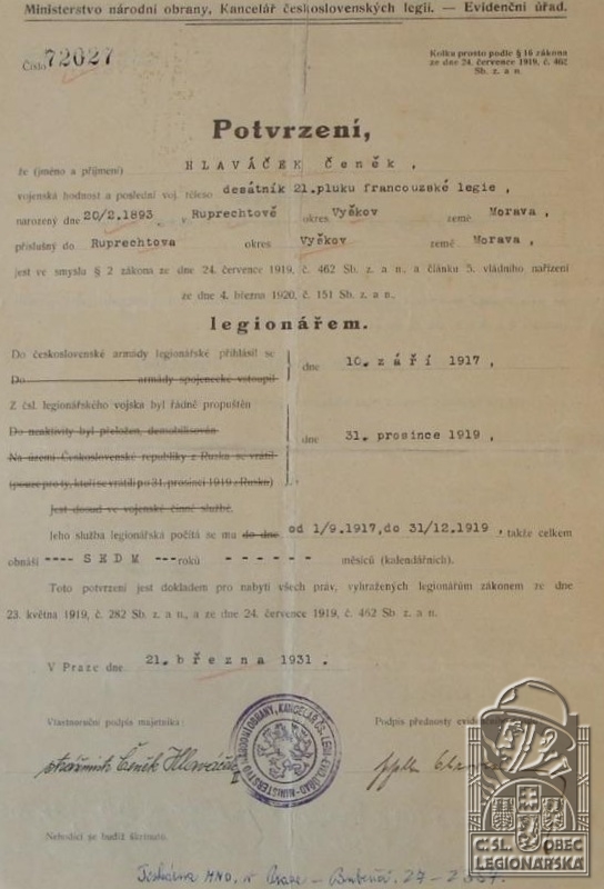 Poznámka:služba v legii od 10.9.1917 do 31.12.1919