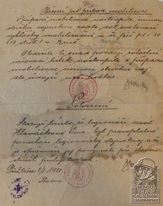 Konec v legiích:29.7.1920 ( Demobilizován )