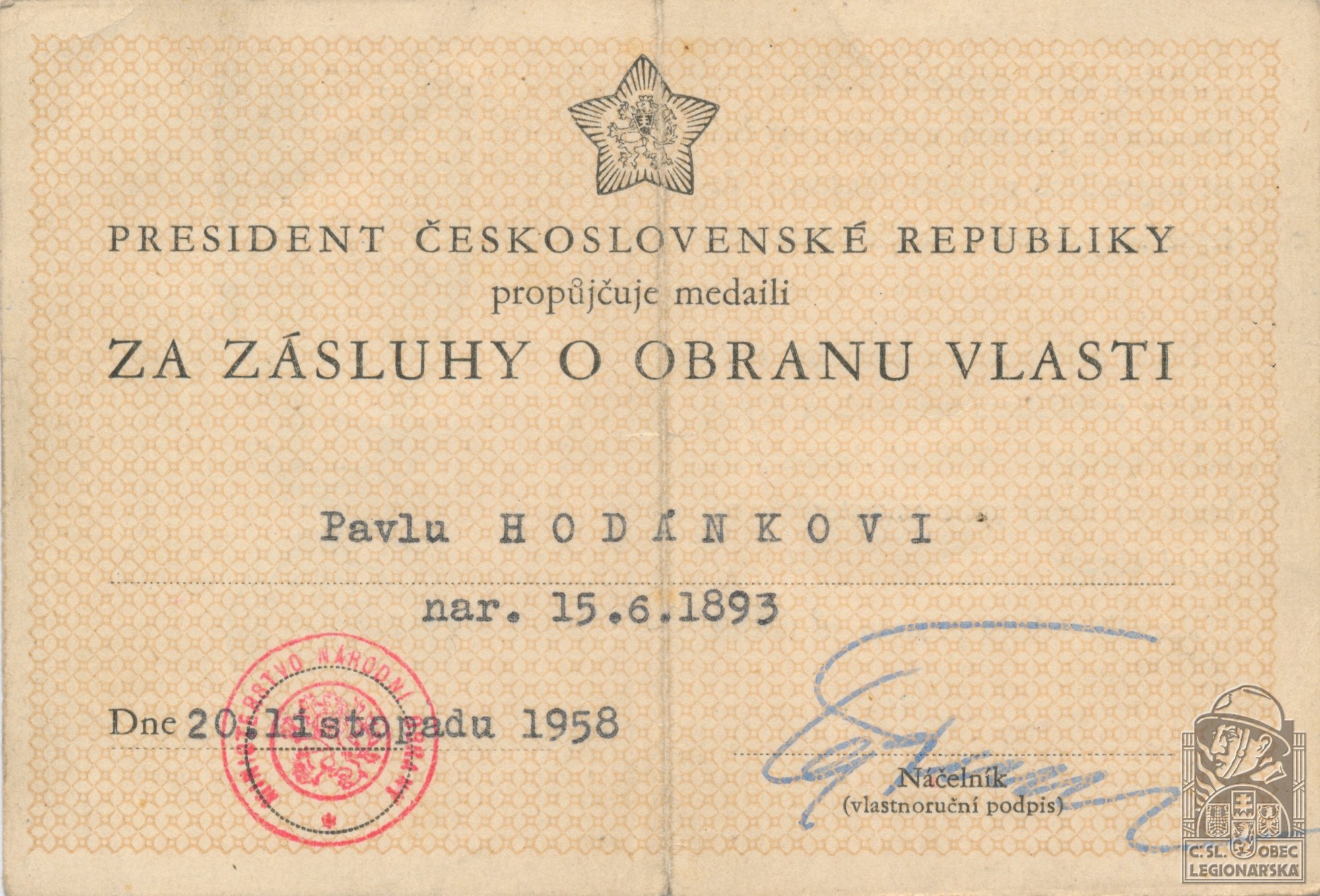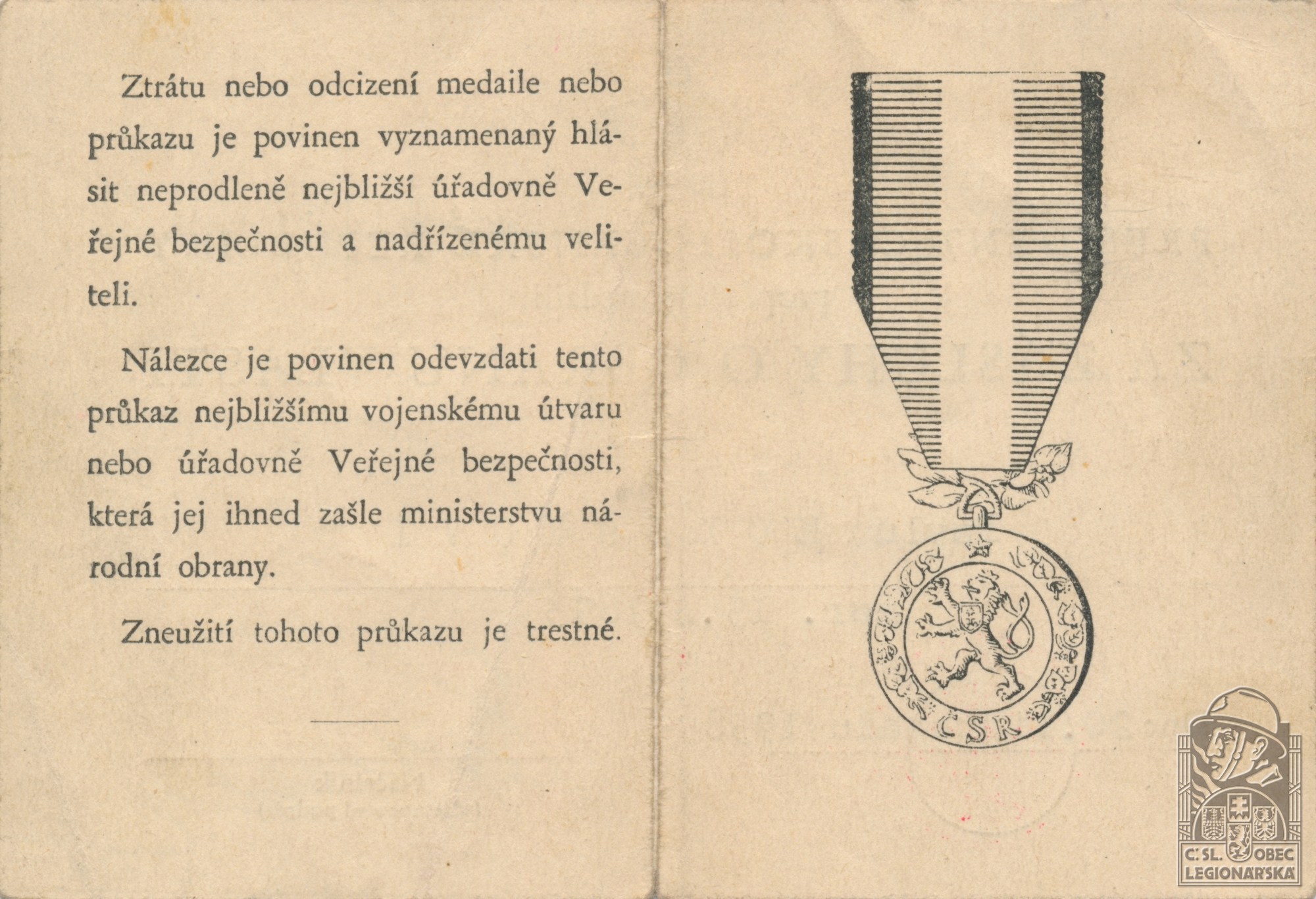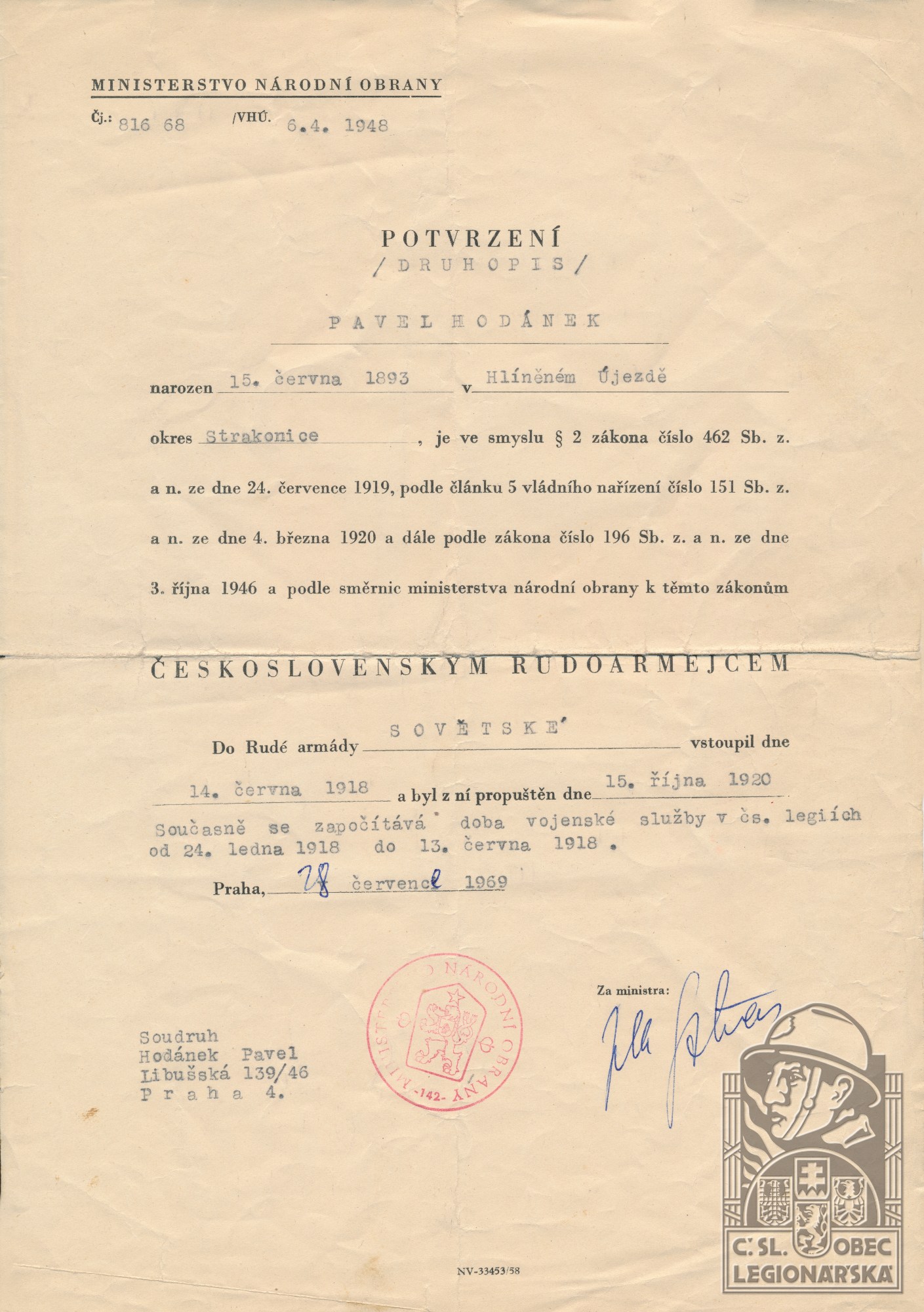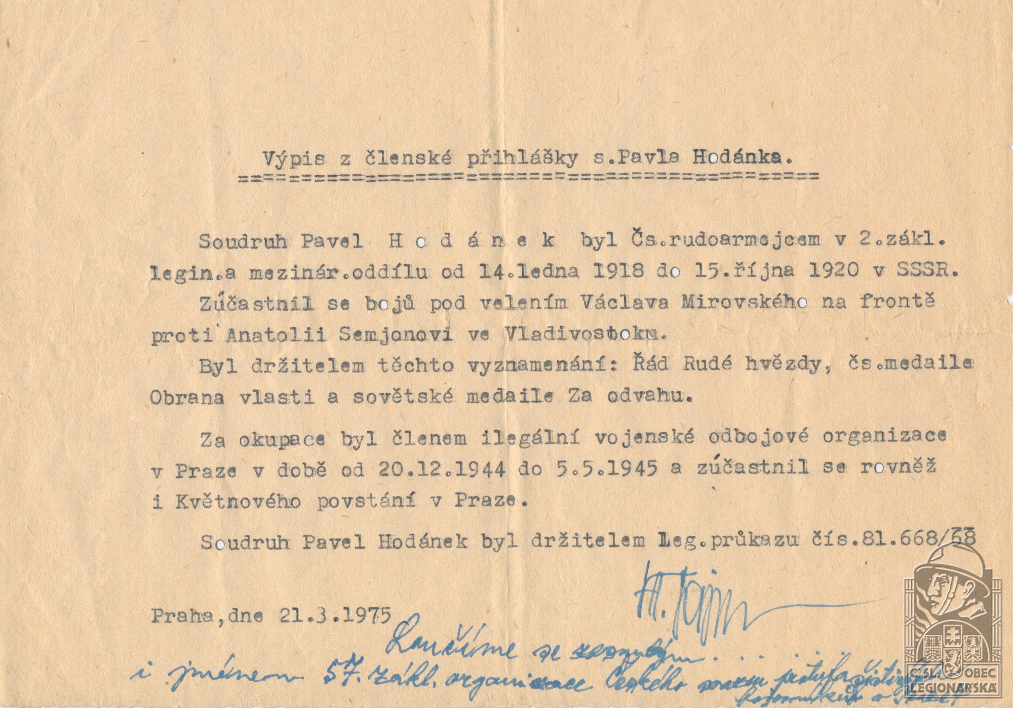 Zdroj informací: legionářský poslužný spis osobní karta legionáře