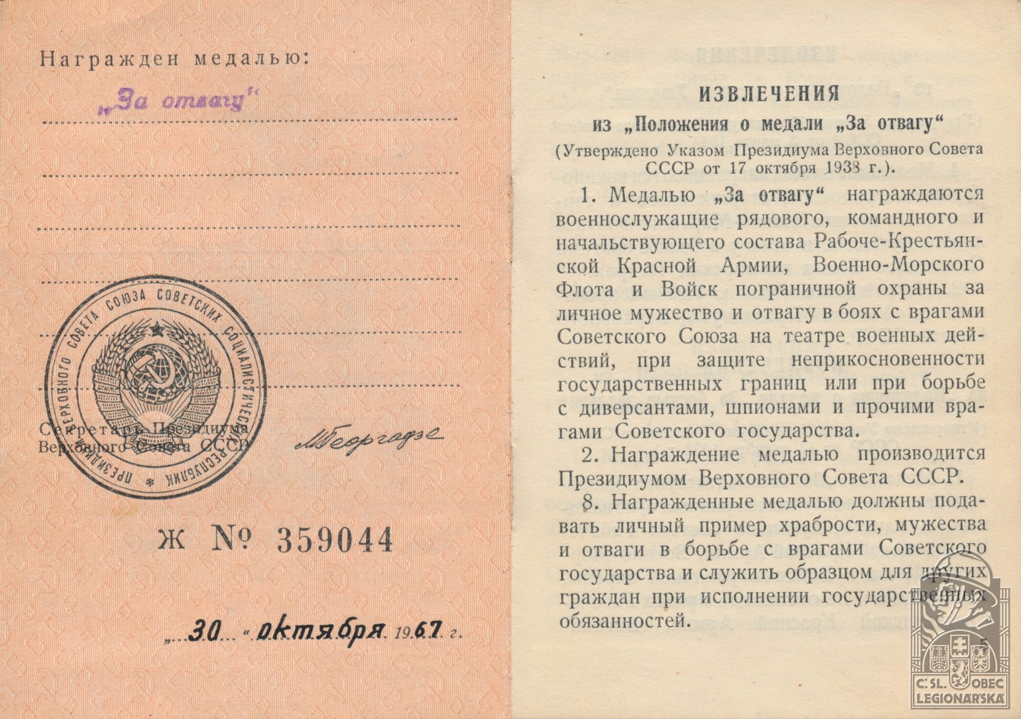 Jednotka v době zařazení:2.zál.pl. ( Čs. legie v Rusku )