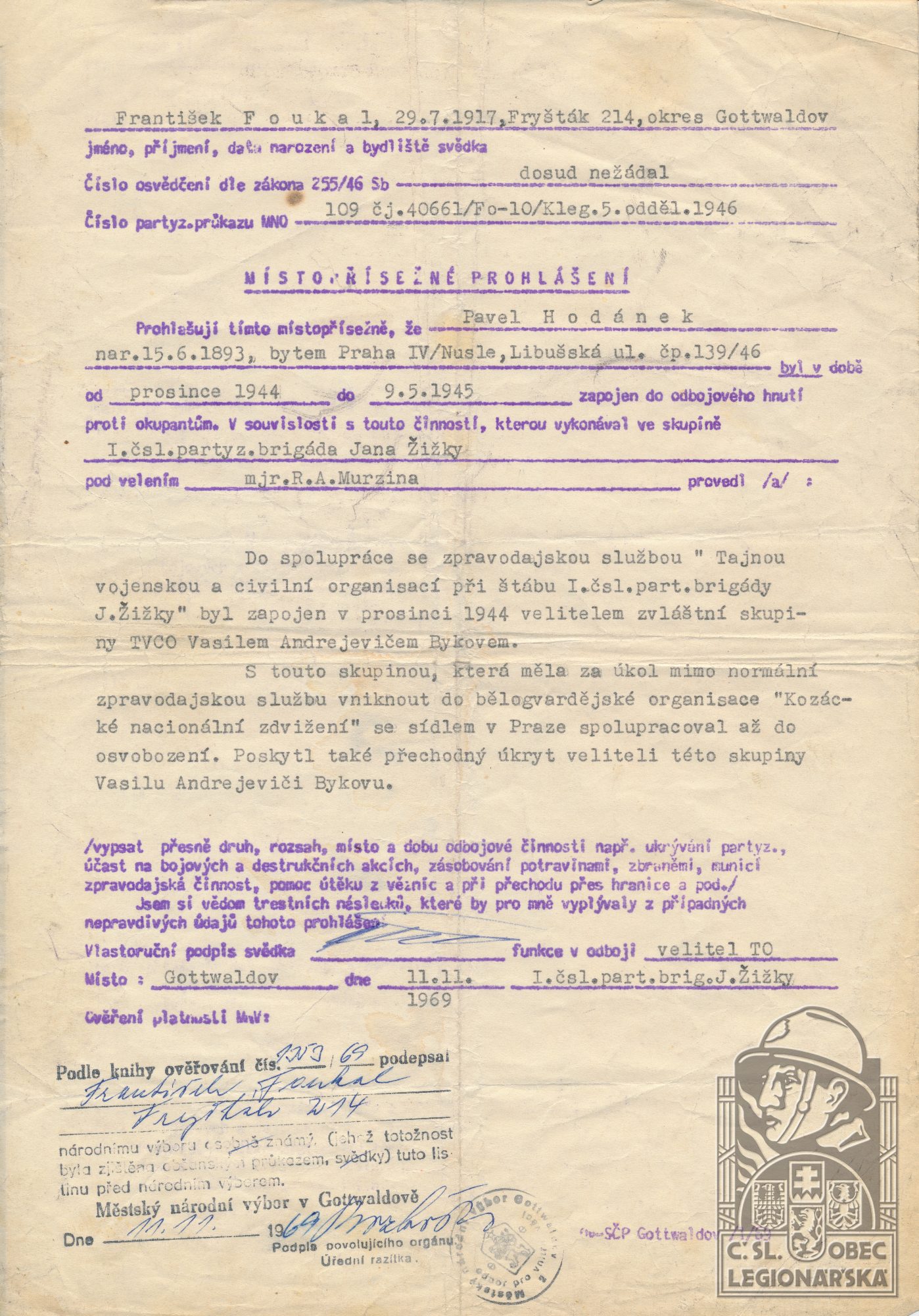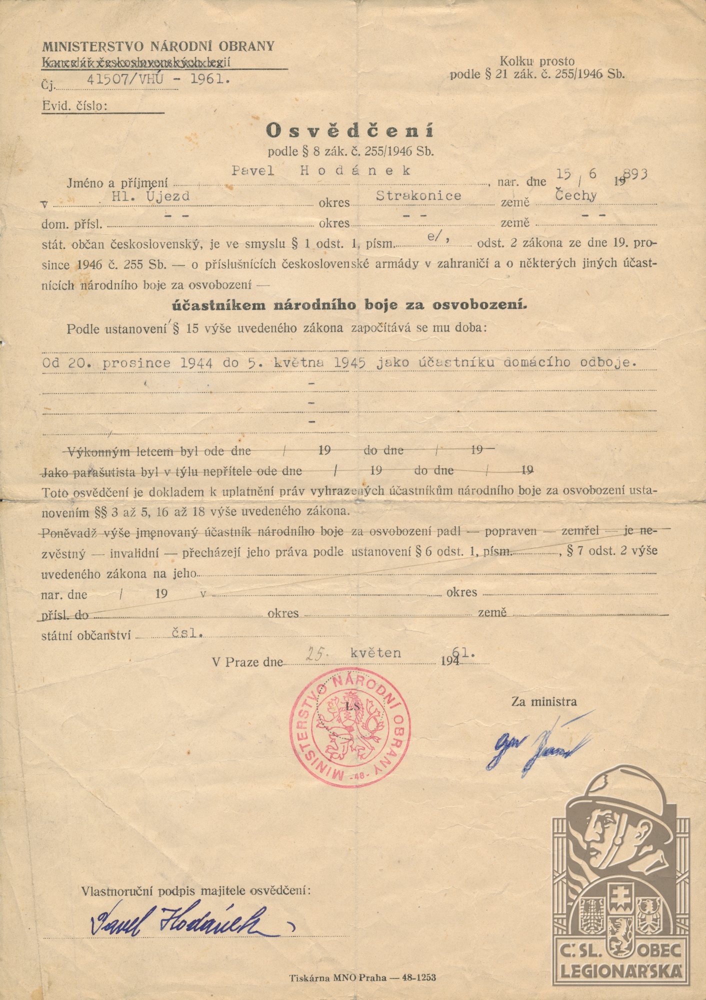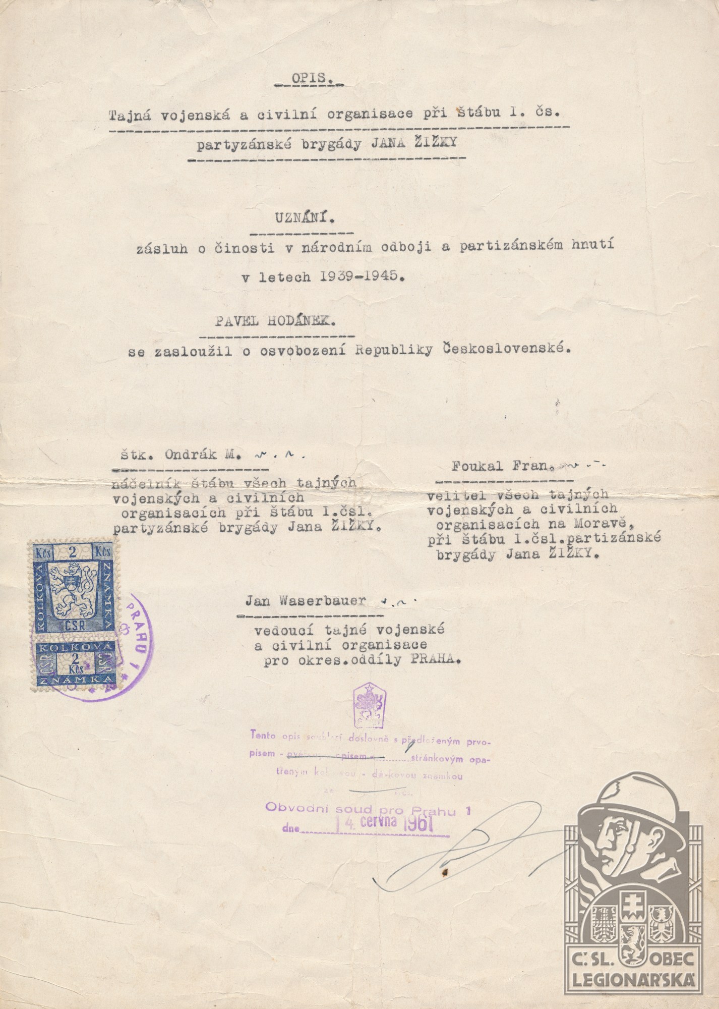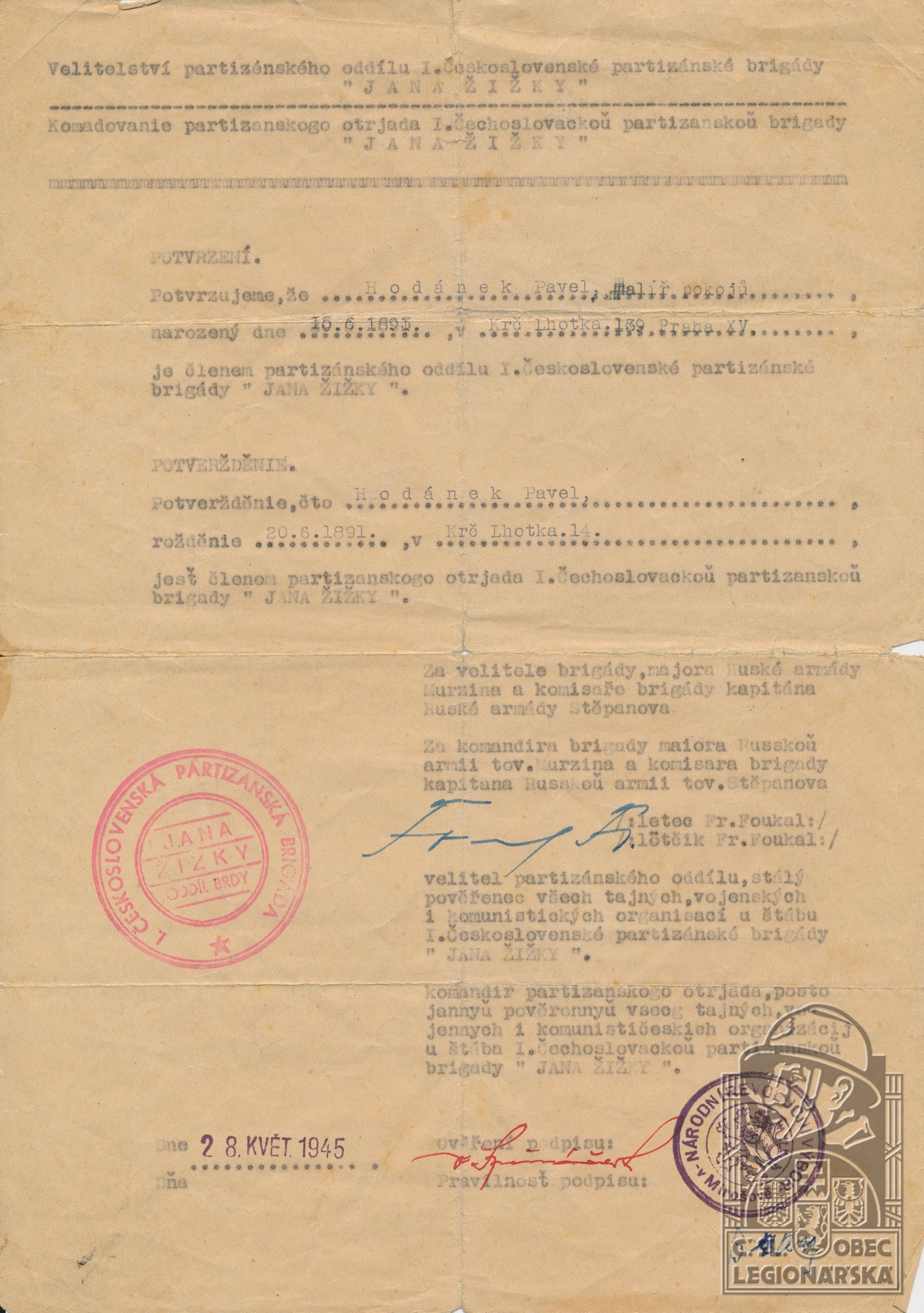 Účast v druhém odboji:20.12.1944-9.5.1945 Brigáda Jana Žižky, Květnové povstání