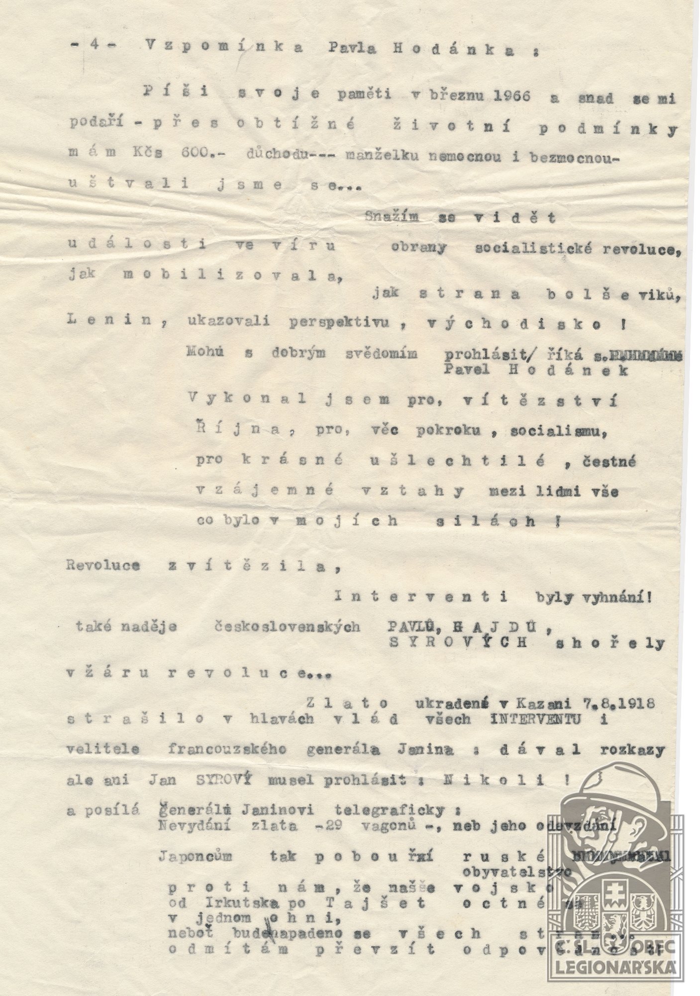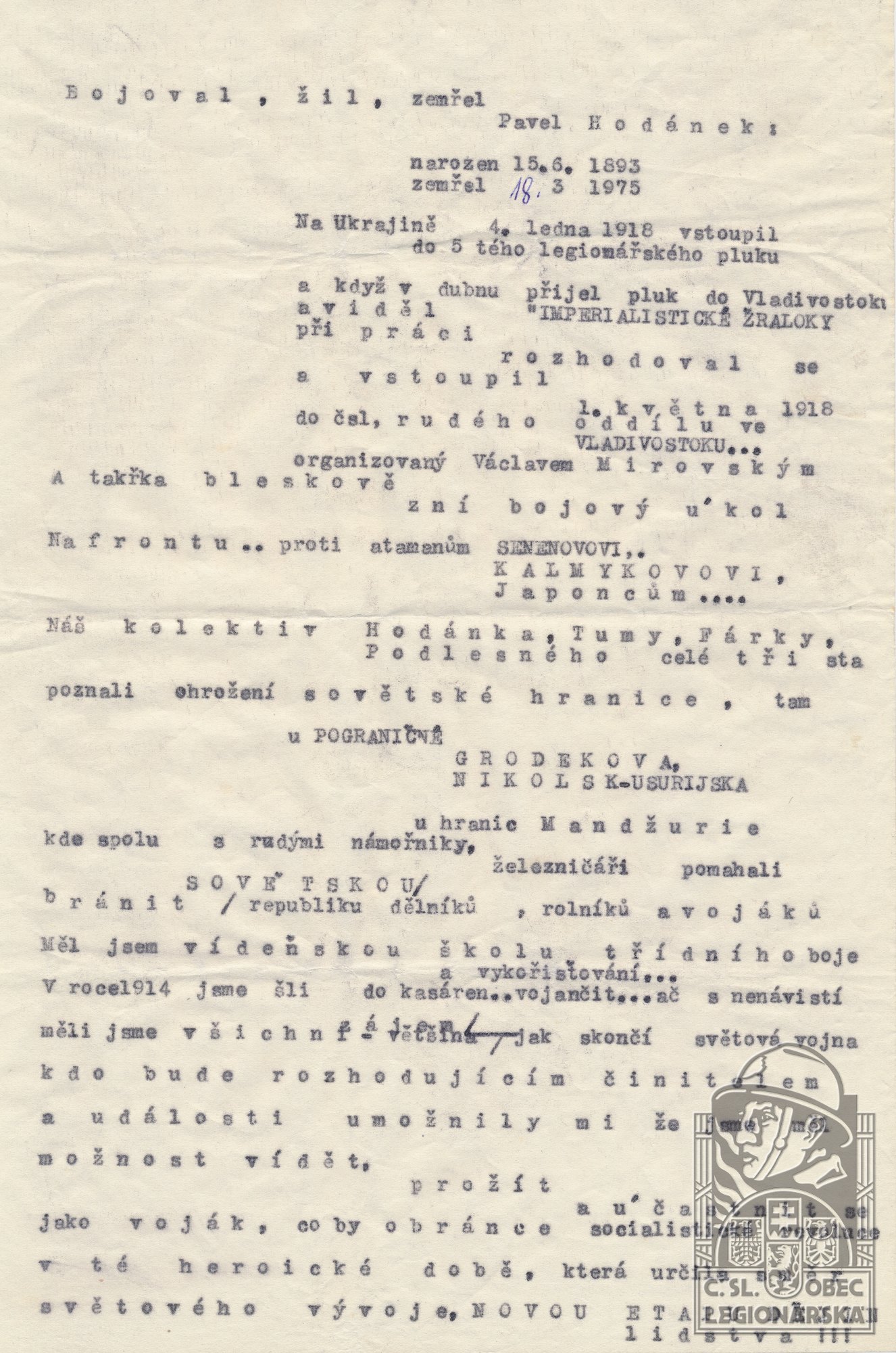 Poslední útvar v legiích:1.prac.rota posádka Vladivostok
