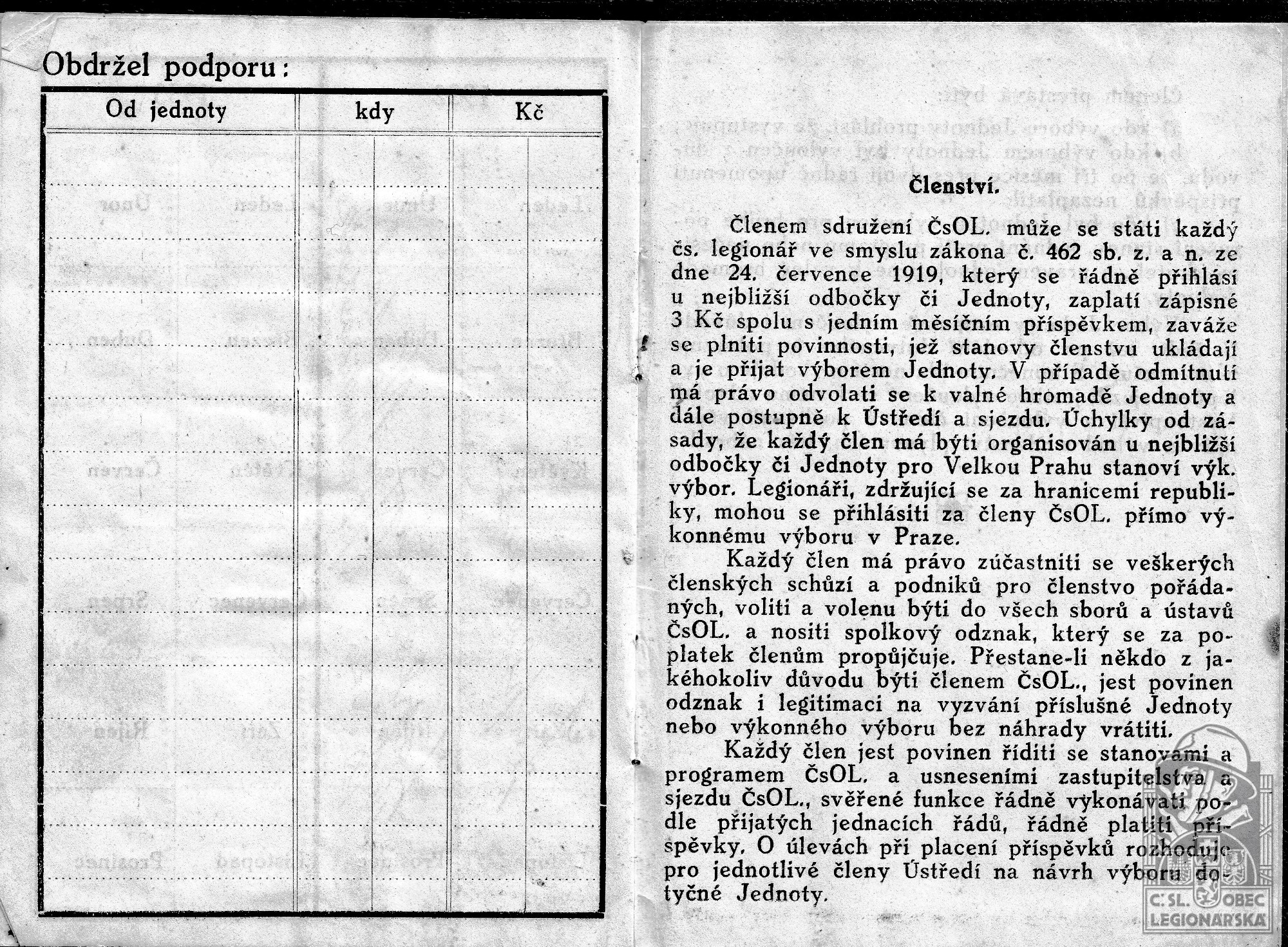 dokumenty spojené s osobou legionáře