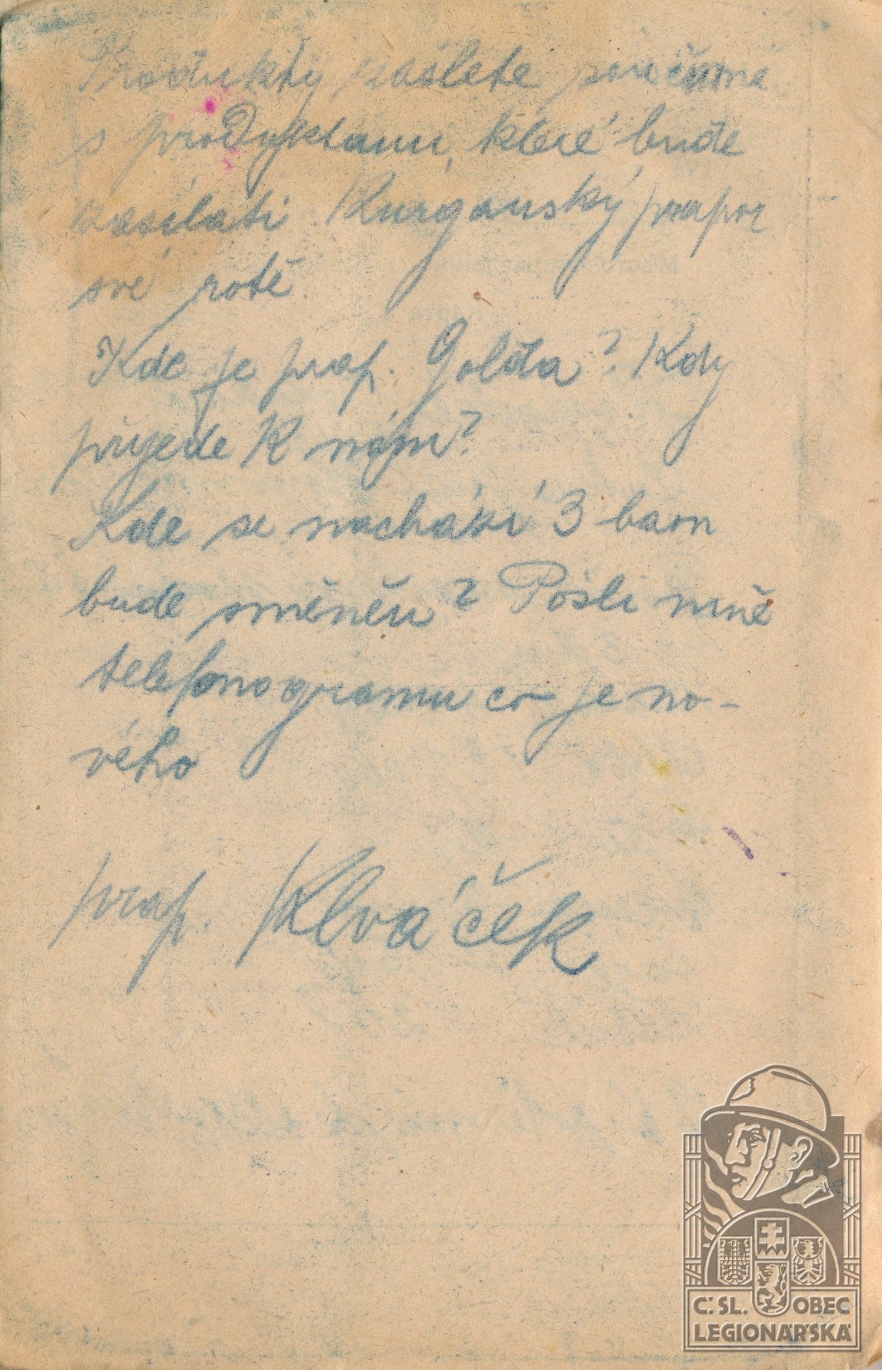 Poslední útvar v legiích:spoj.odd.štáb čsl.vojsk