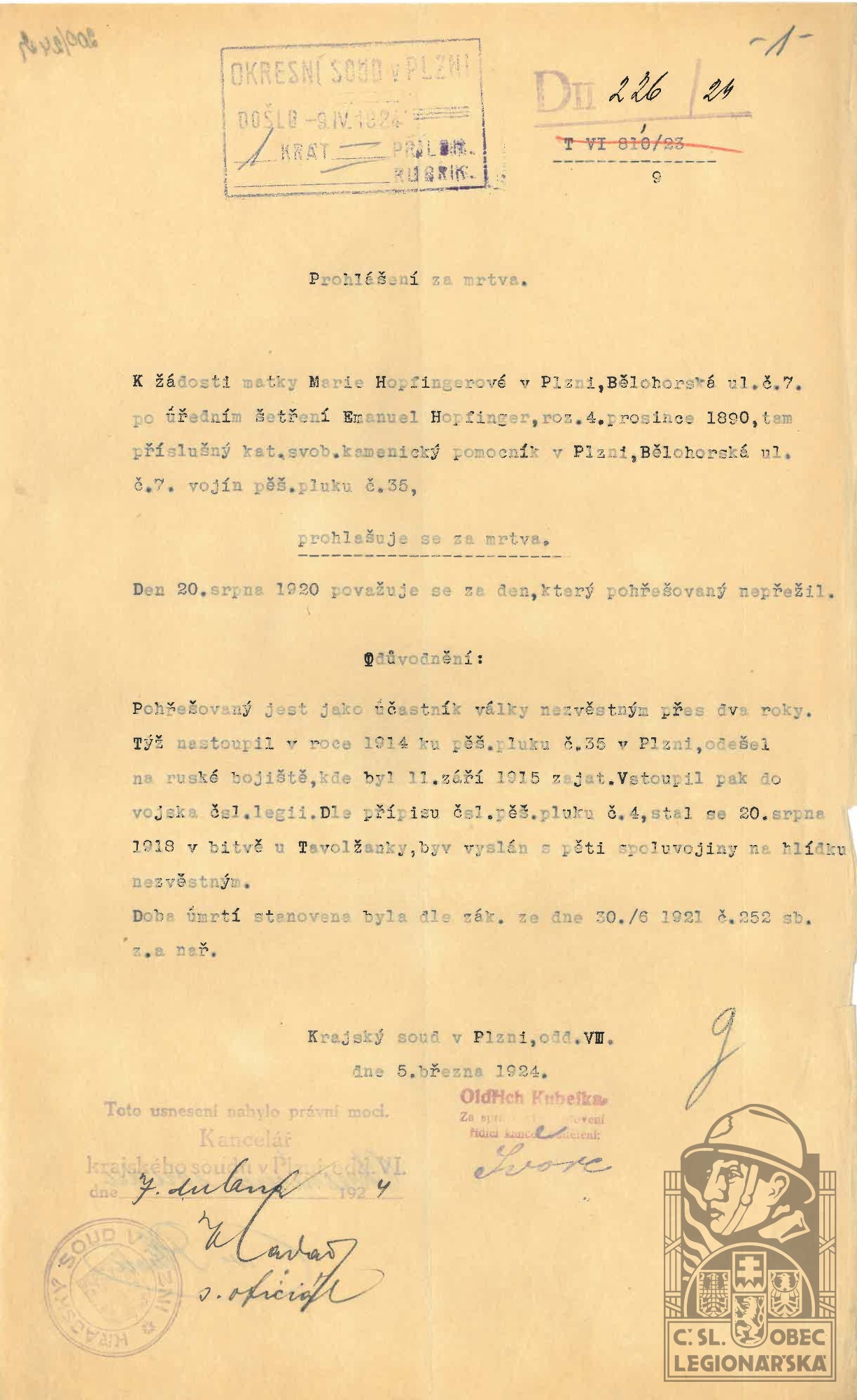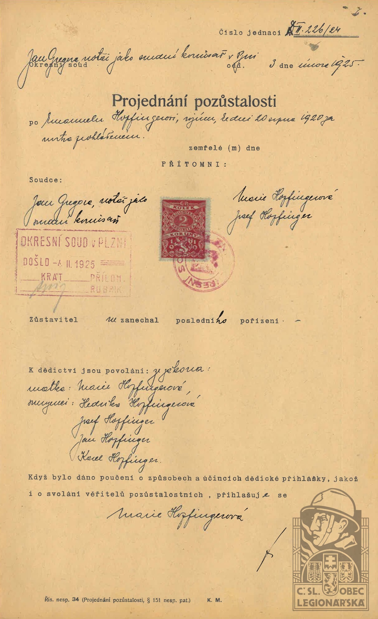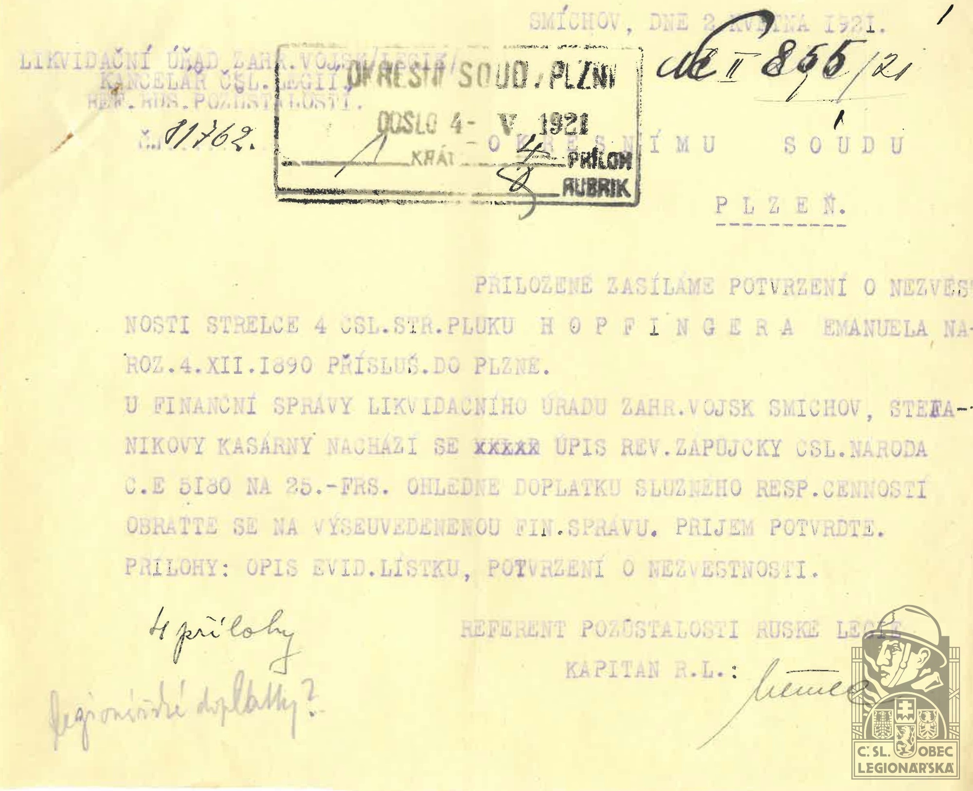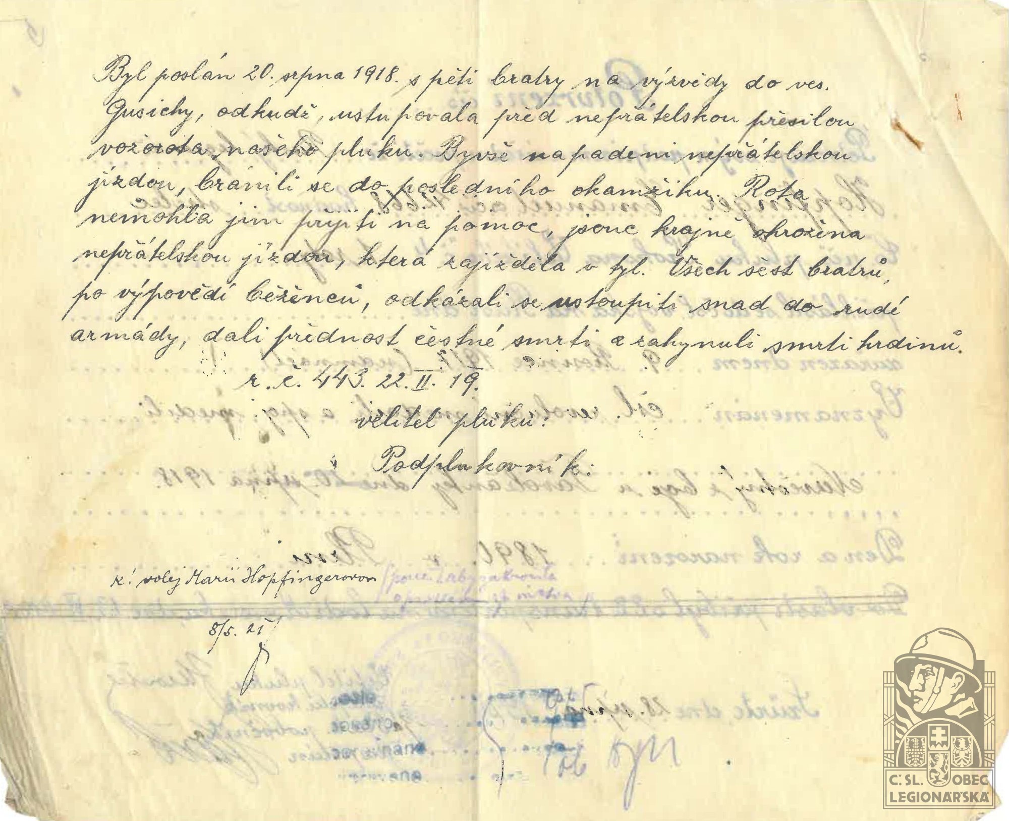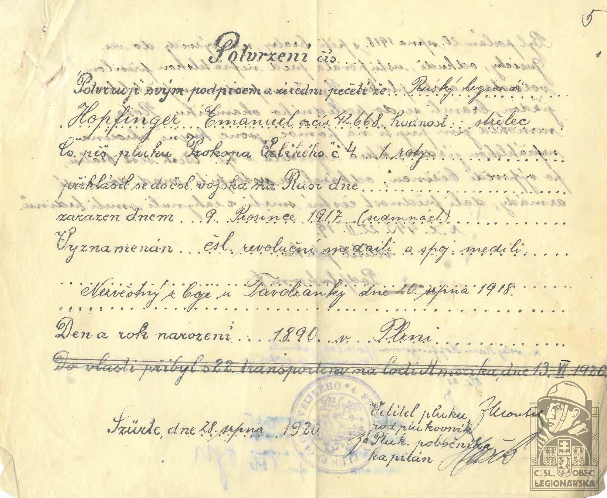 dokumenty spojené s osobou legionáře