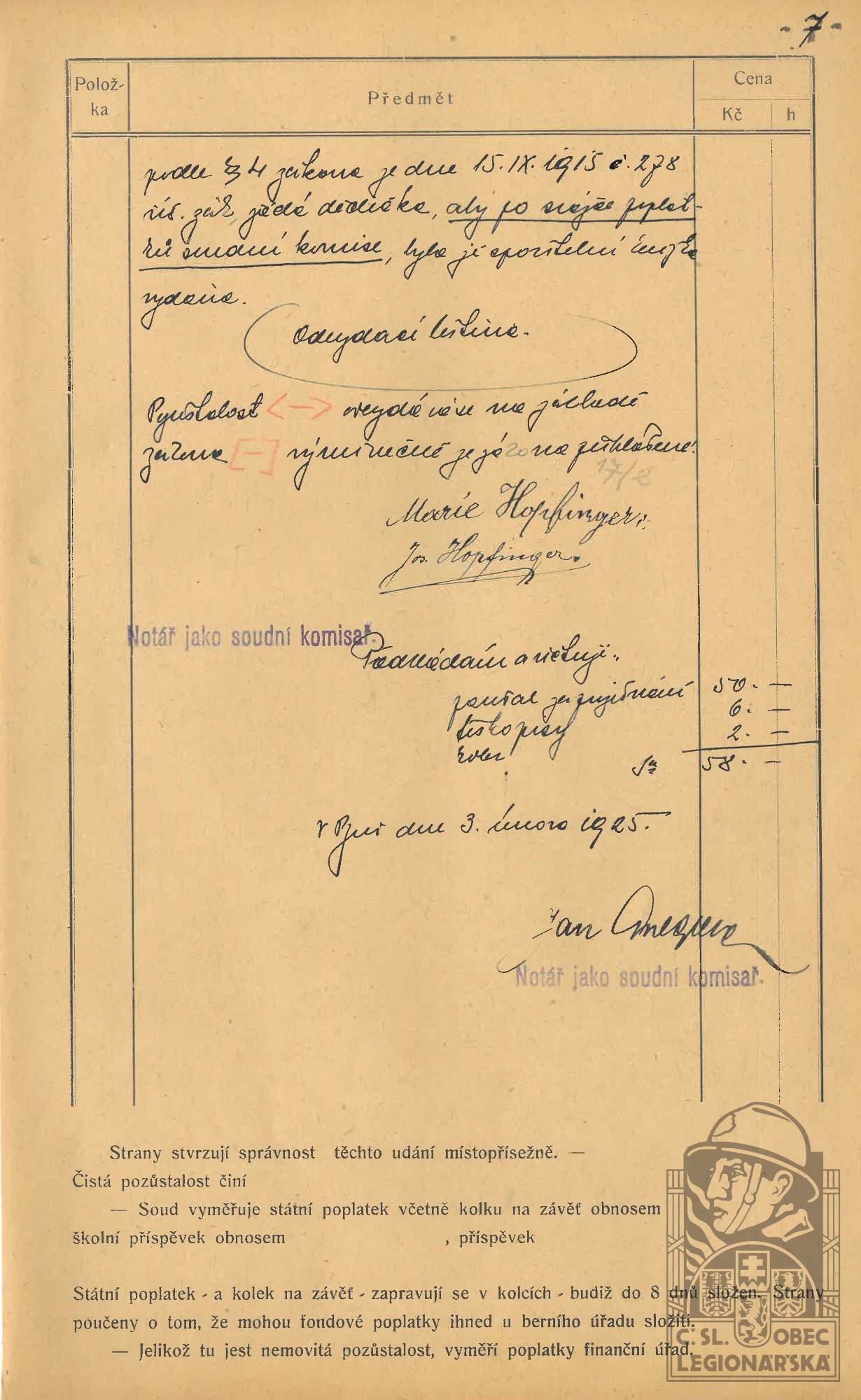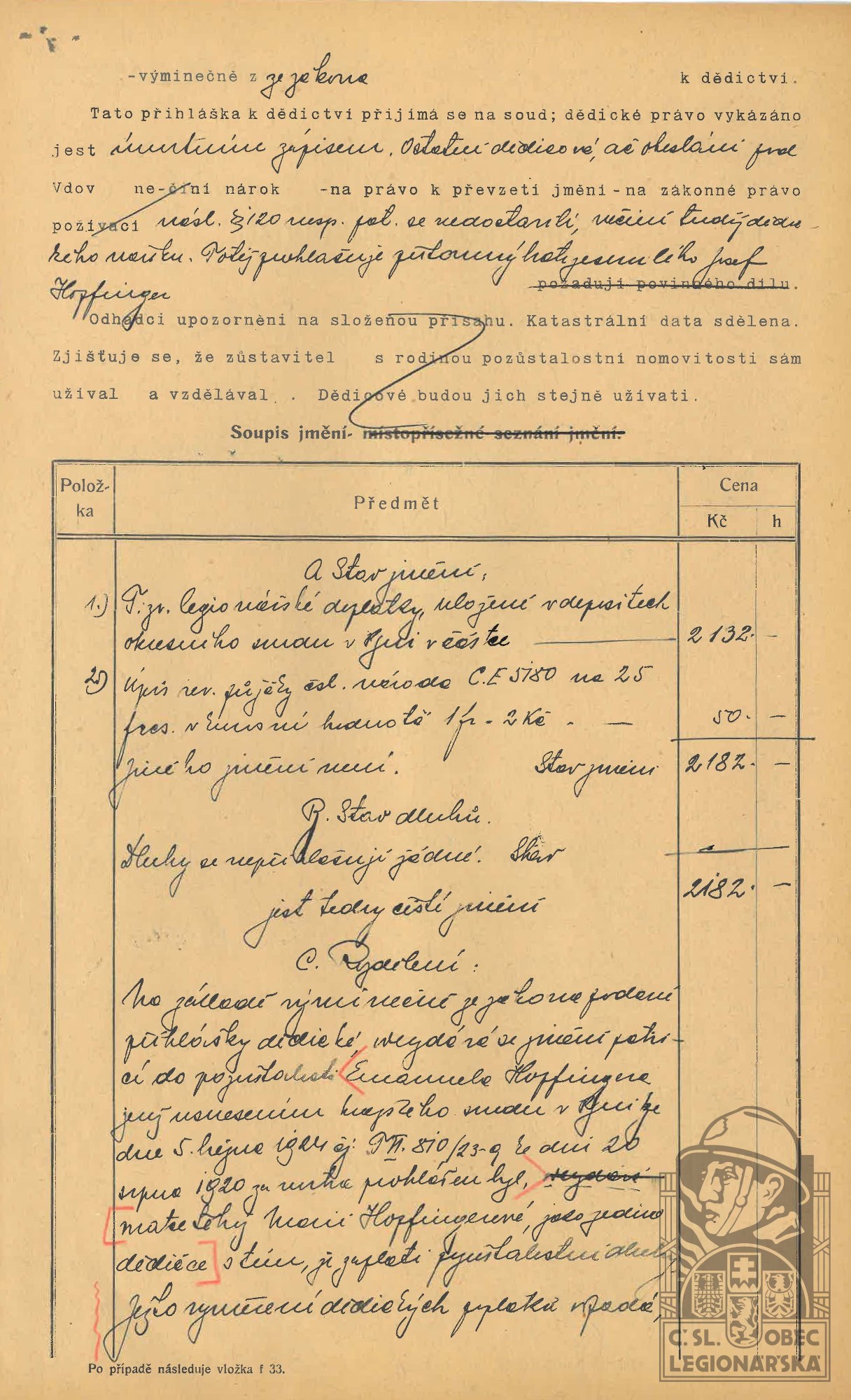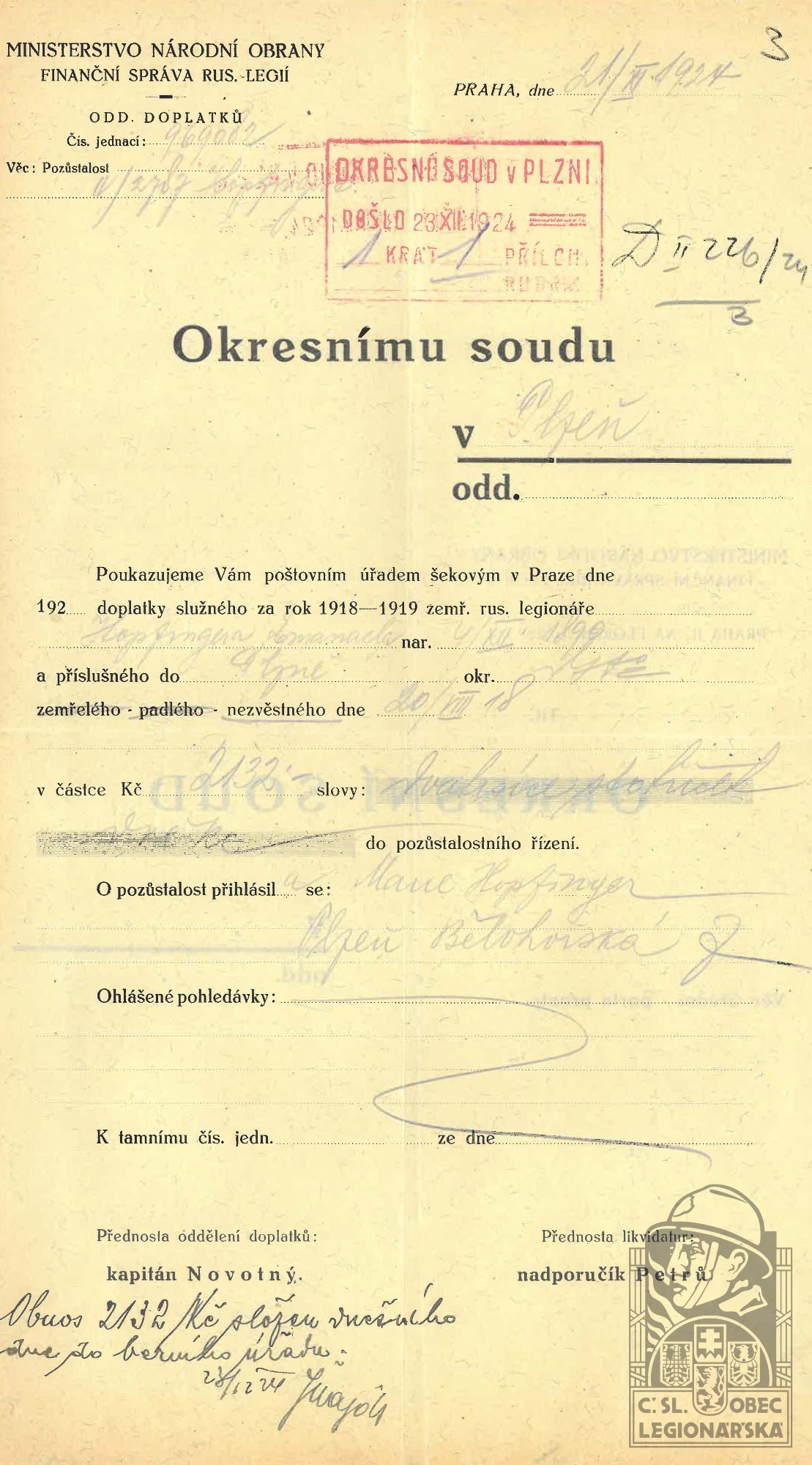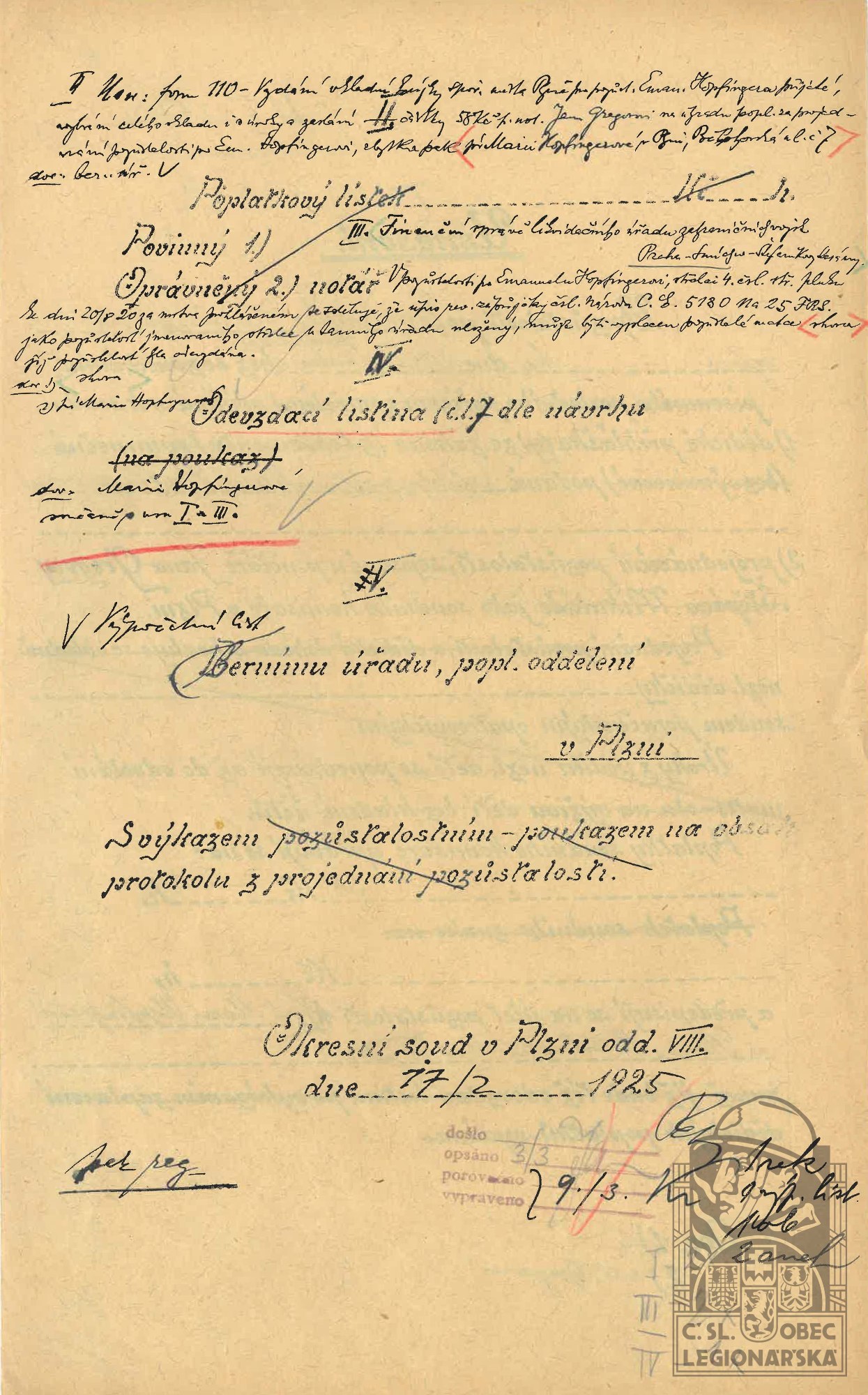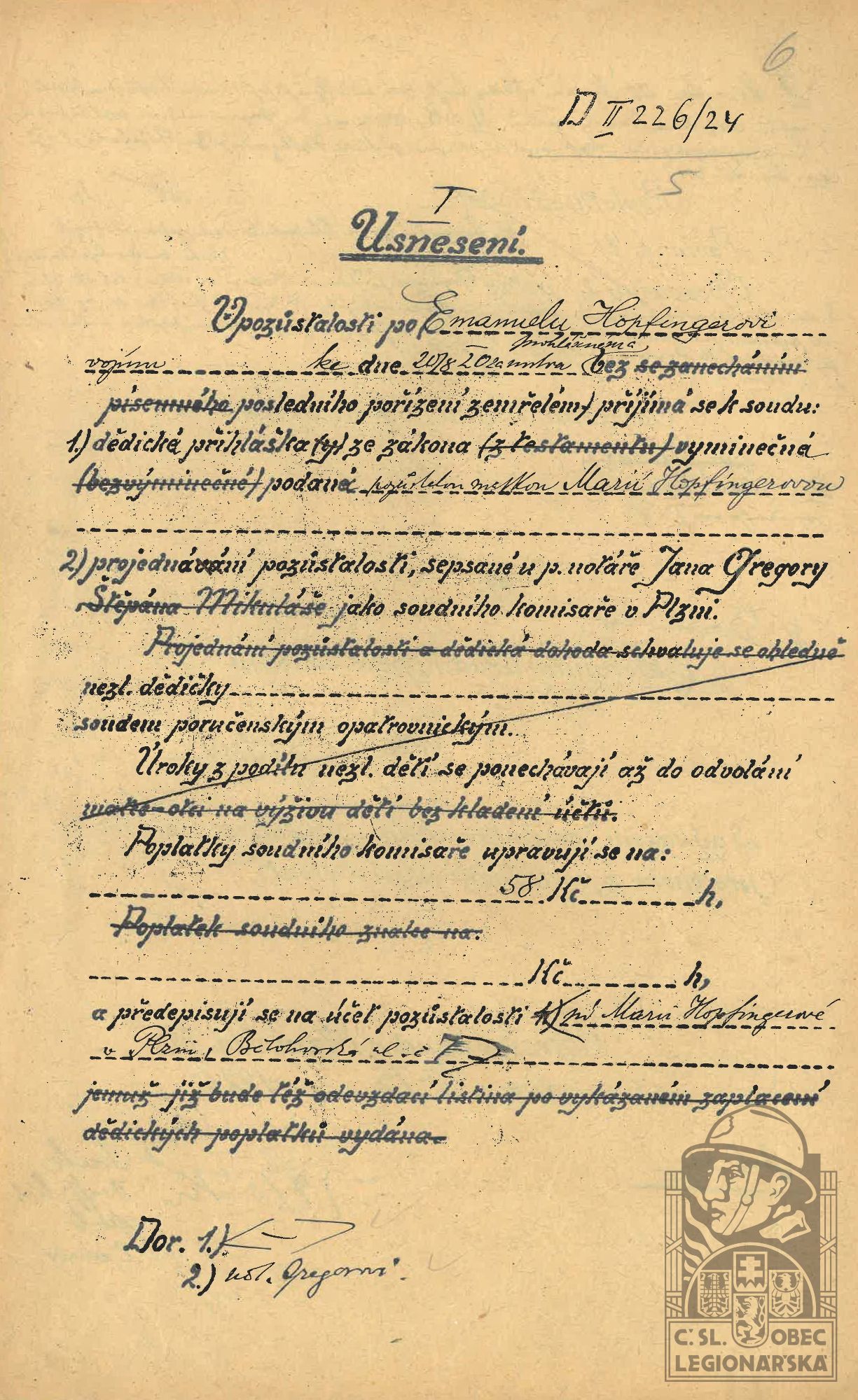 dokumenty spojené s osobou legionáře