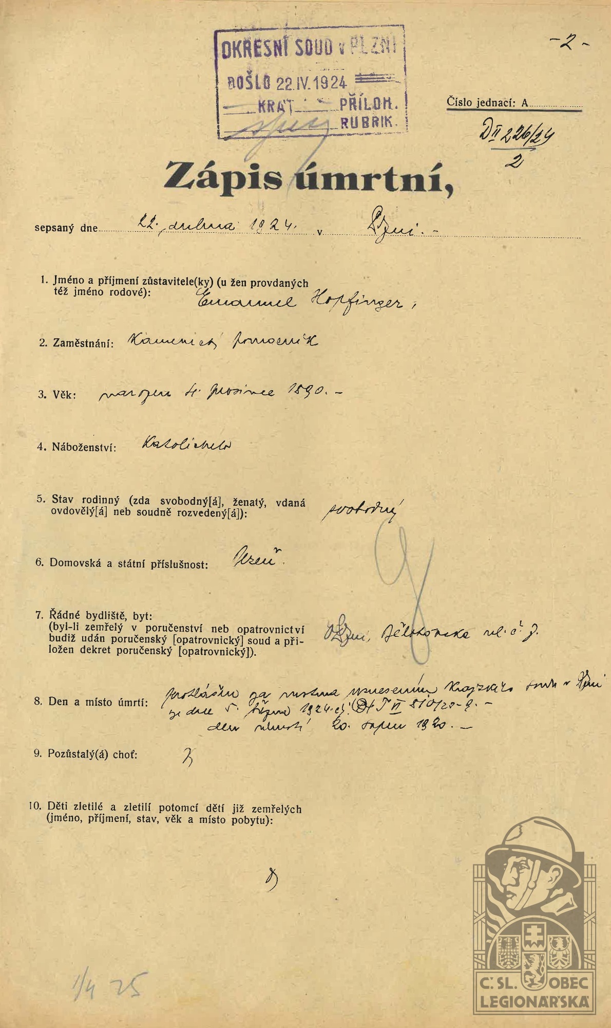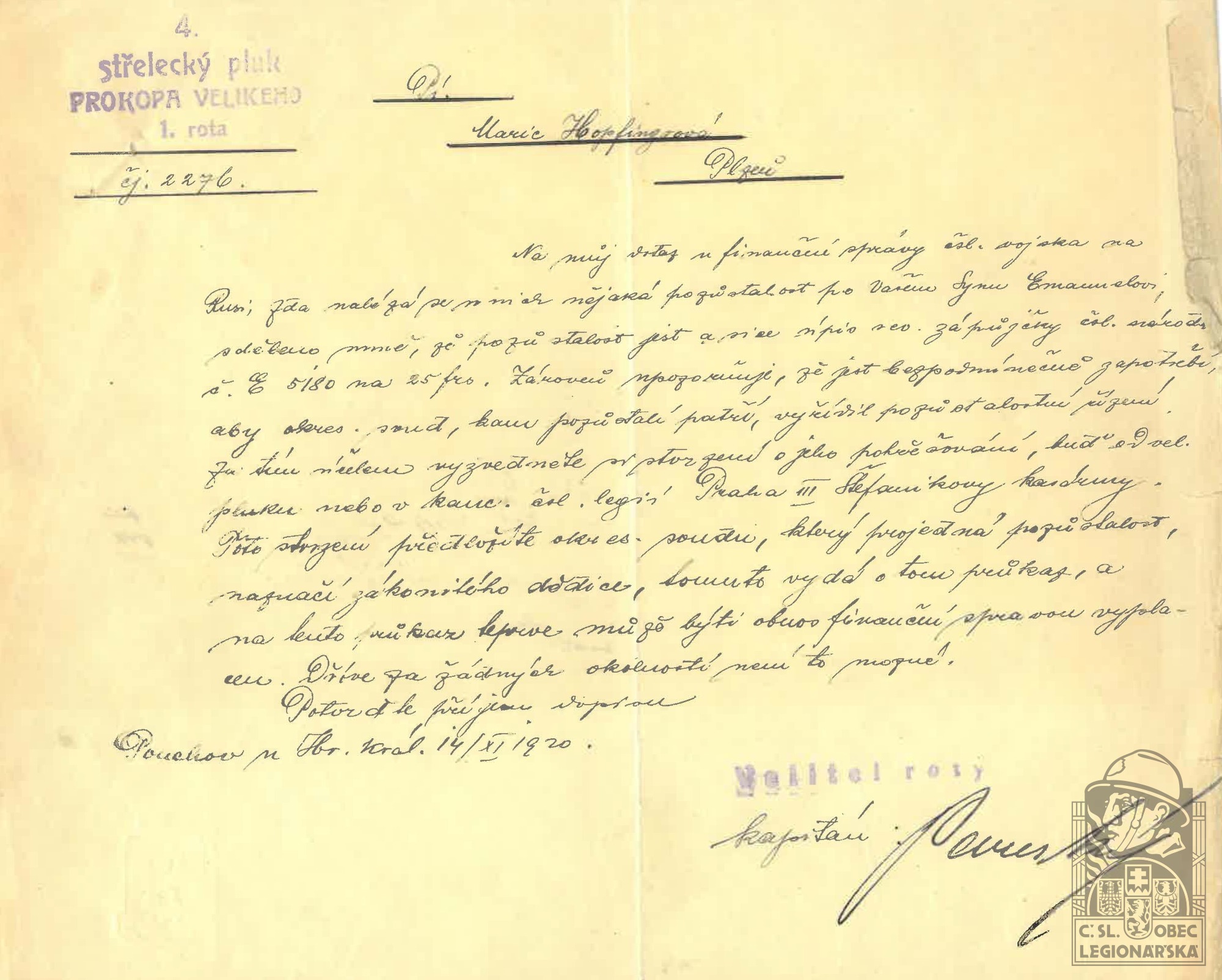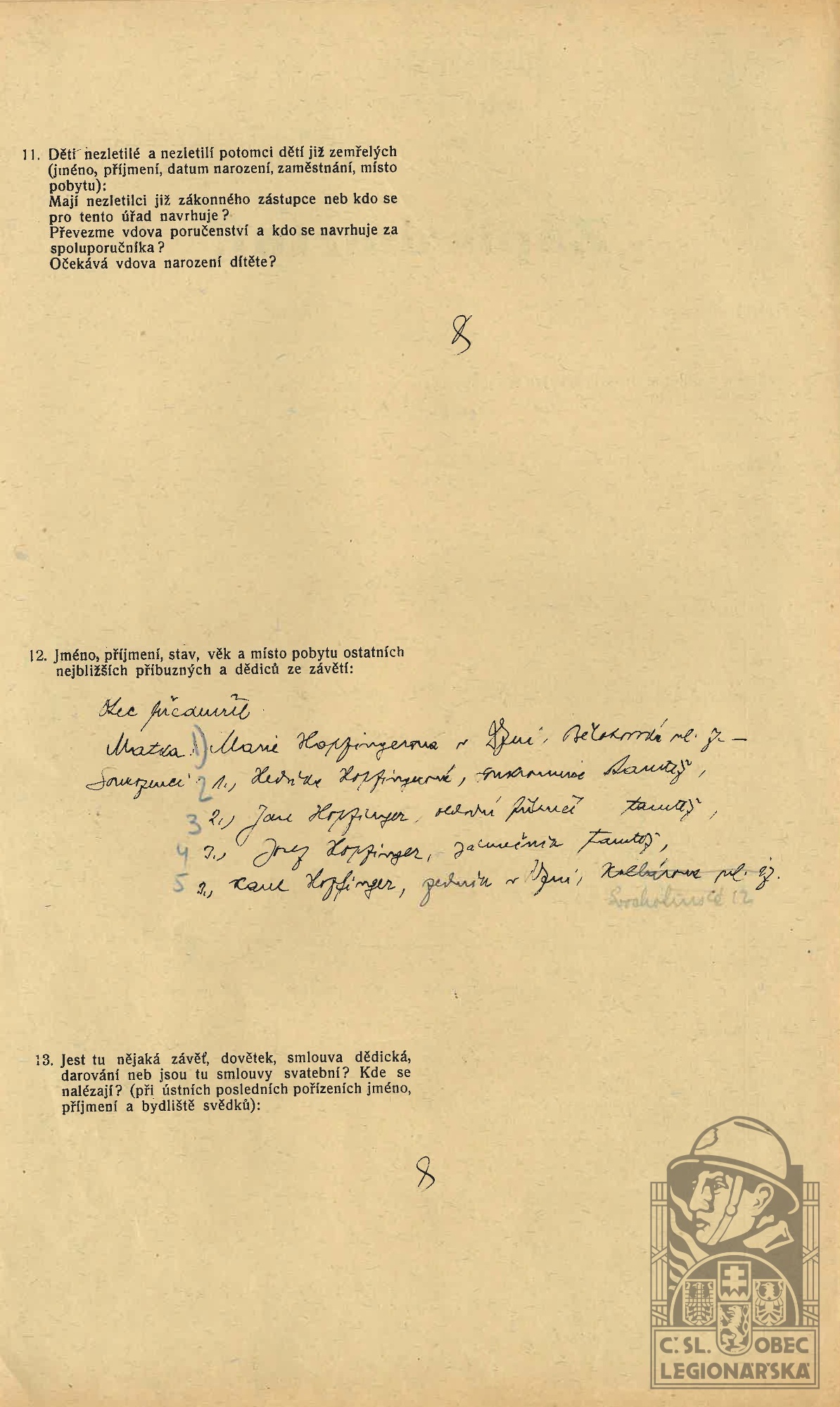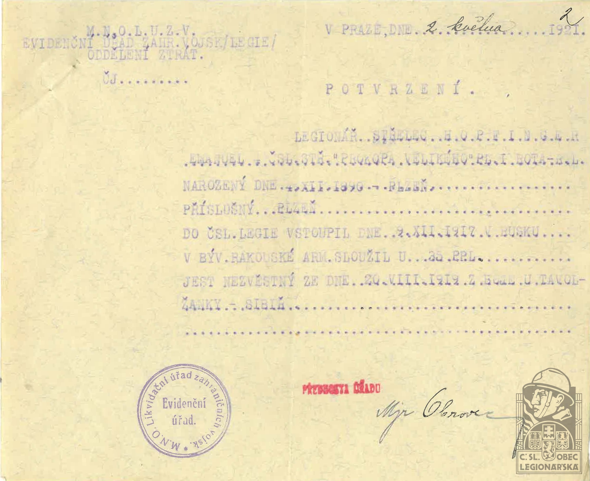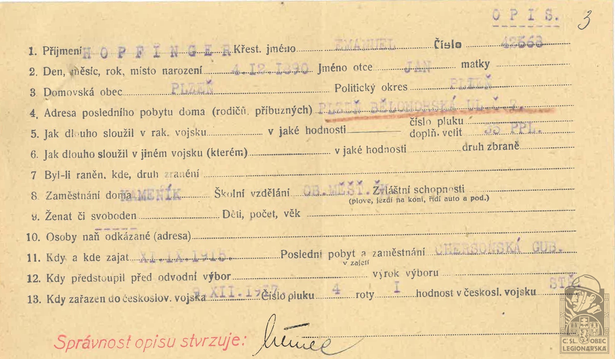 Zdroj informací: legionářský poslužný spis