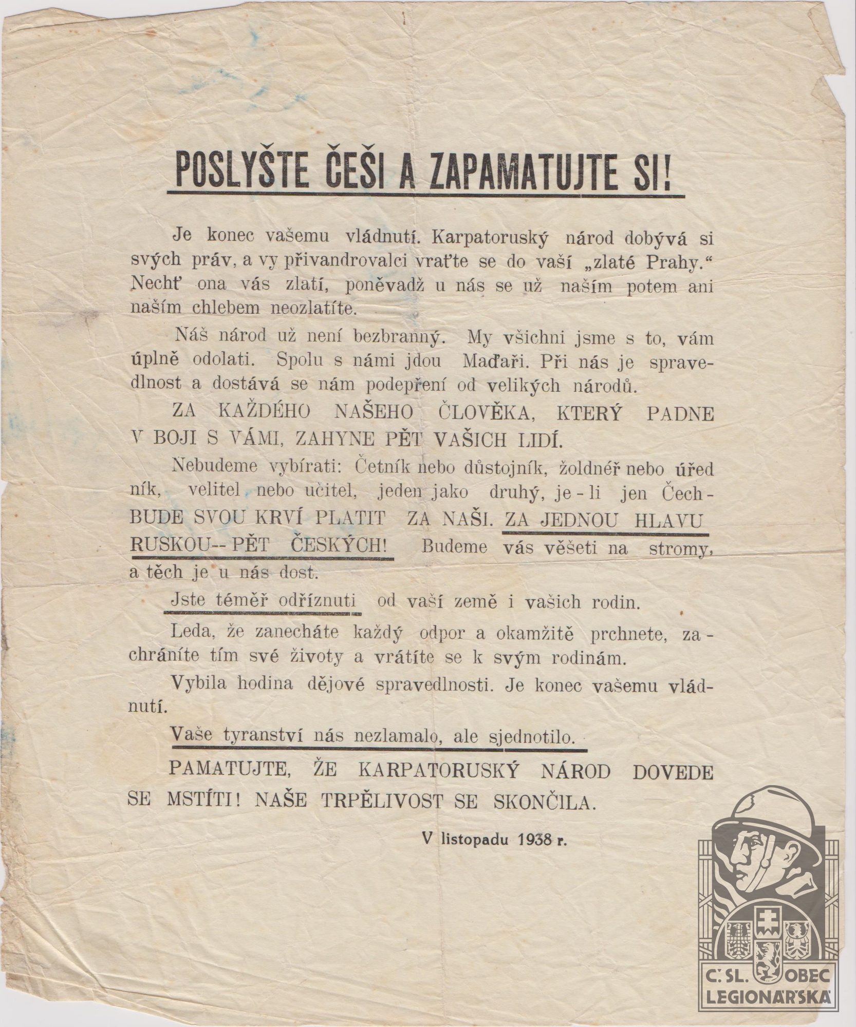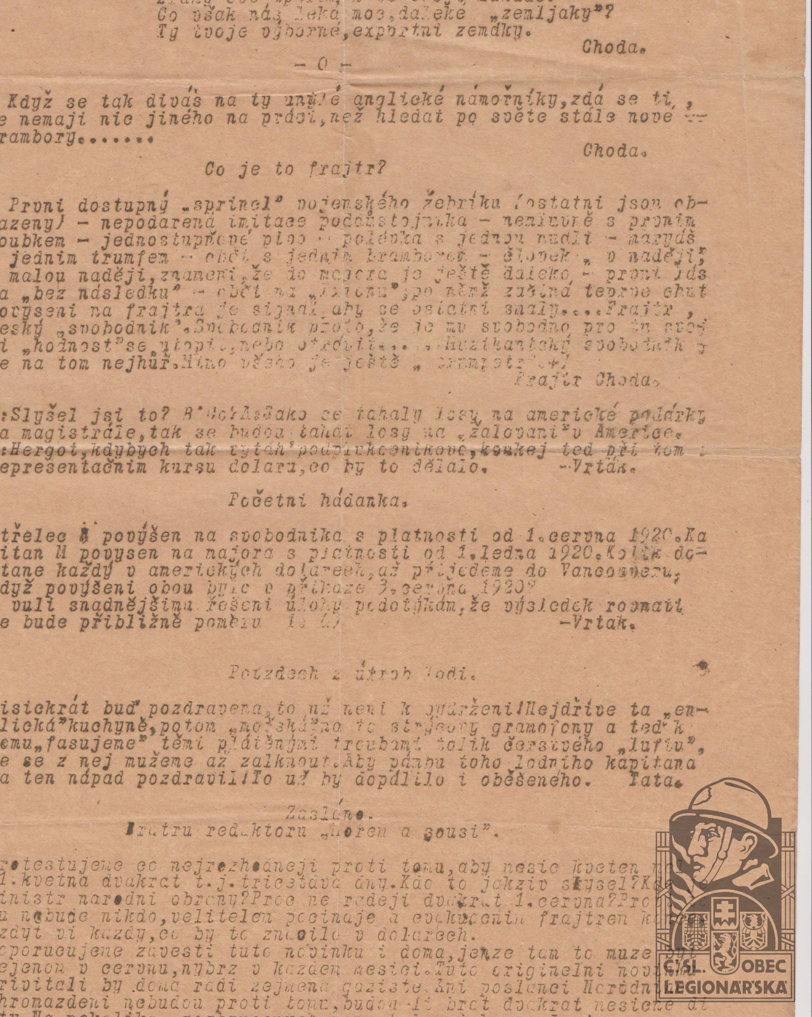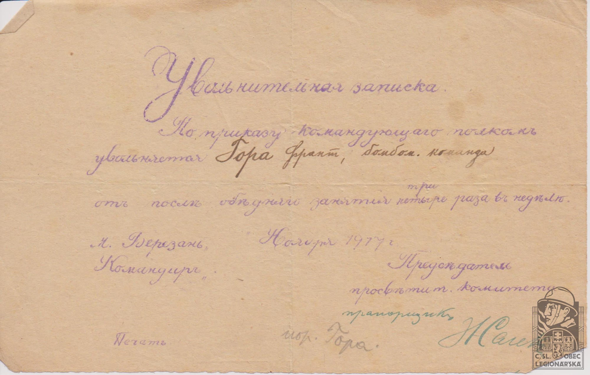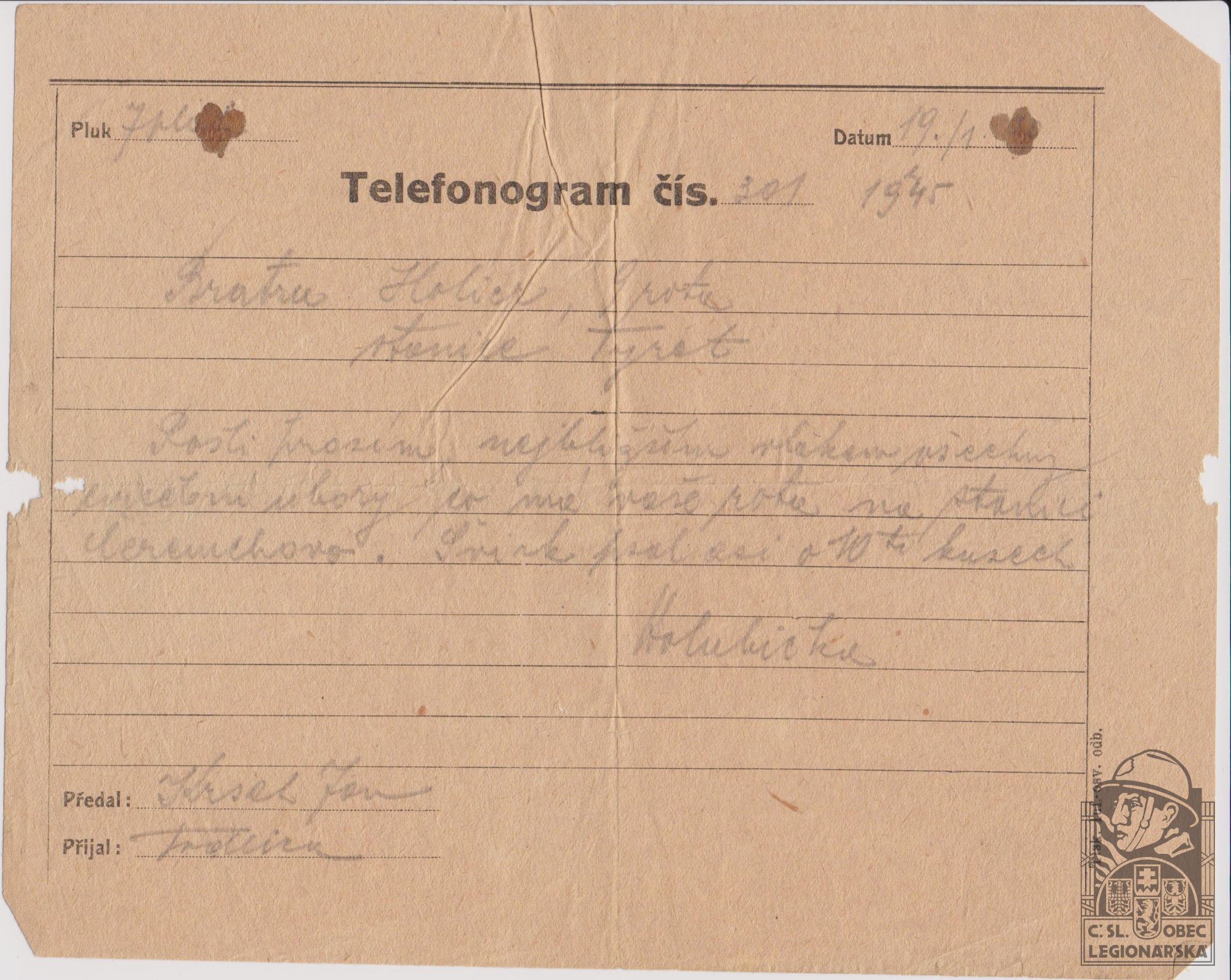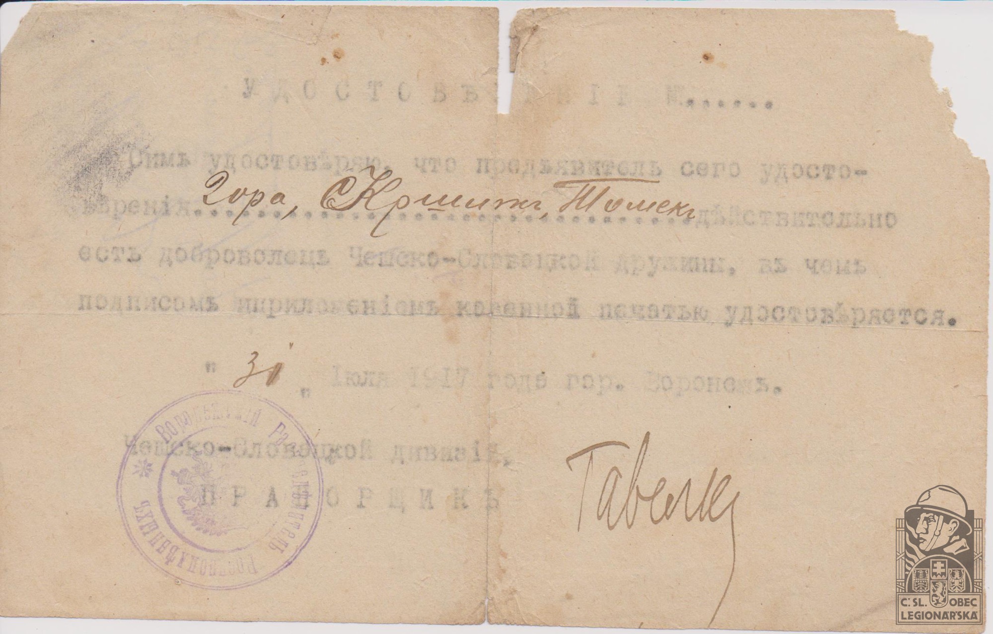 dokumenty spojené s osobou legionáře