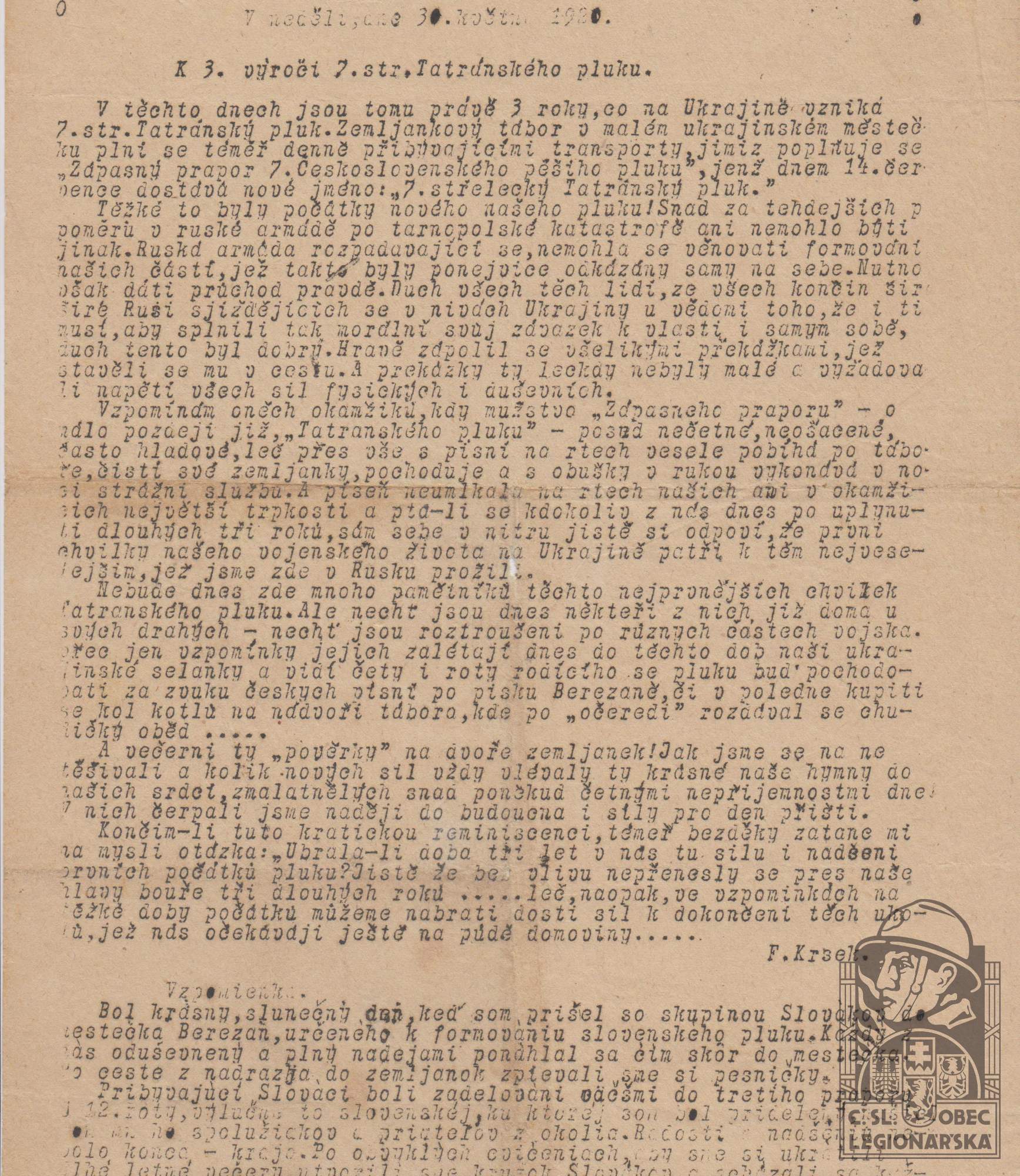 Poslední útvar v legiích:7.stř.pl.