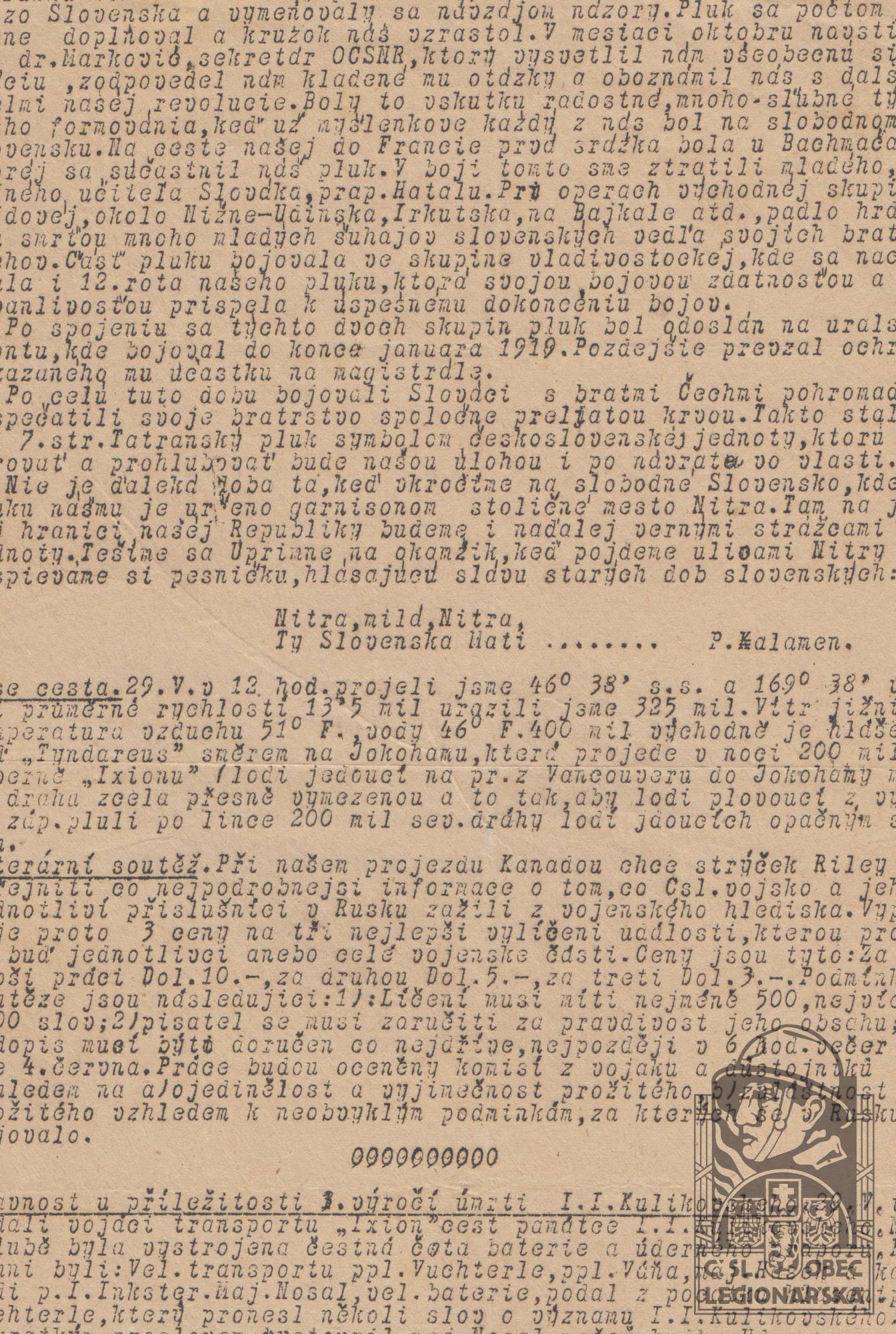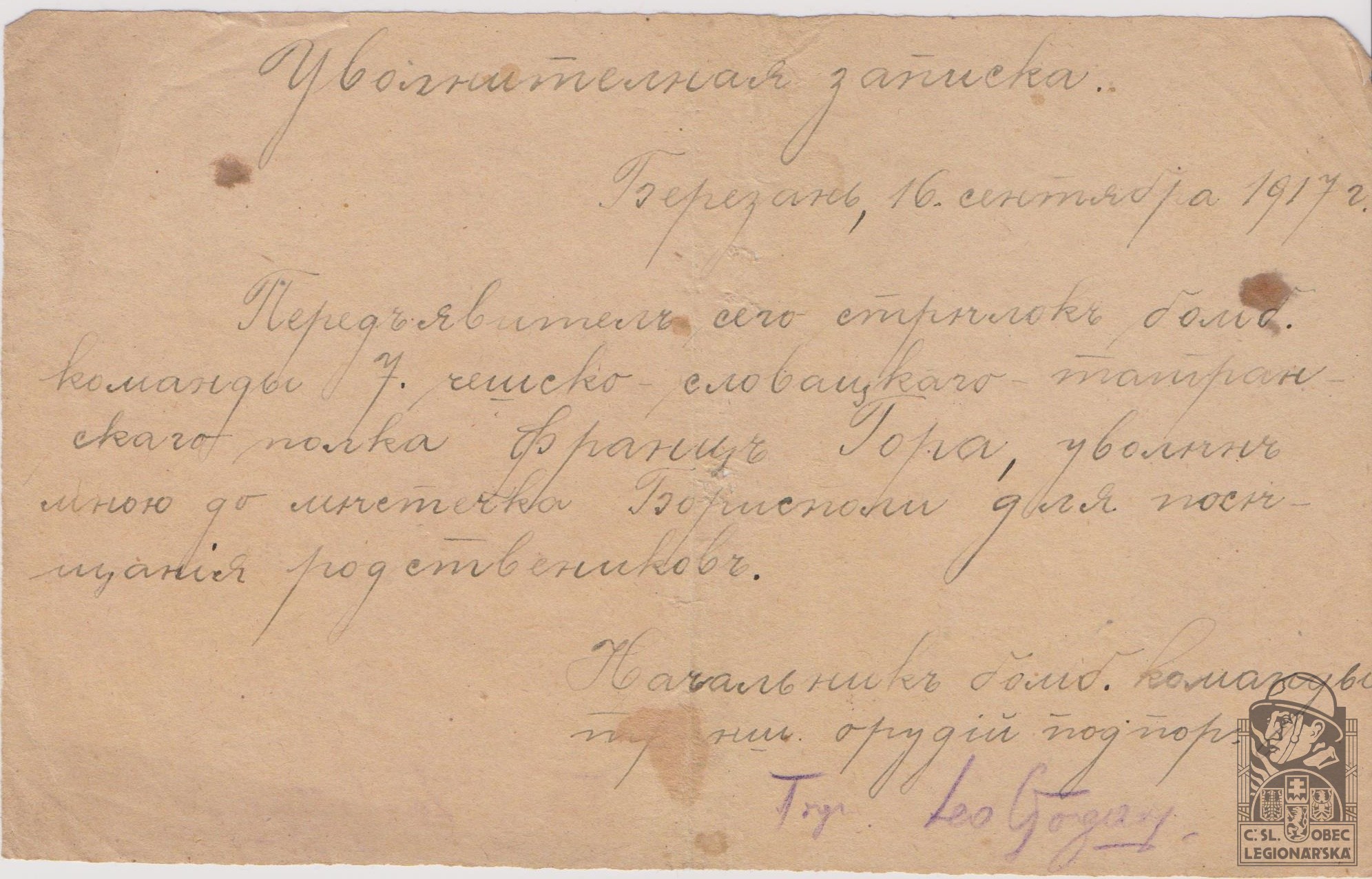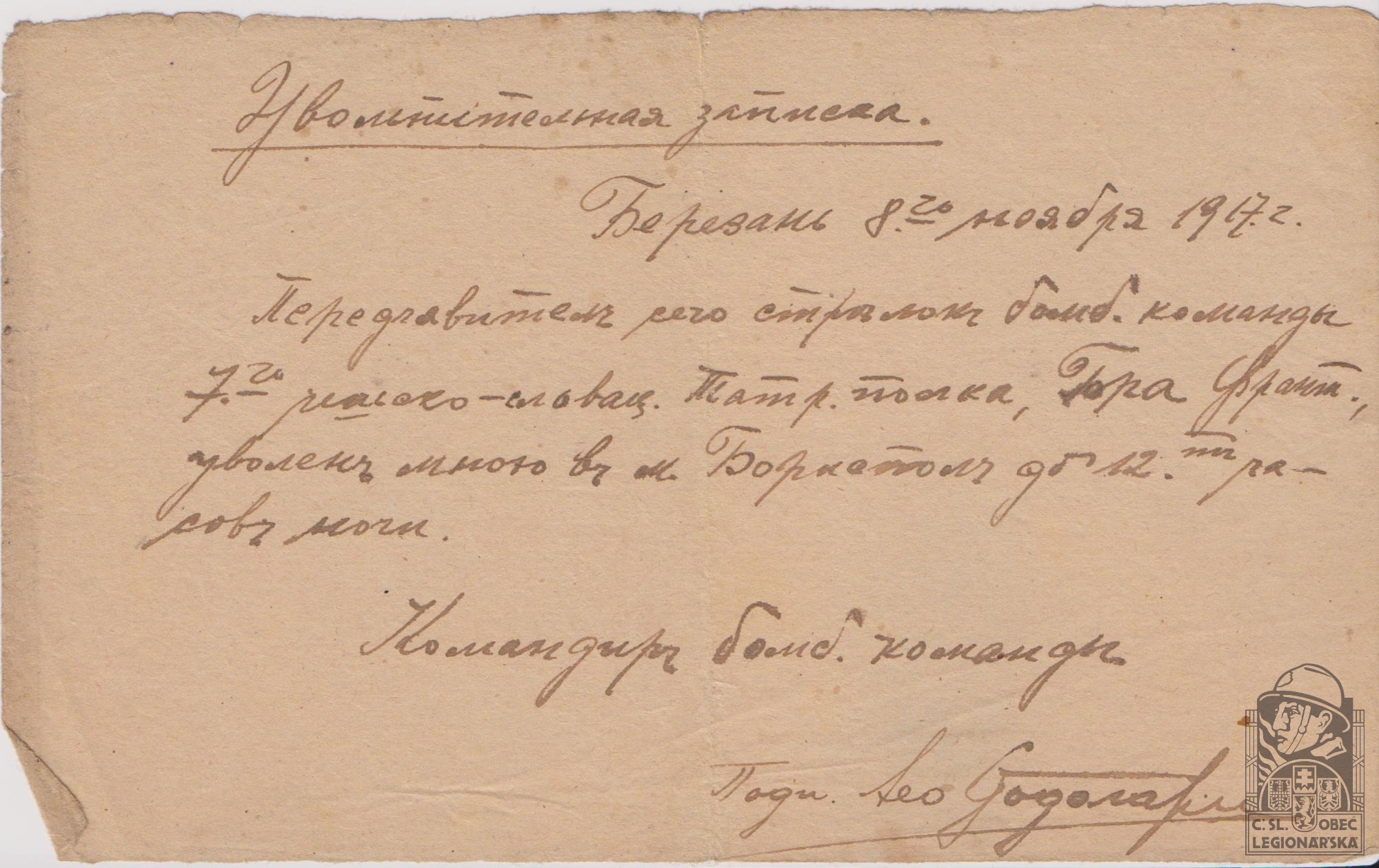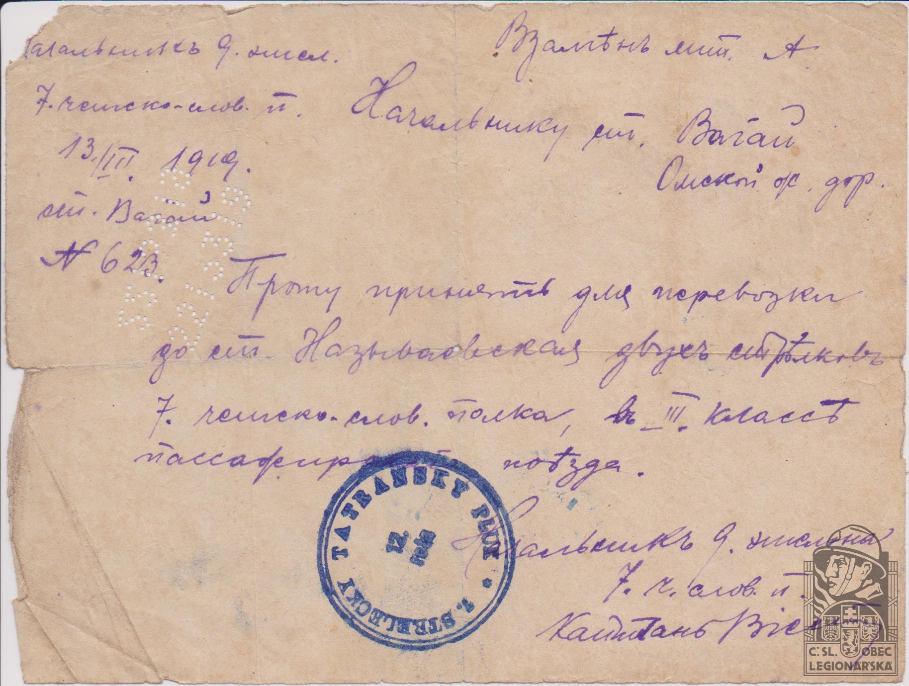 Jednotka v době zařazení:7.stř.pl. ( Čs. legie v Rusku )