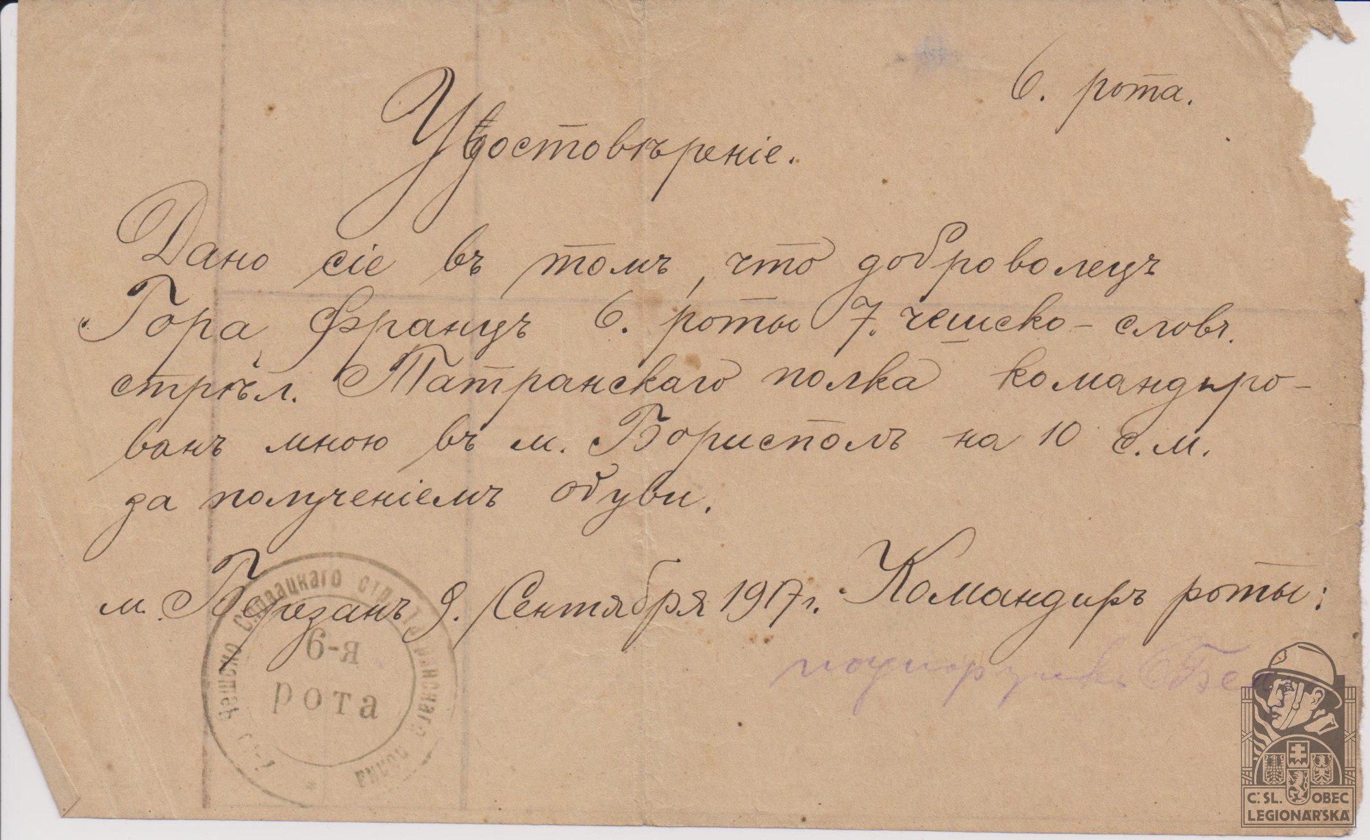Datum zařazení do legií:4.8.1917