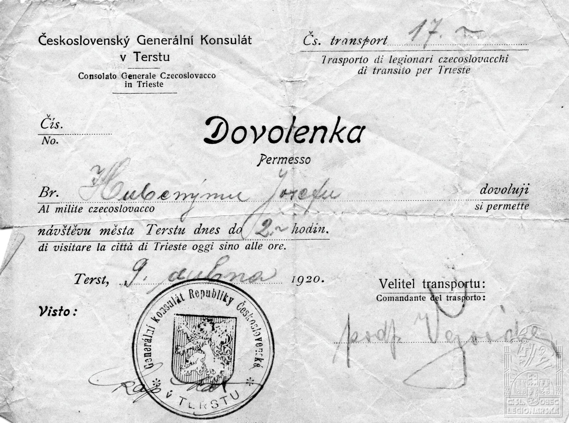 dokumenty spojené s osobou legionáře