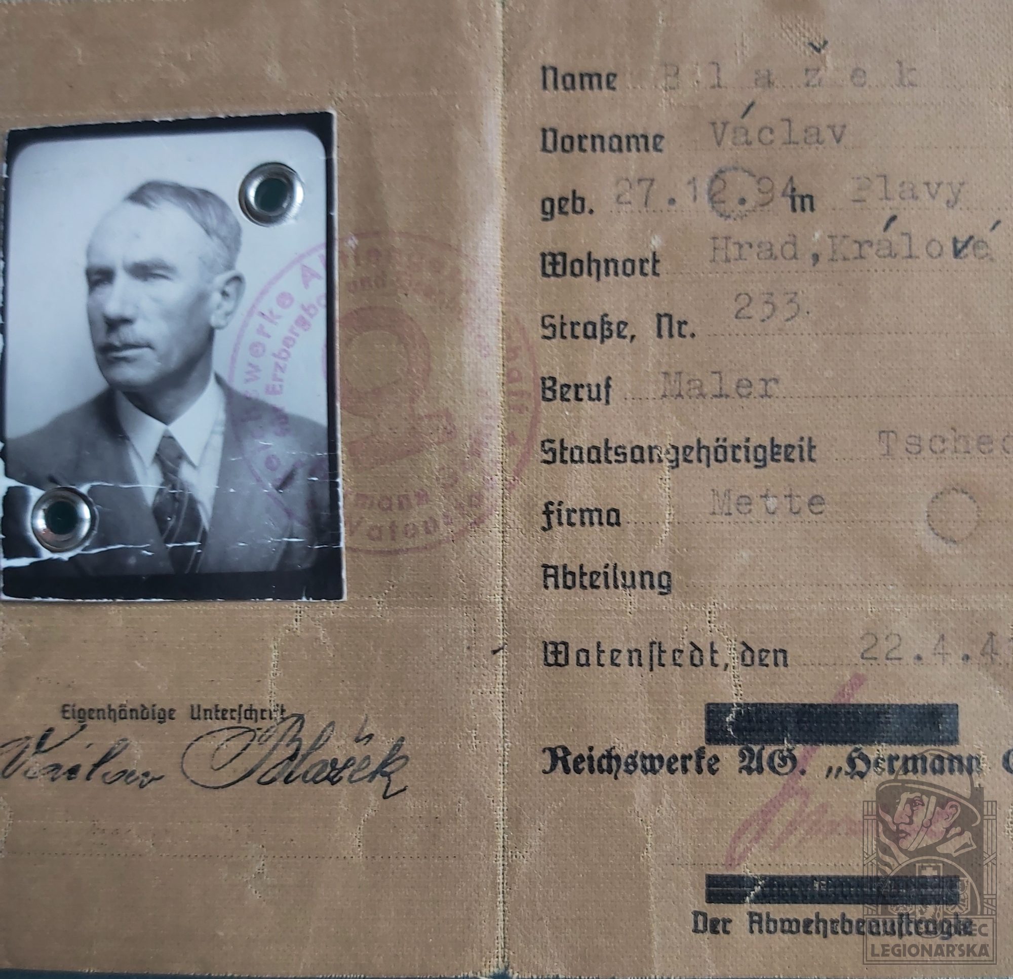 dokumenty spojené s osobou legionáře
