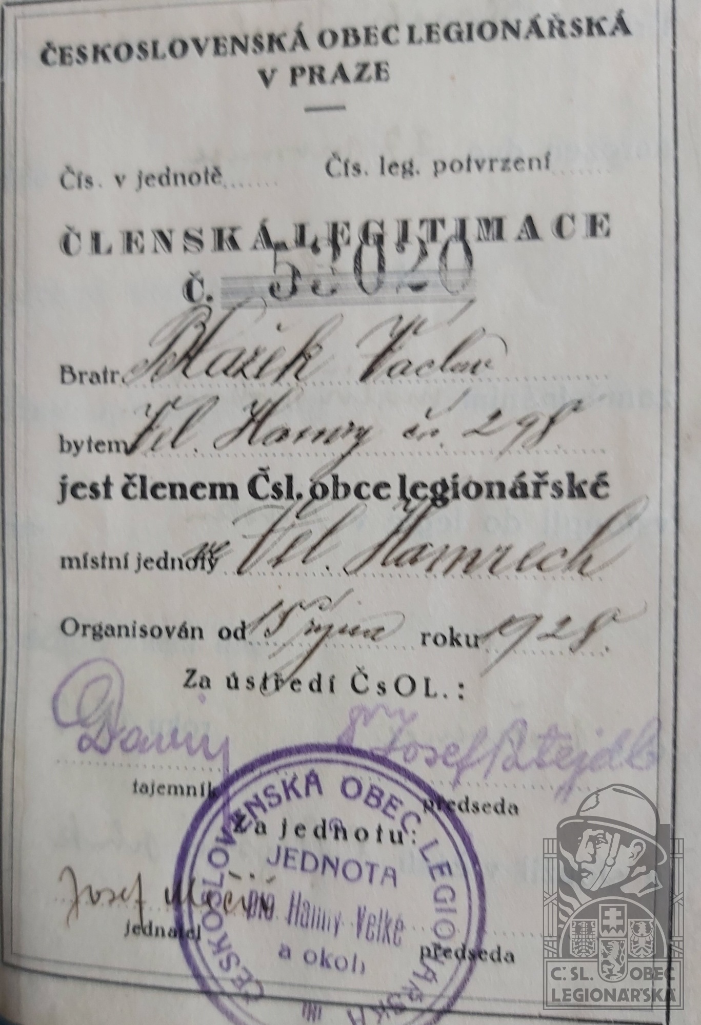 Legionářska organizace:ČsOL - Hamry Velké a okolí