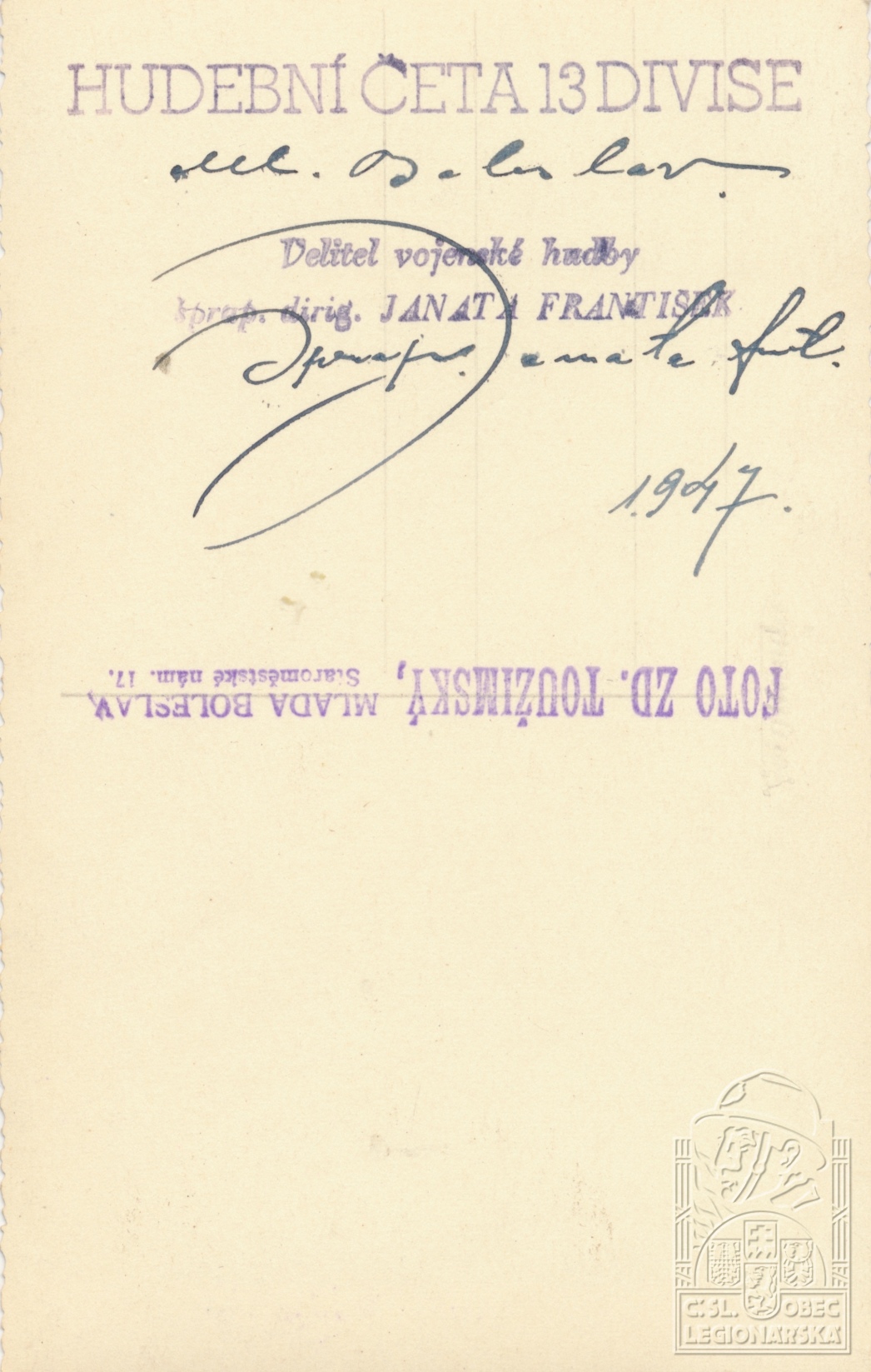 Poslední útvar v legiích:5.stř.pl. - hudba