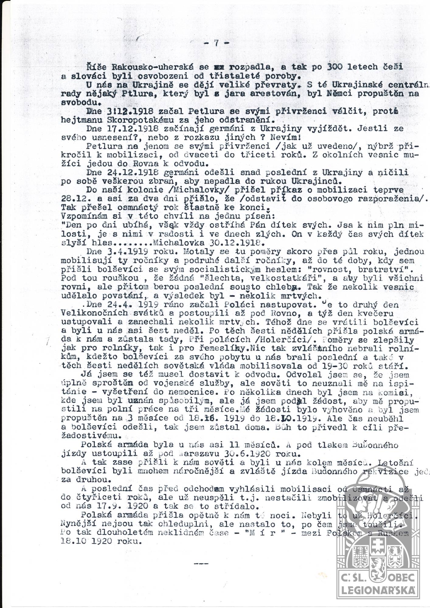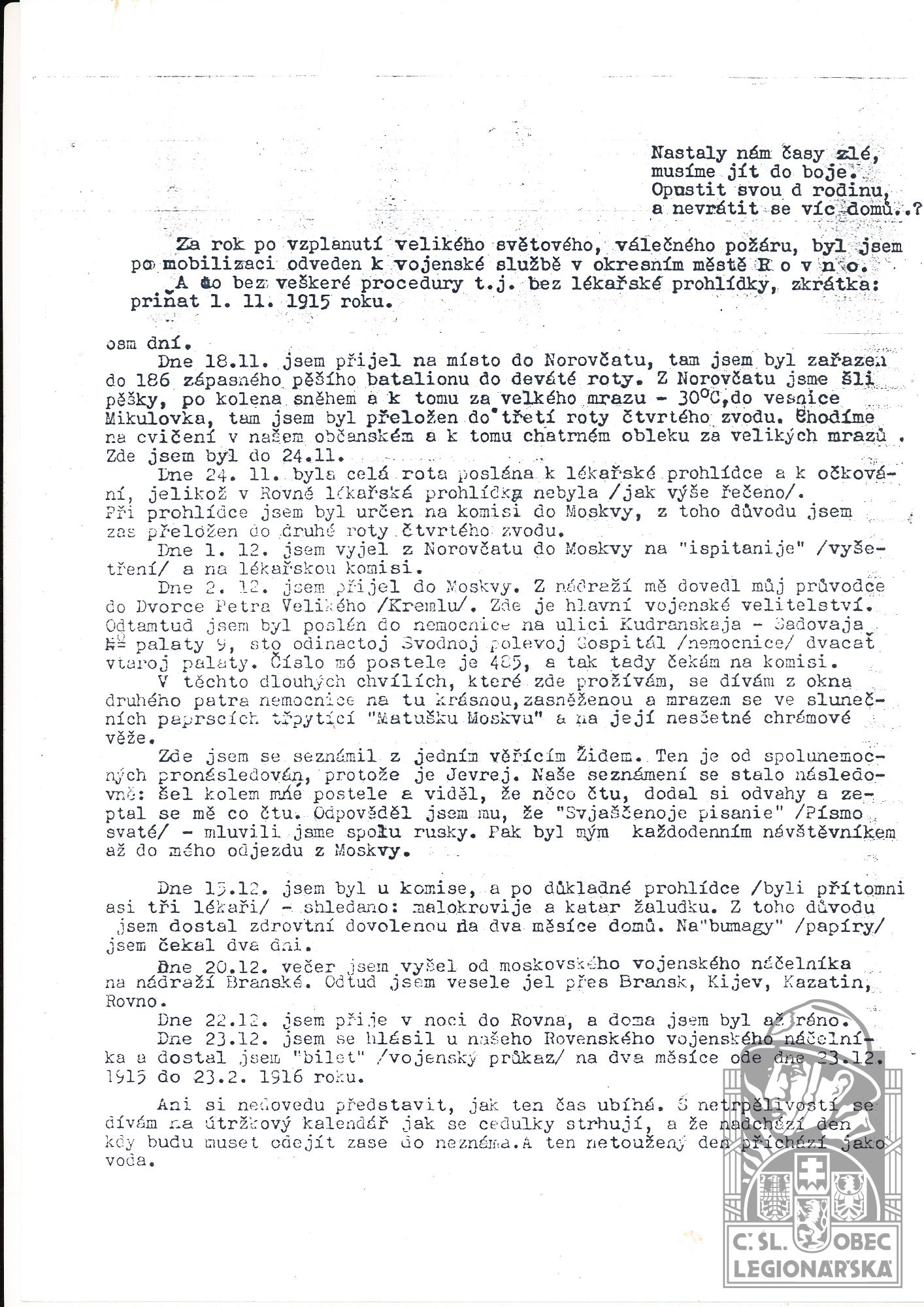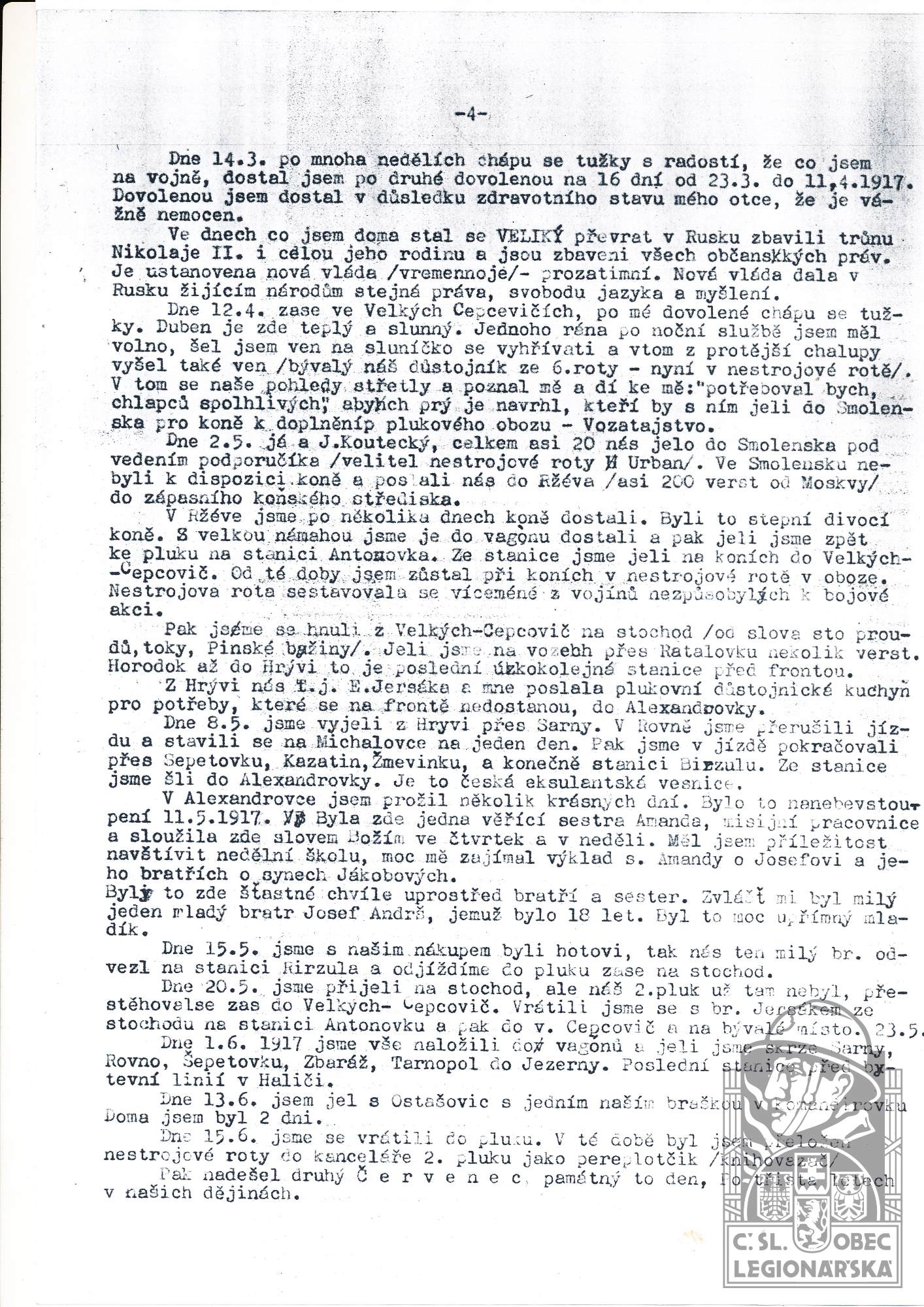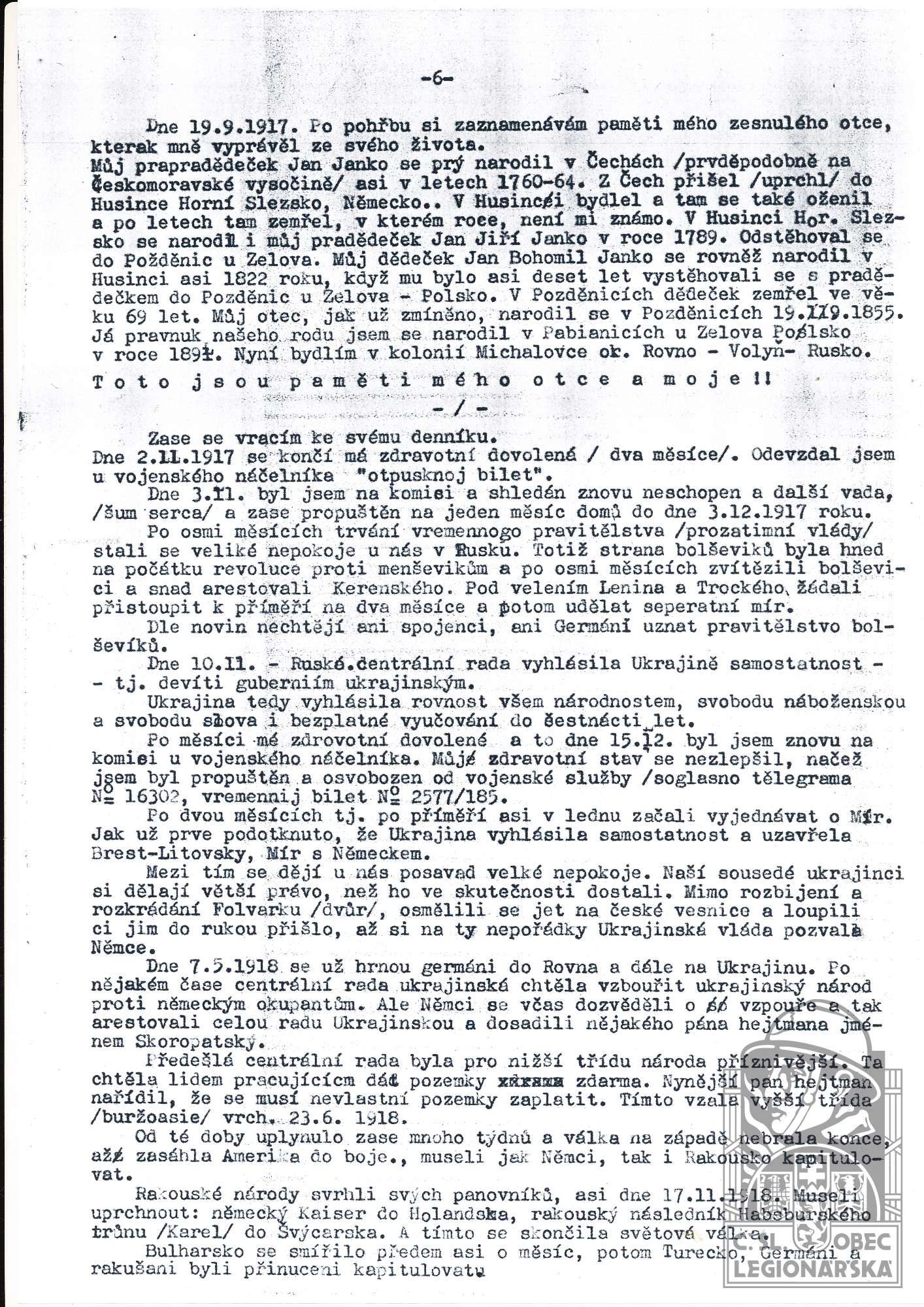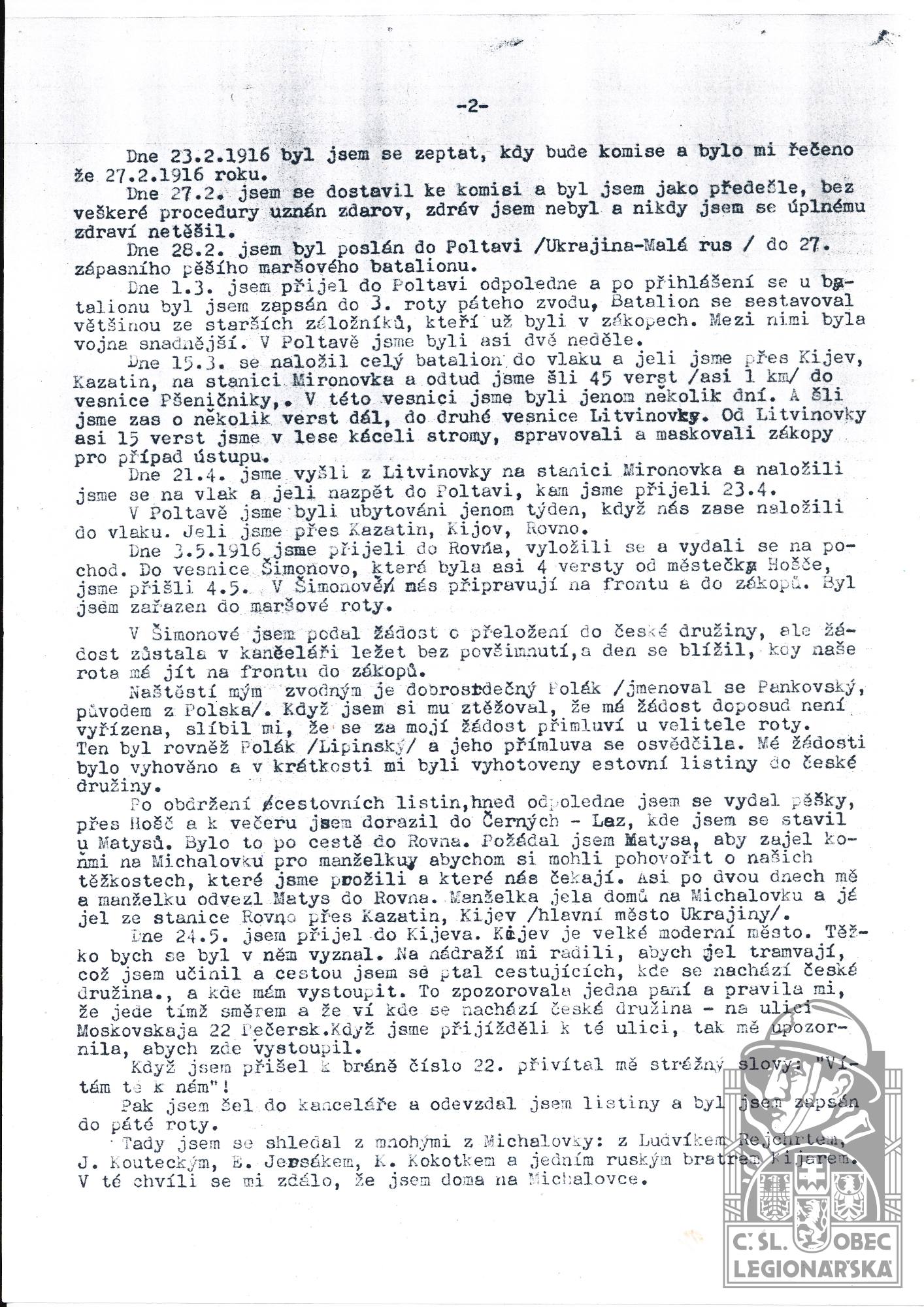 dokumenty spojené s osobou legionáře