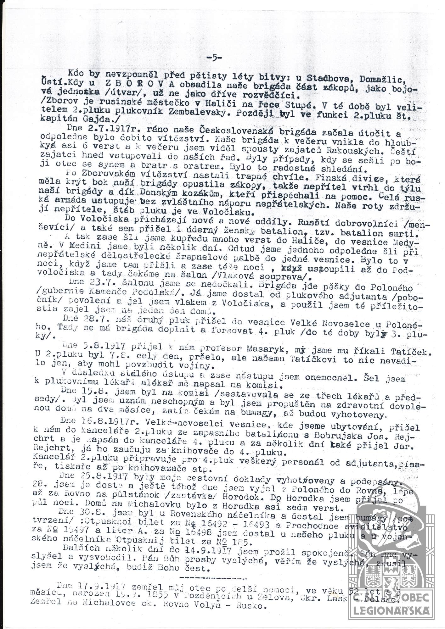 Konec v legiích:5.11.1917 ( Viz poznámku )