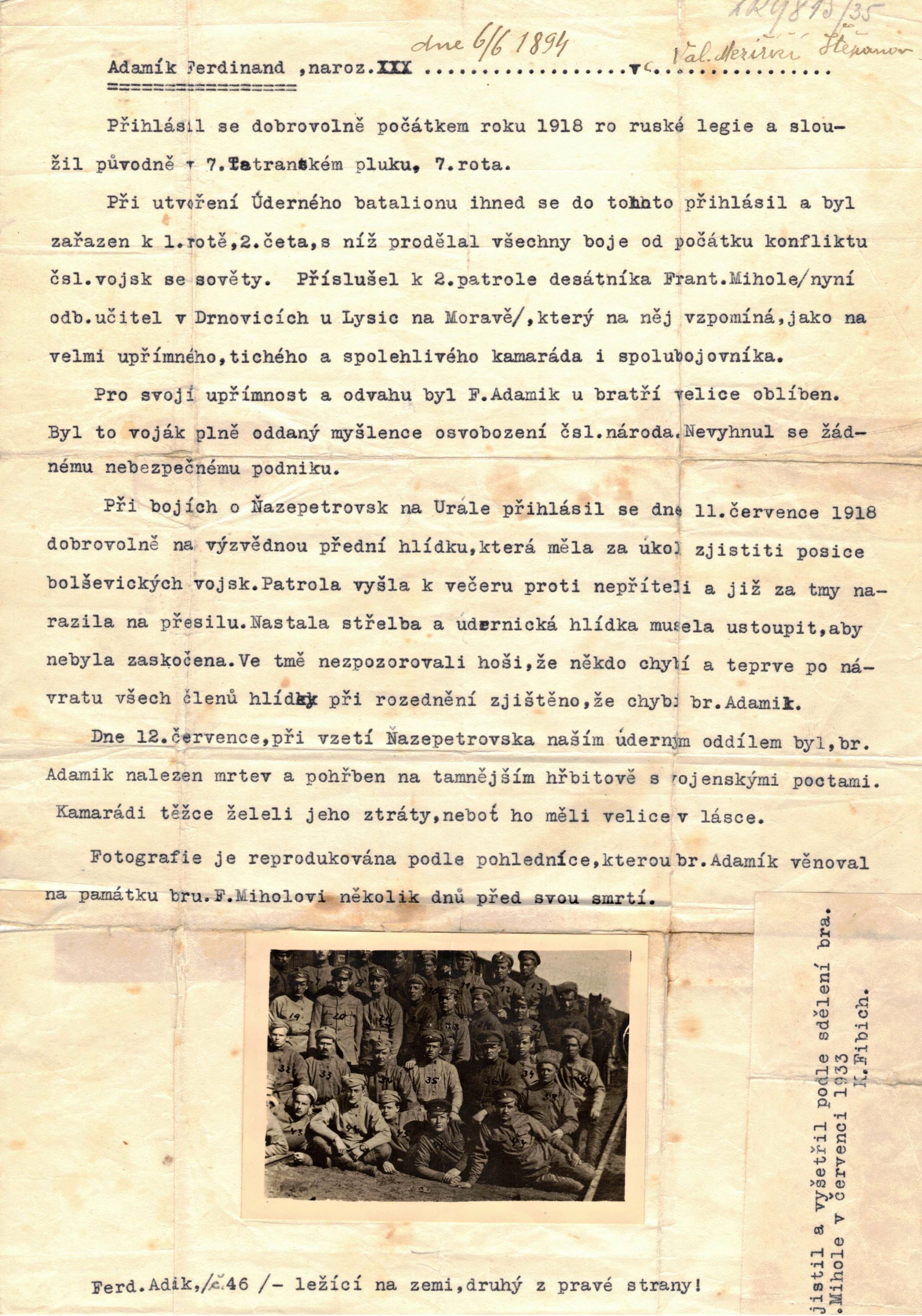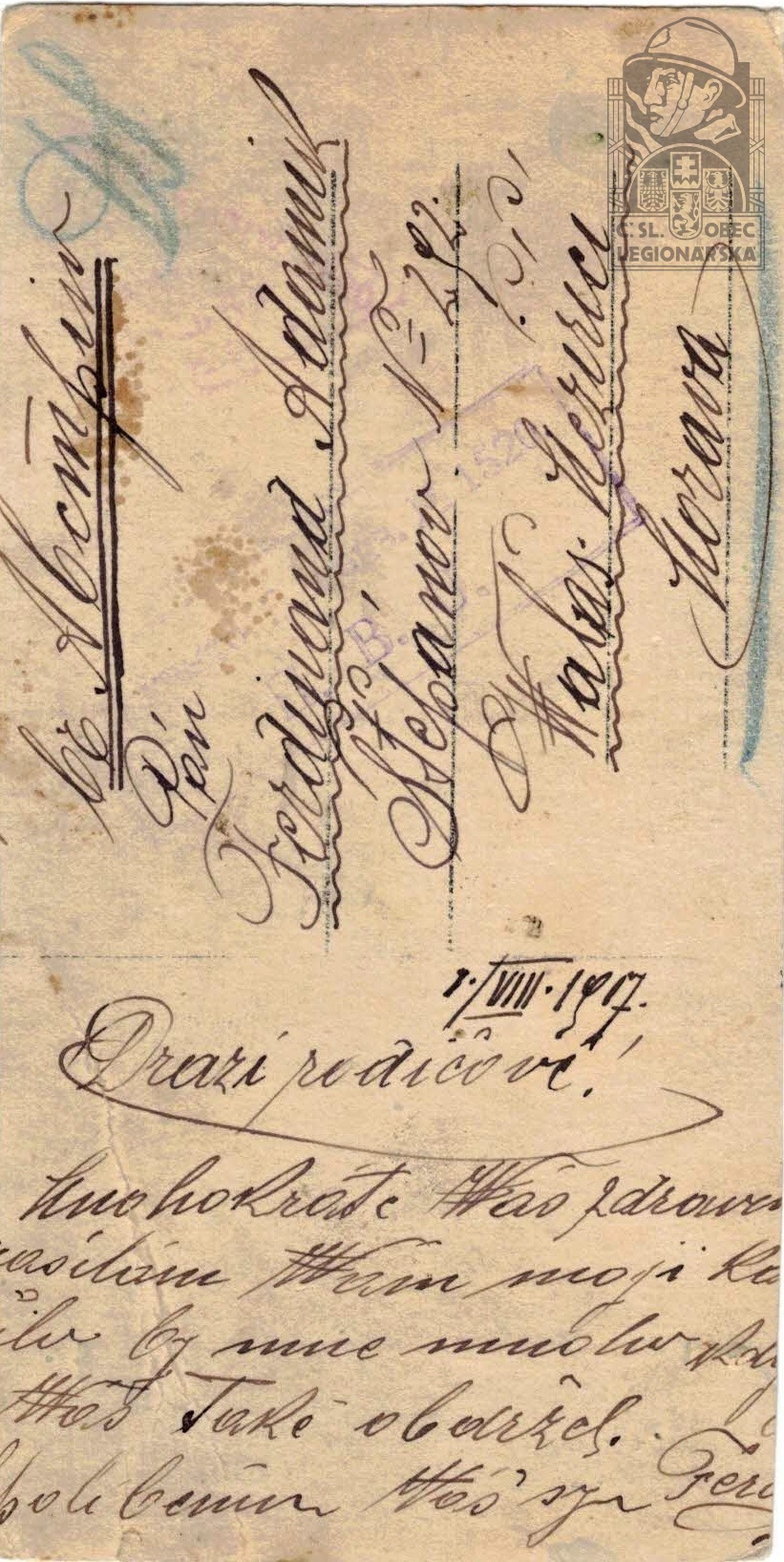 Jednotka v době zařazení:7.stř.pl. ( Čs. legie v Rusku )