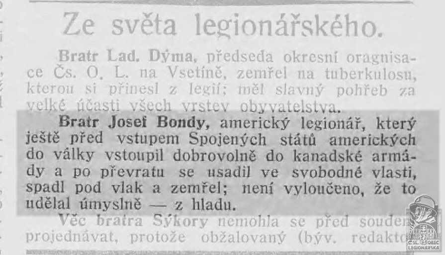 Konec v legiích:5.7.1919 ( Demobilizován )