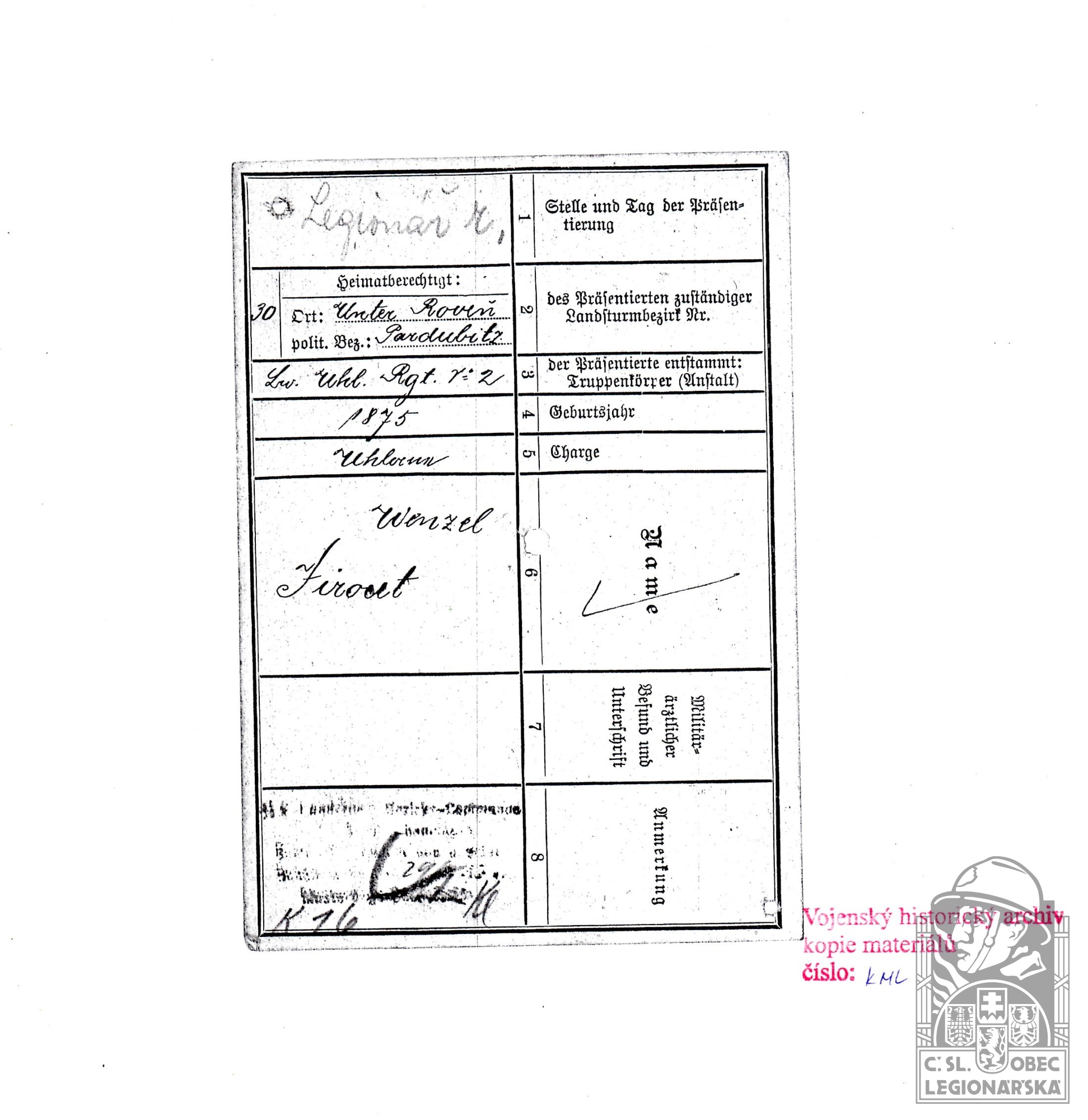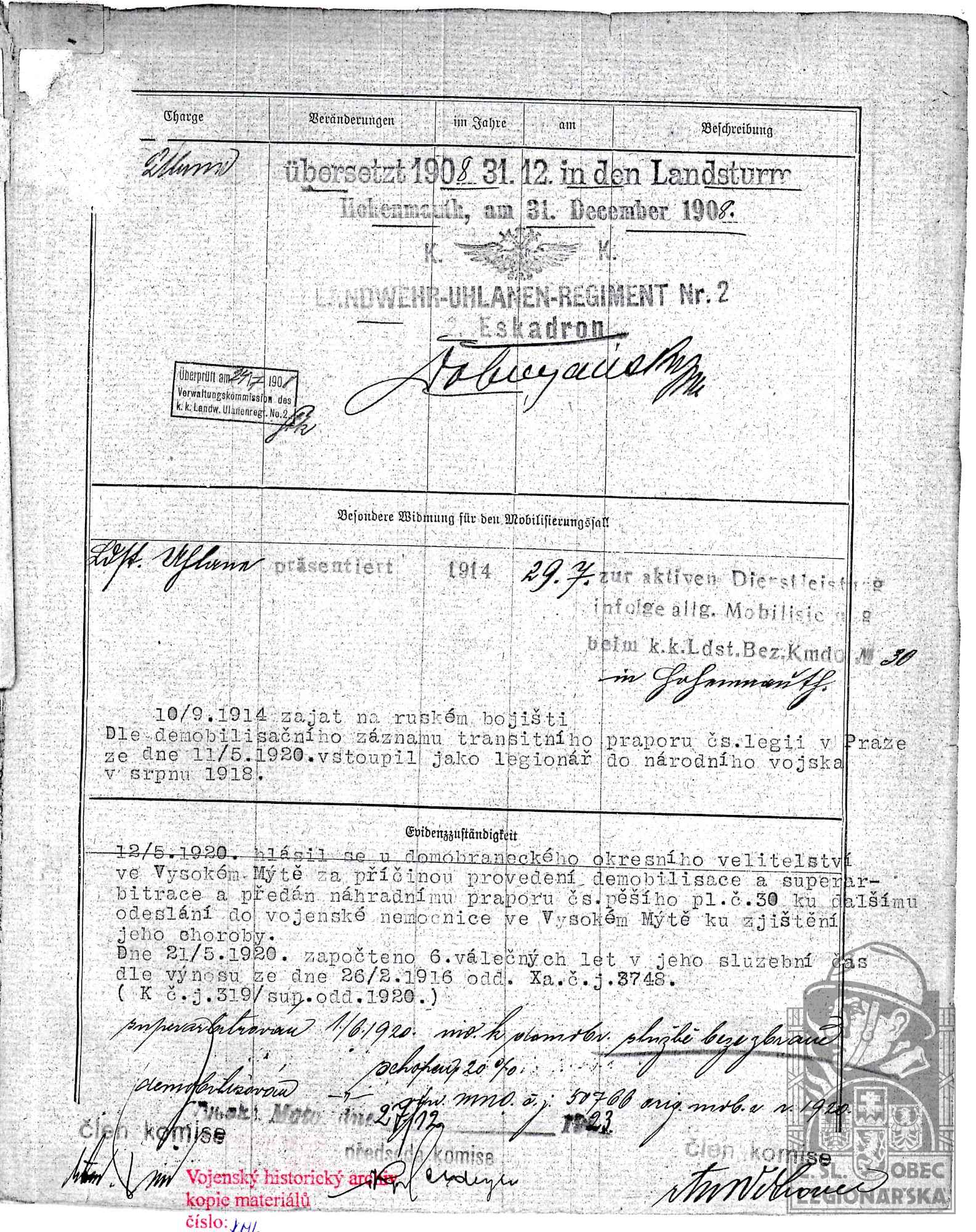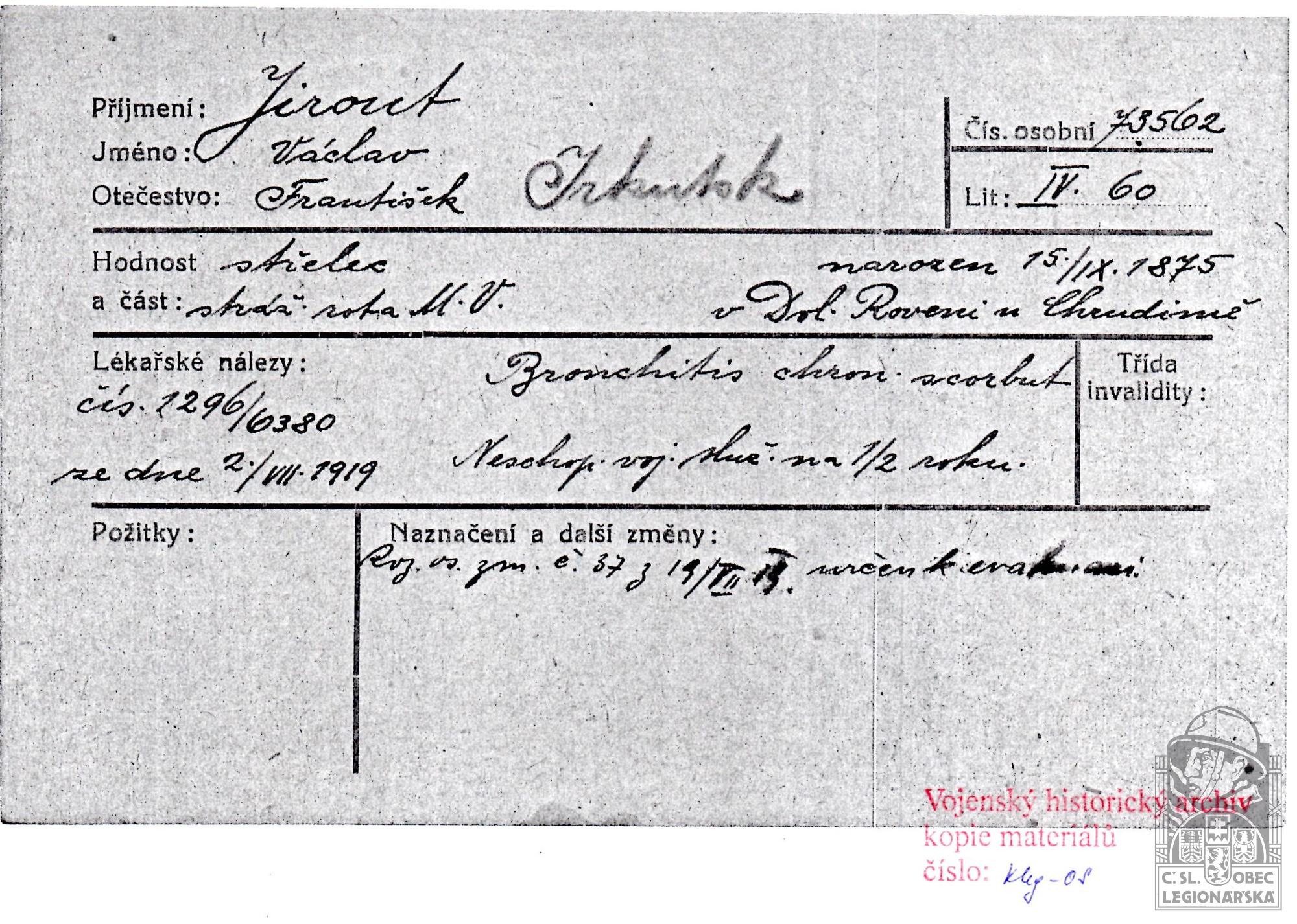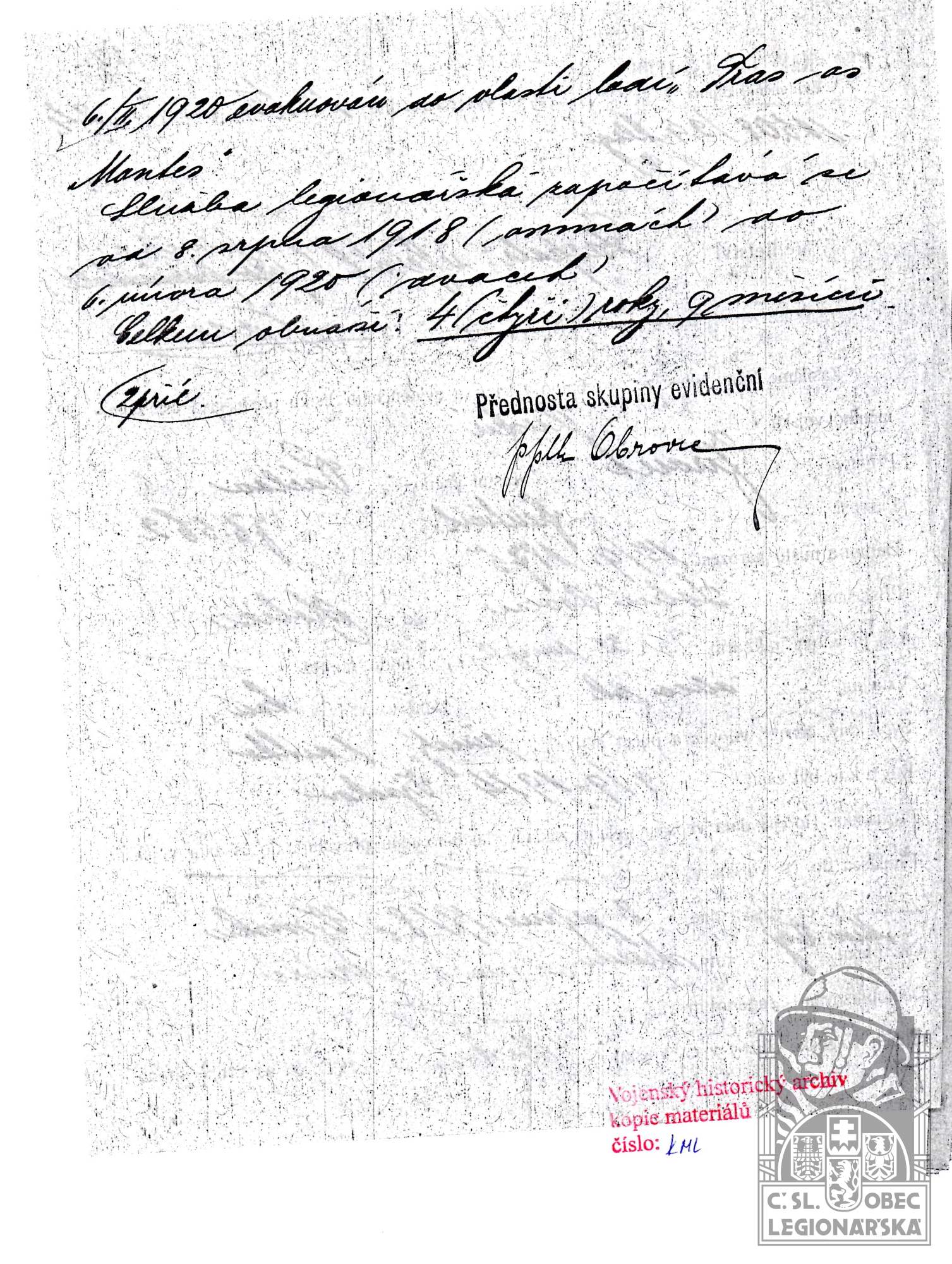 dokumenty spojené s osobou legionáře