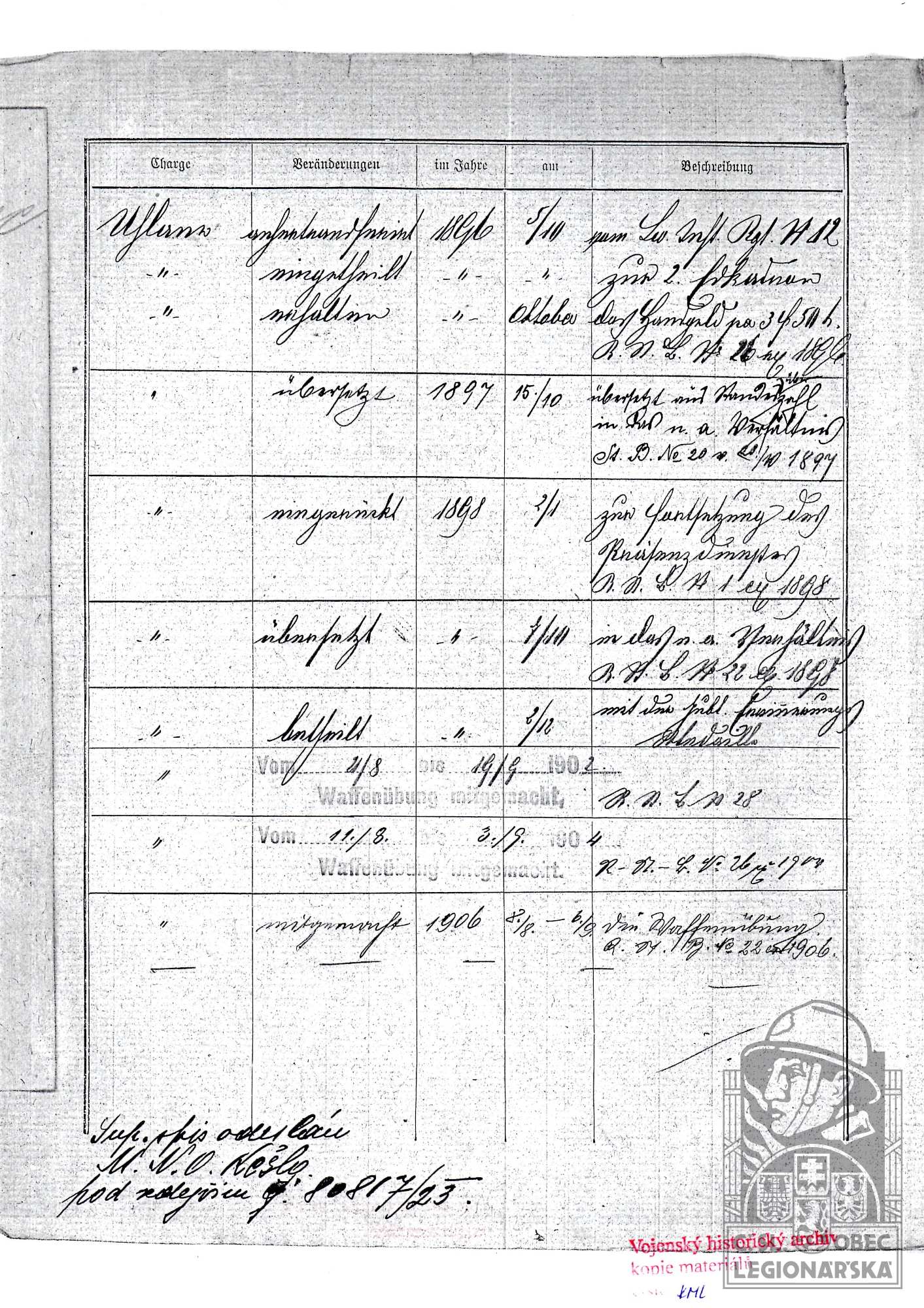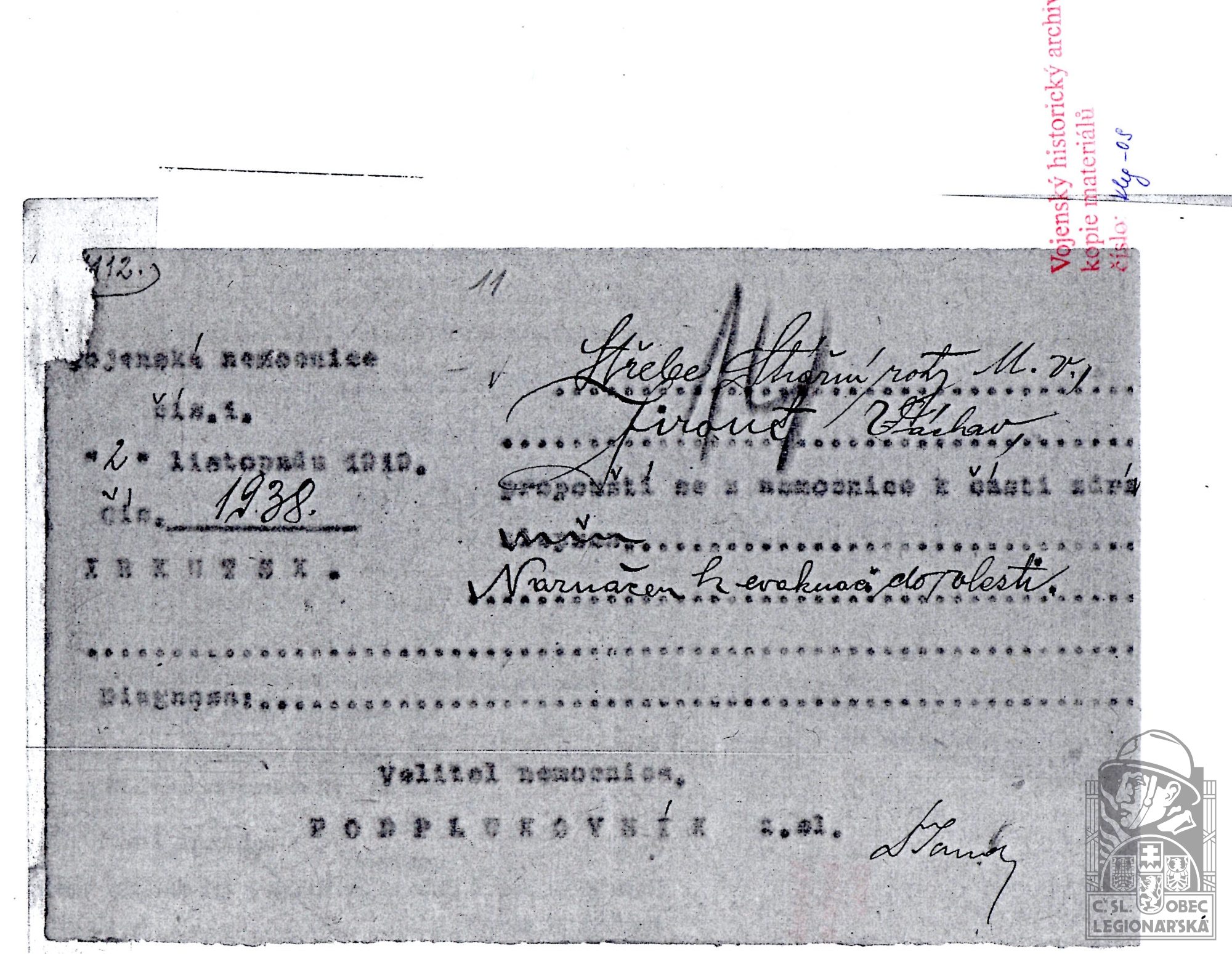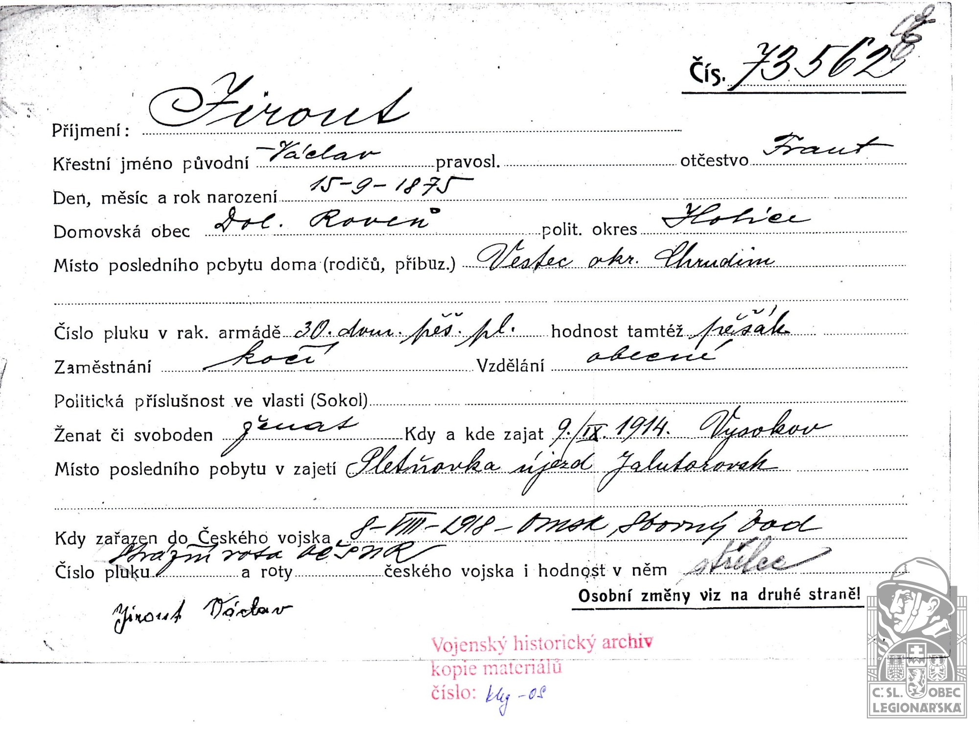 dokumenty spojené s osobou legionáře