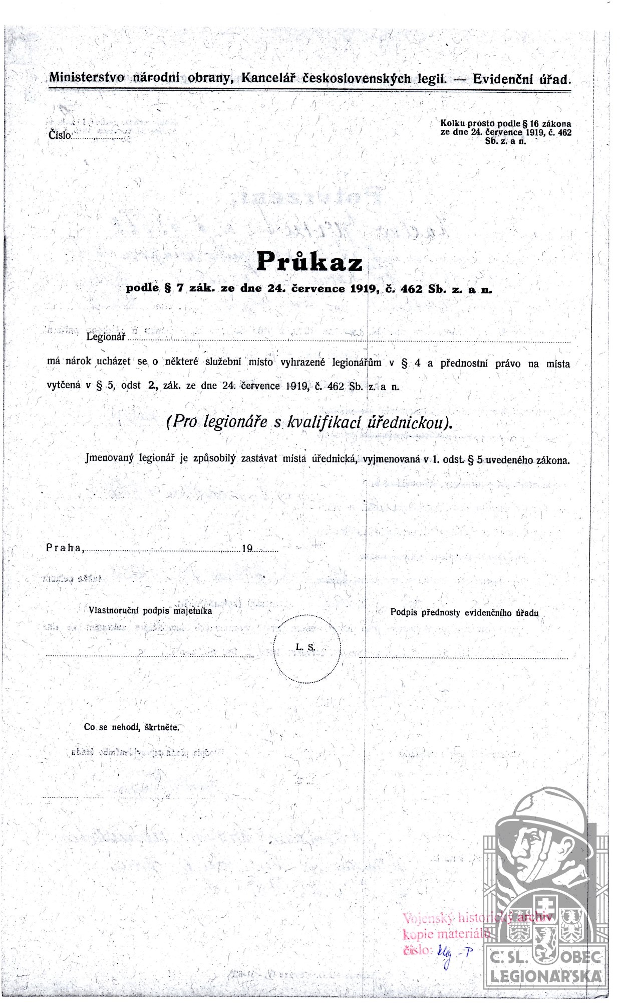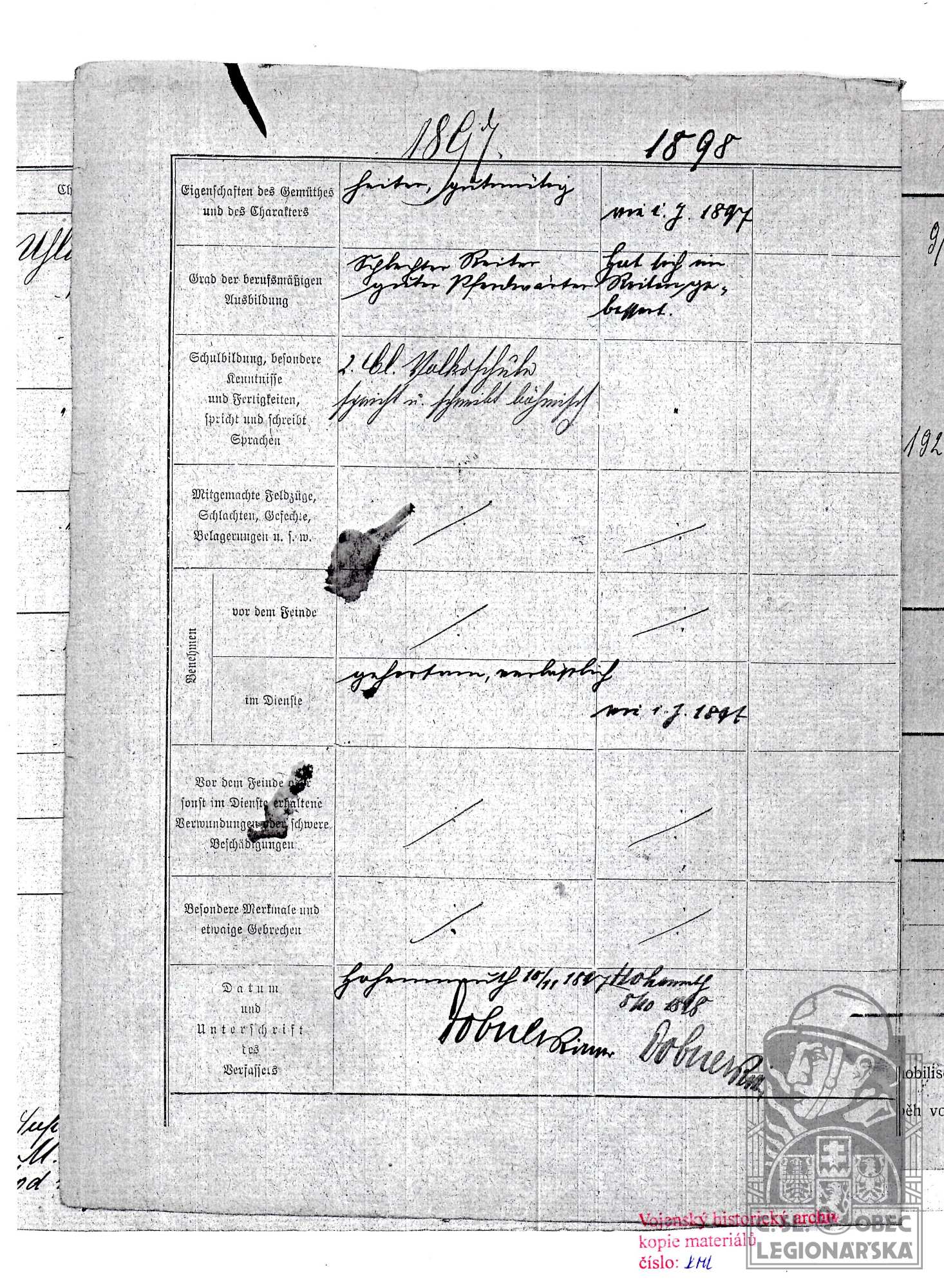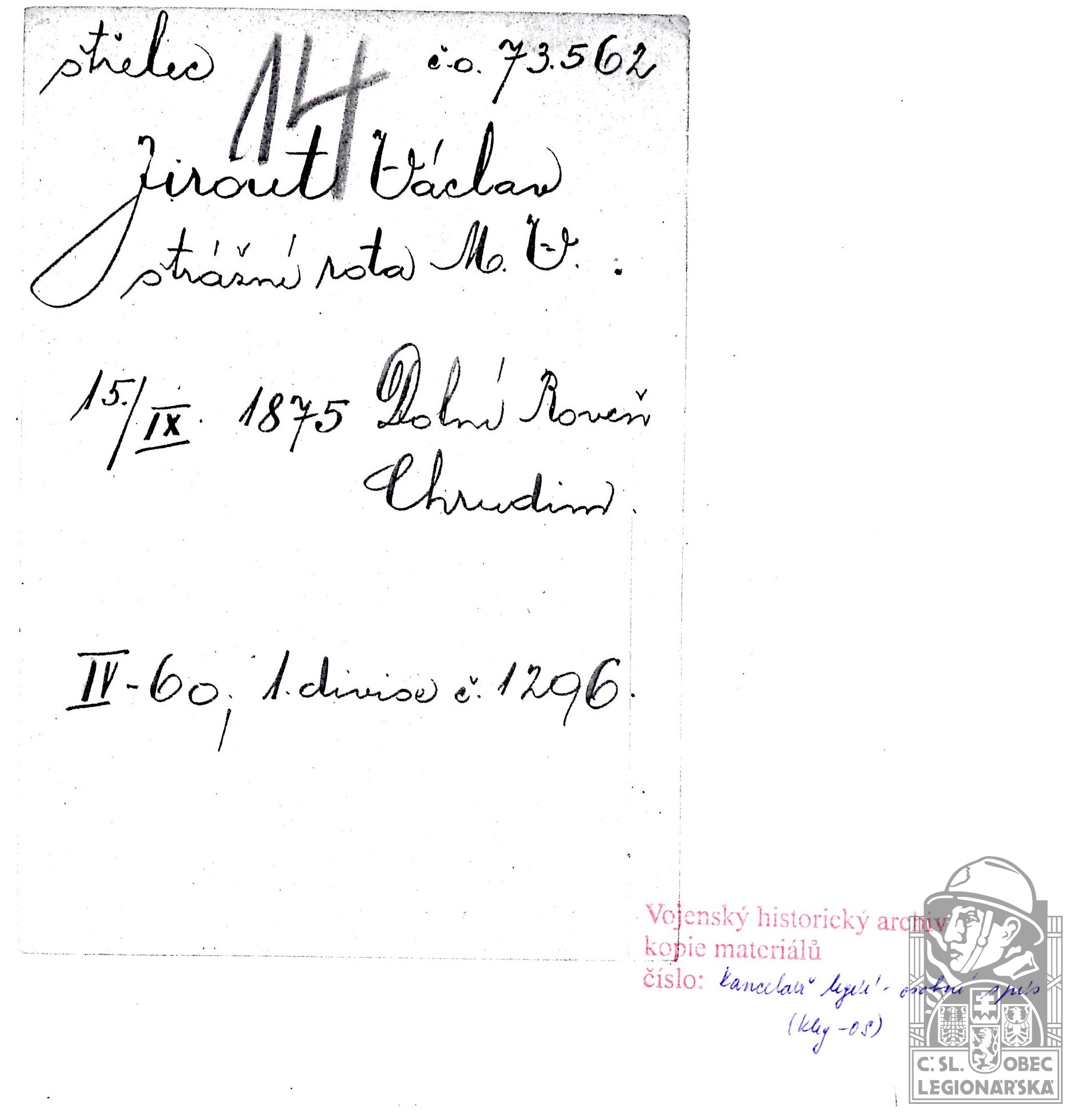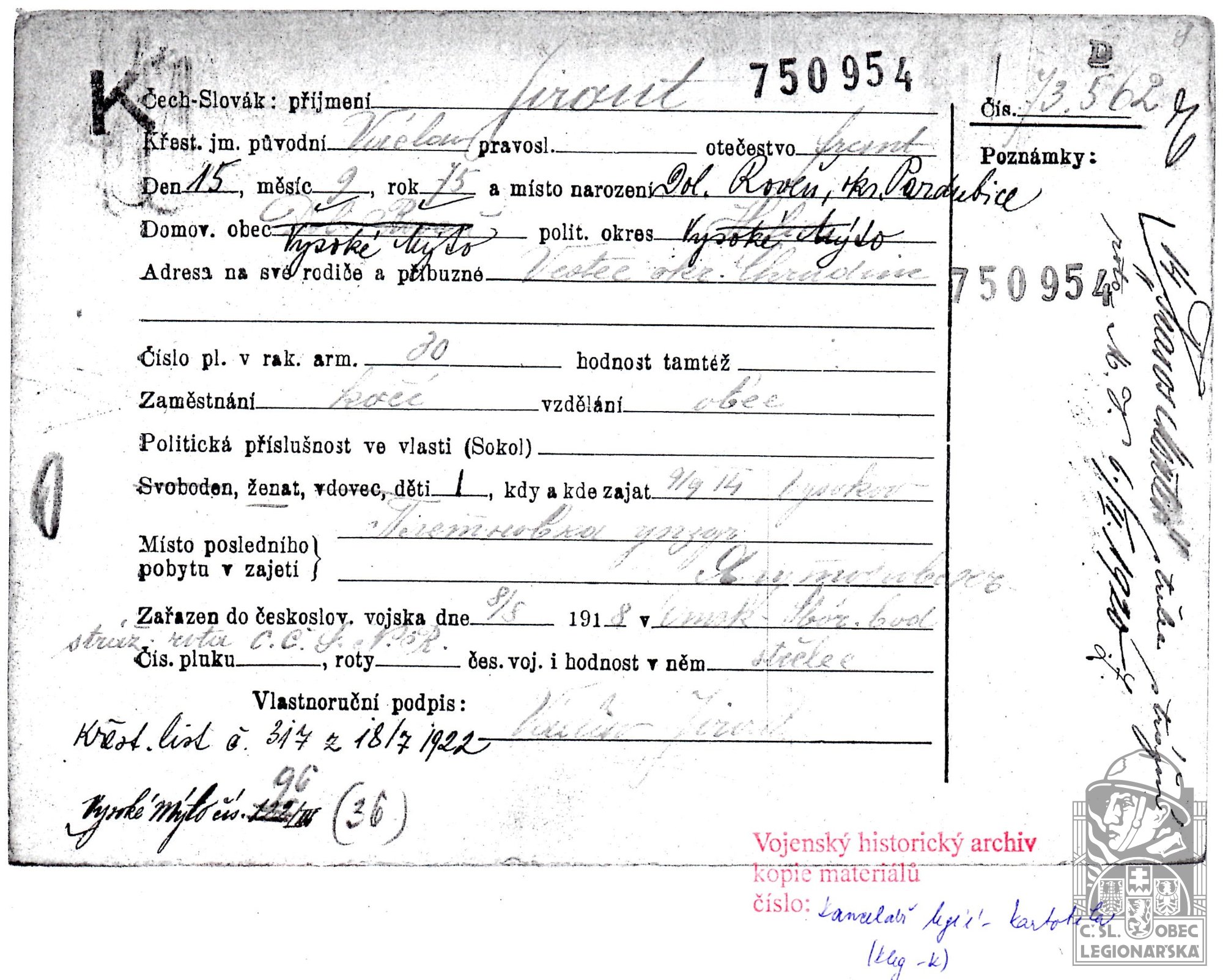 dokumenty spojené s osobou legionáře