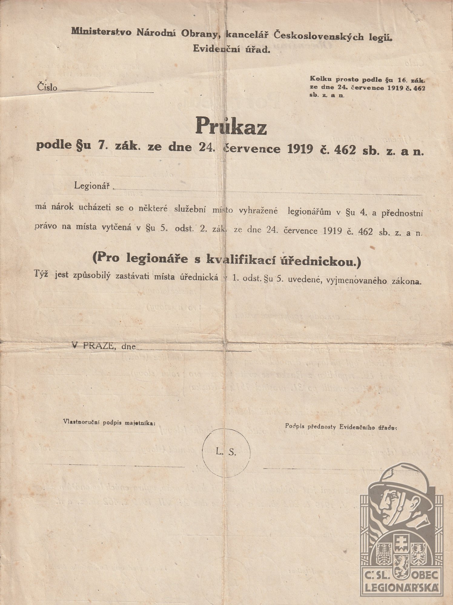 Zdroj informací: legionářský poslužný spis osobní karta legionáře